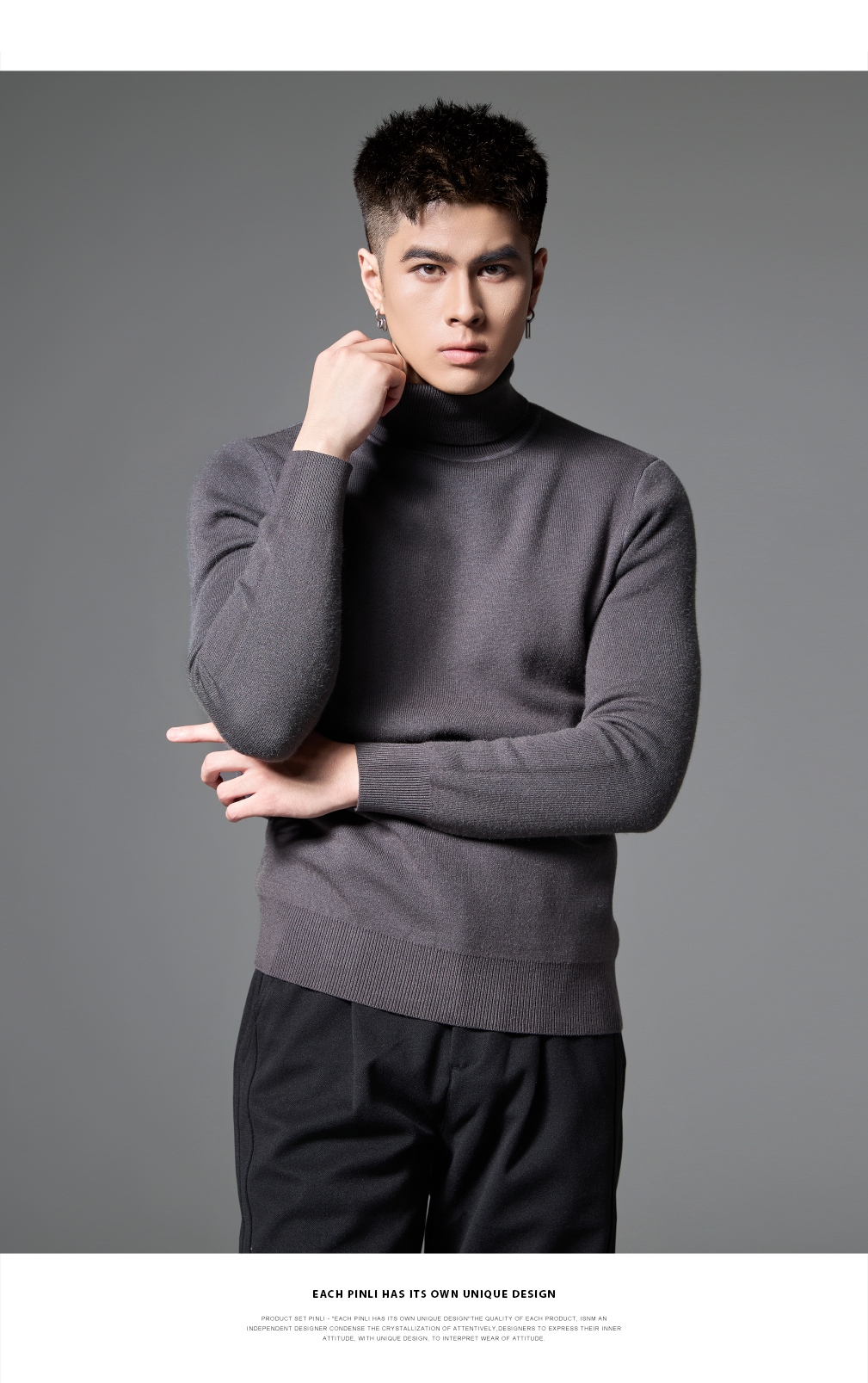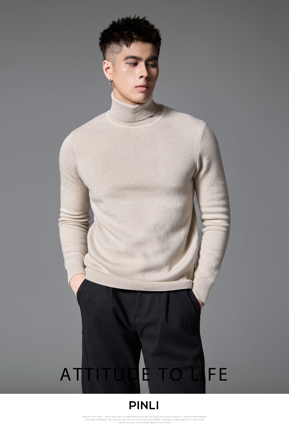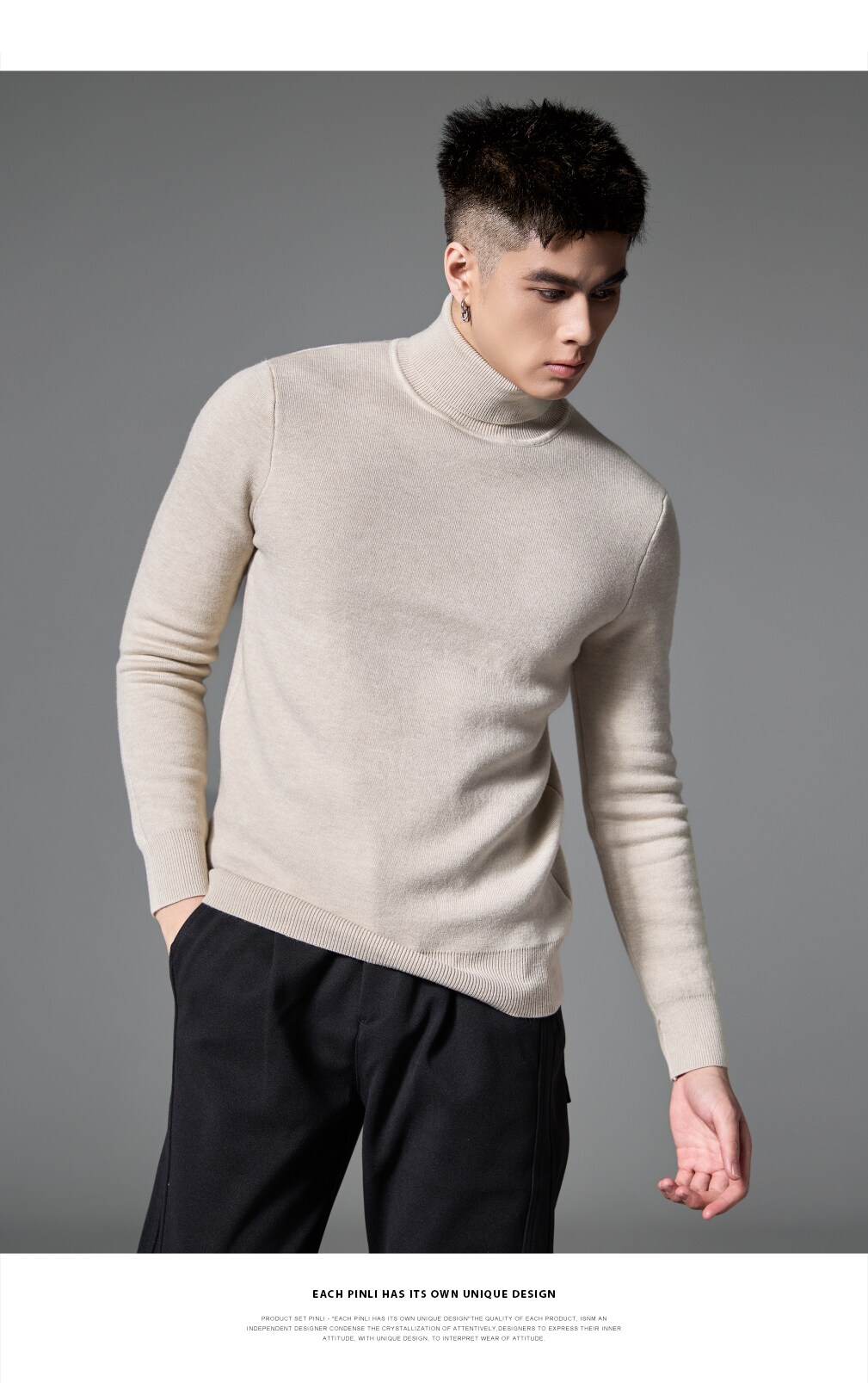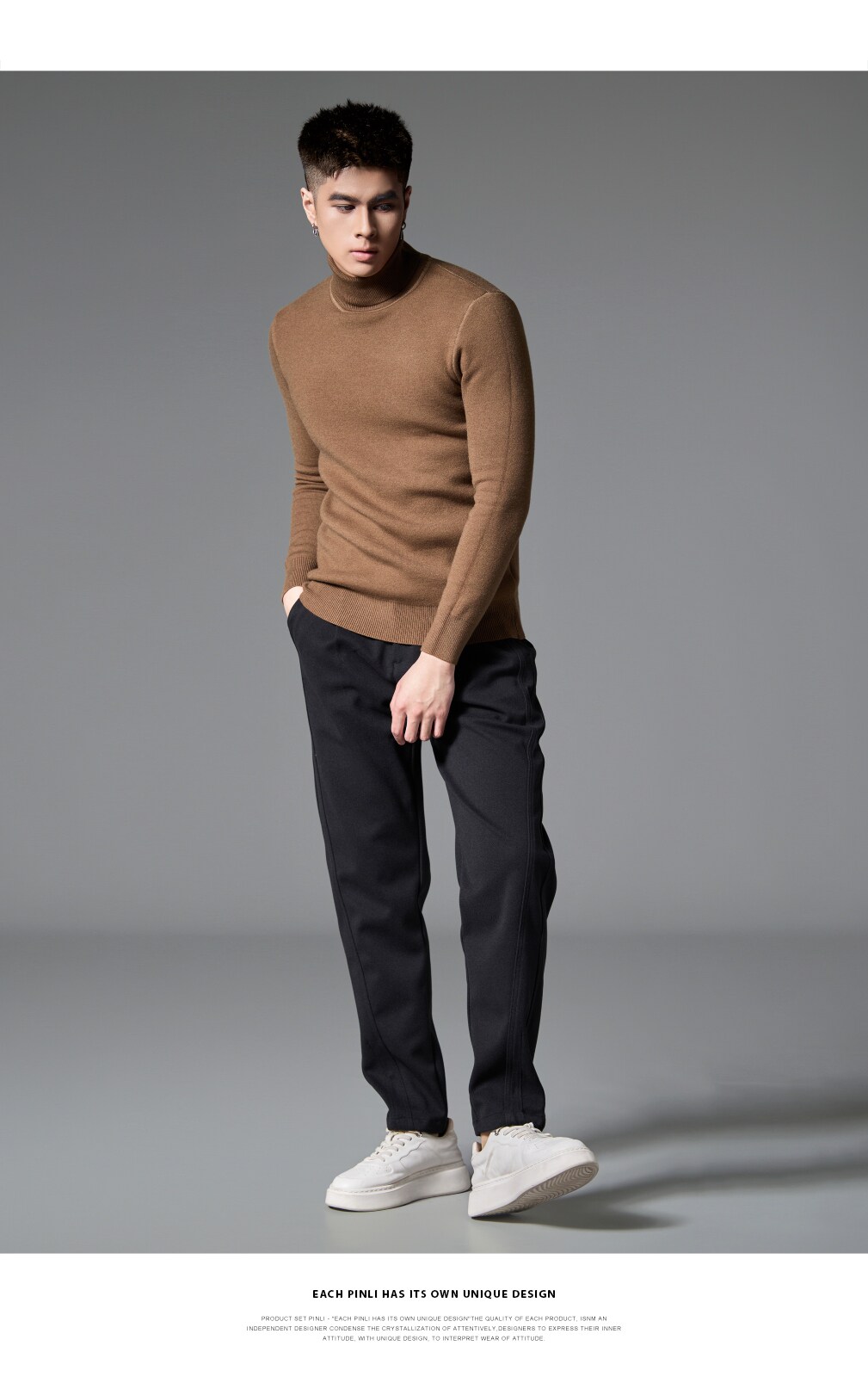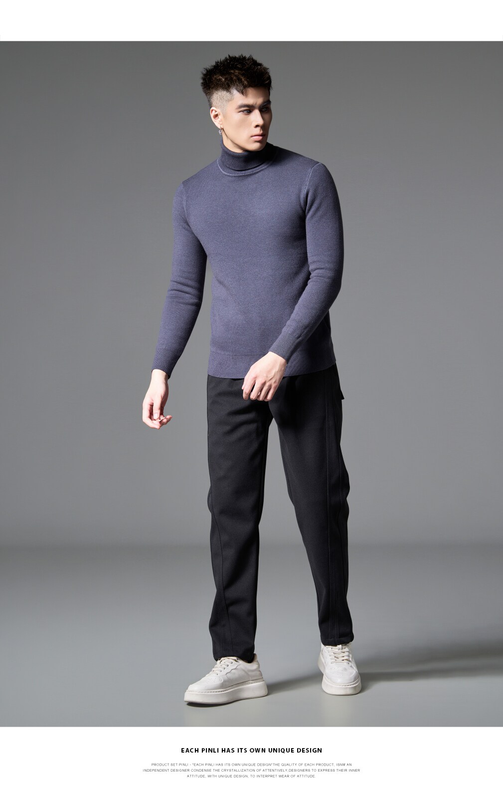 PINLI品立2024冬季新款高领修身加绒针织衫男士加厚百搭打底毛衣GD243410467
