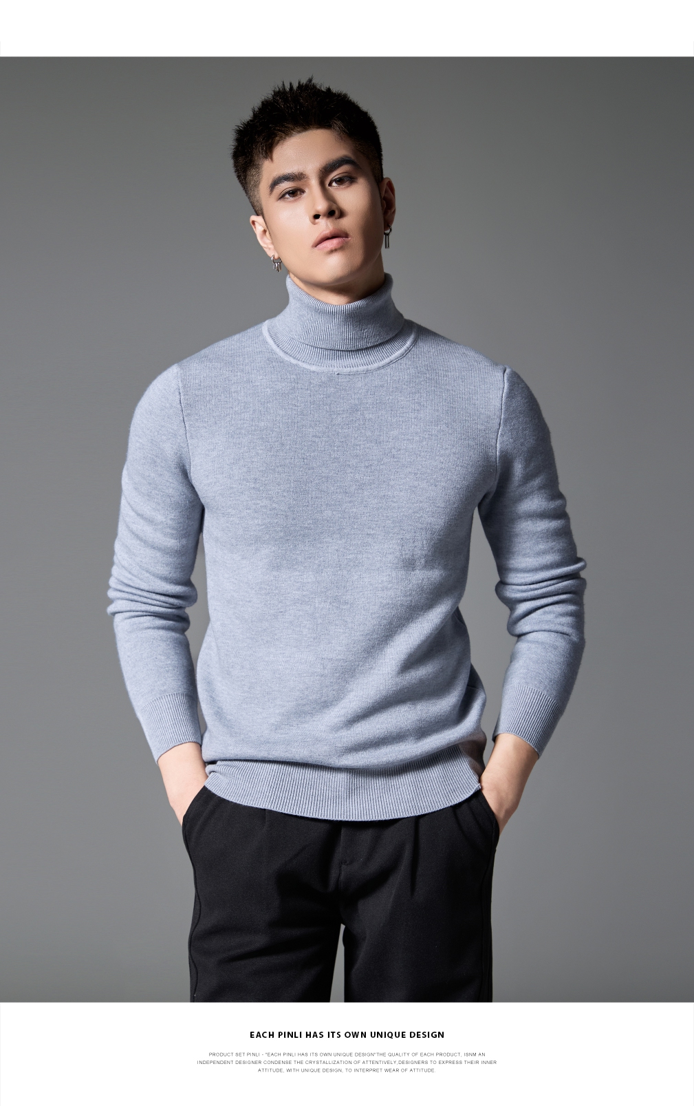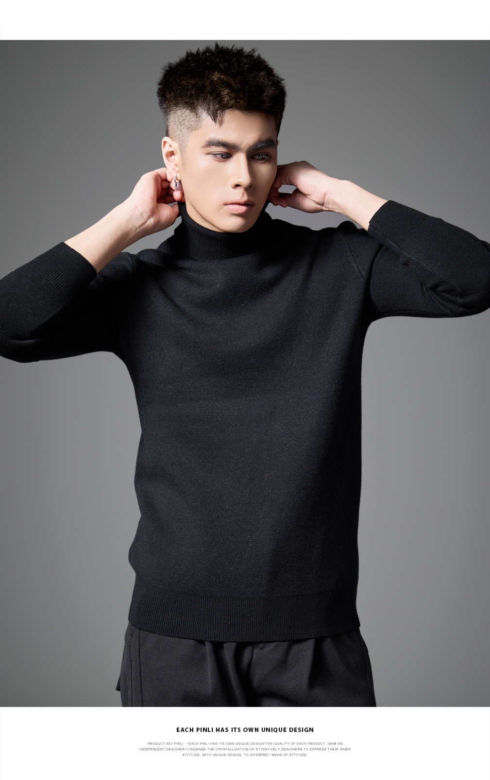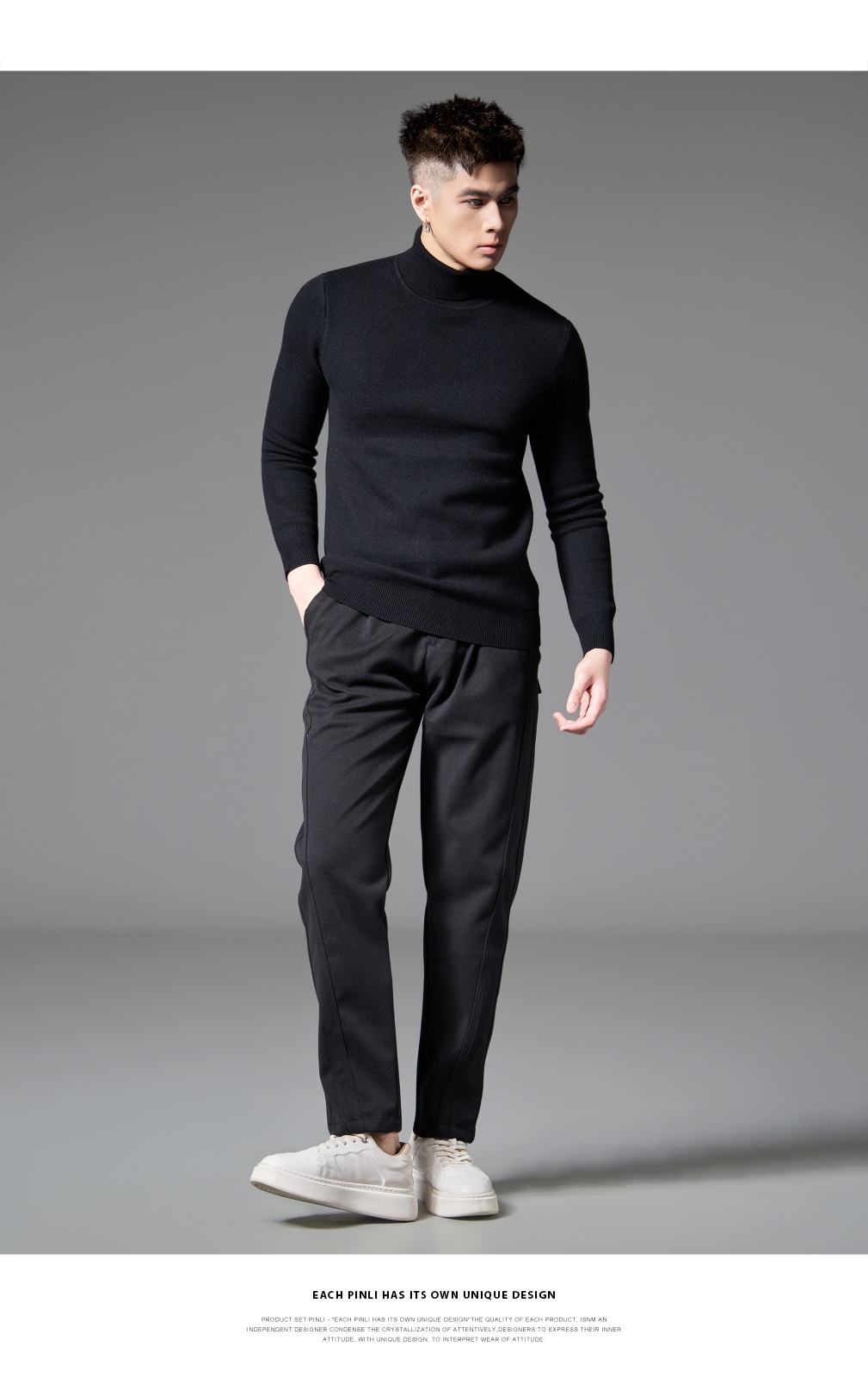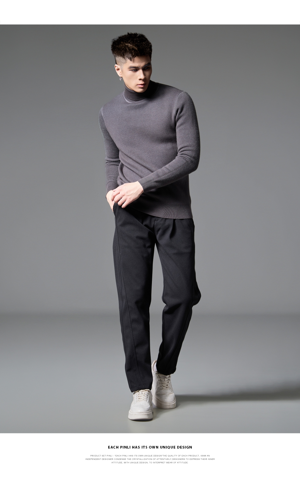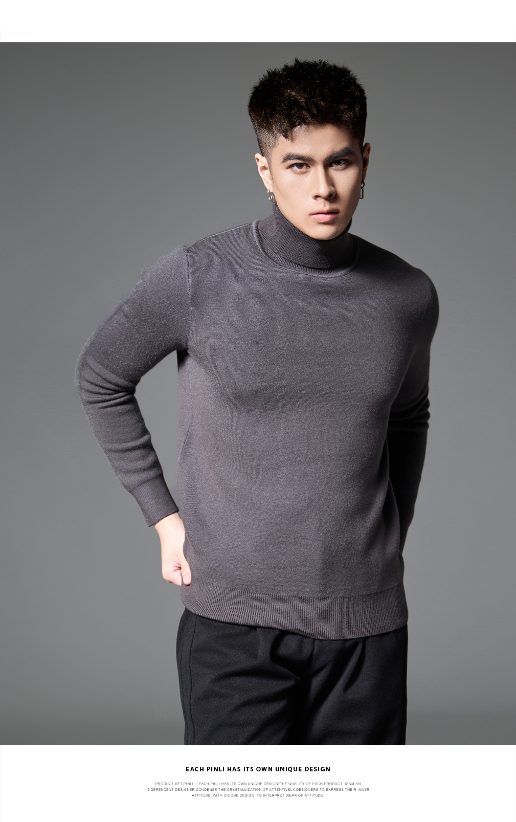 PINLI品立2024冬季新款高领修身加绒针织衫男士加厚百搭打底毛衣GD243410467