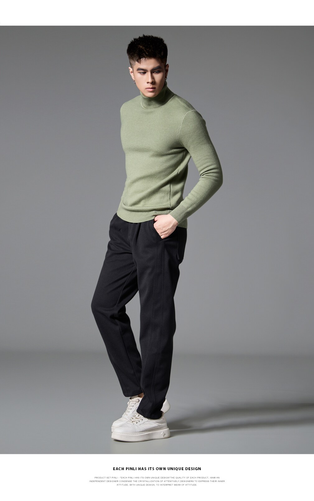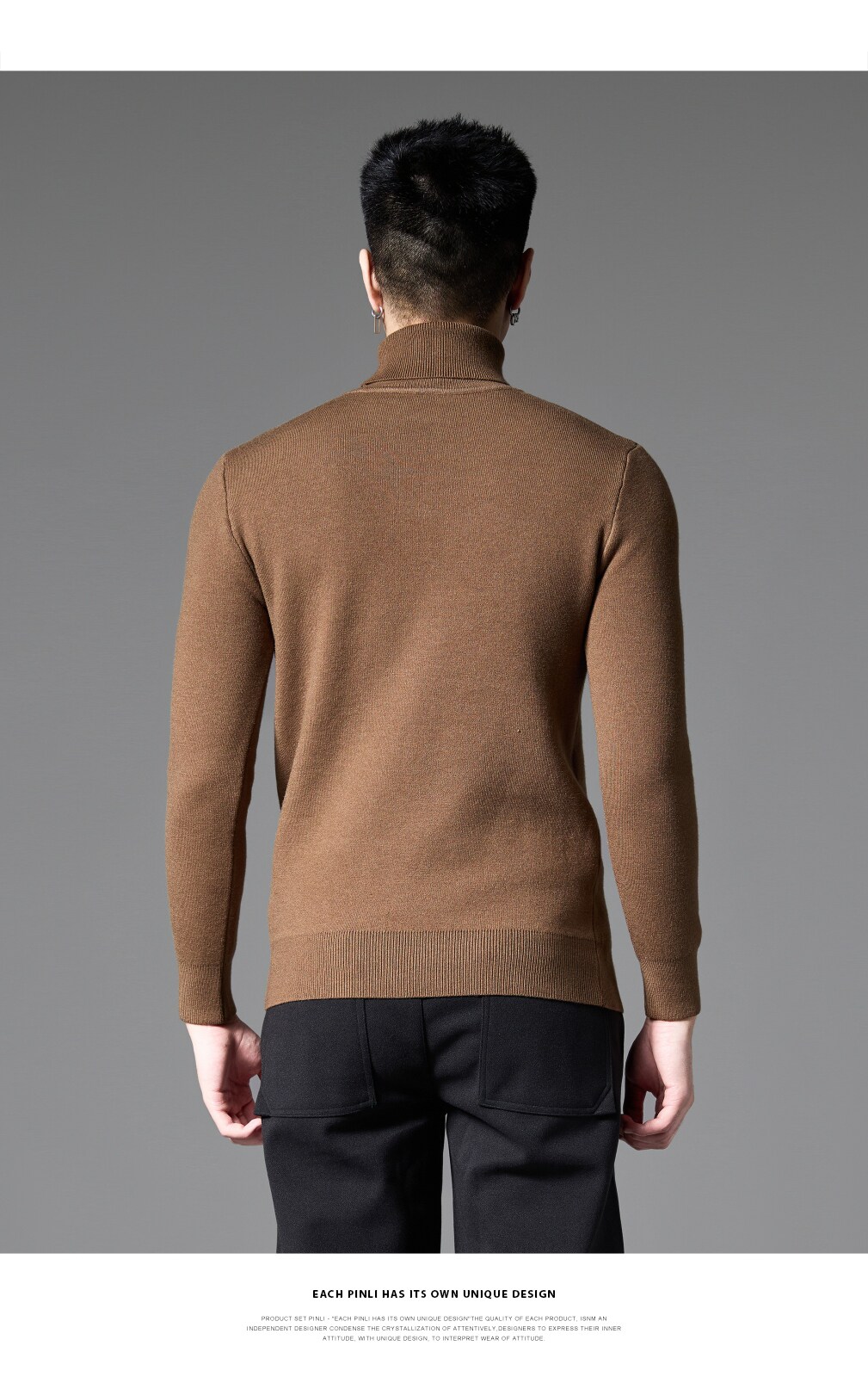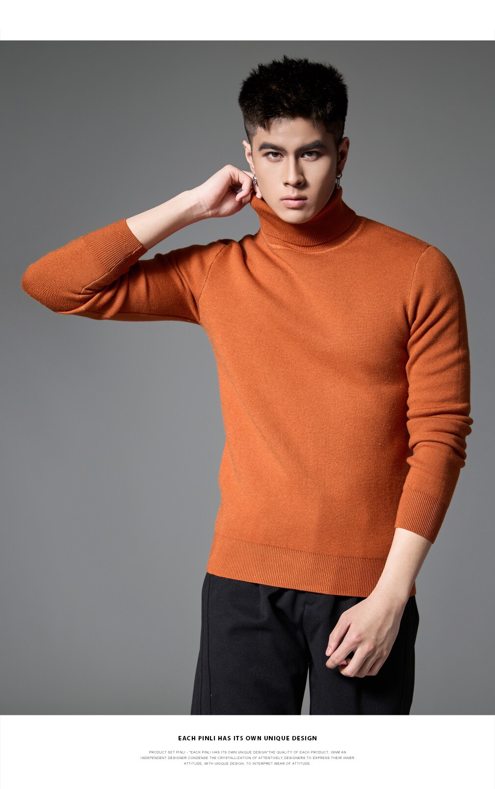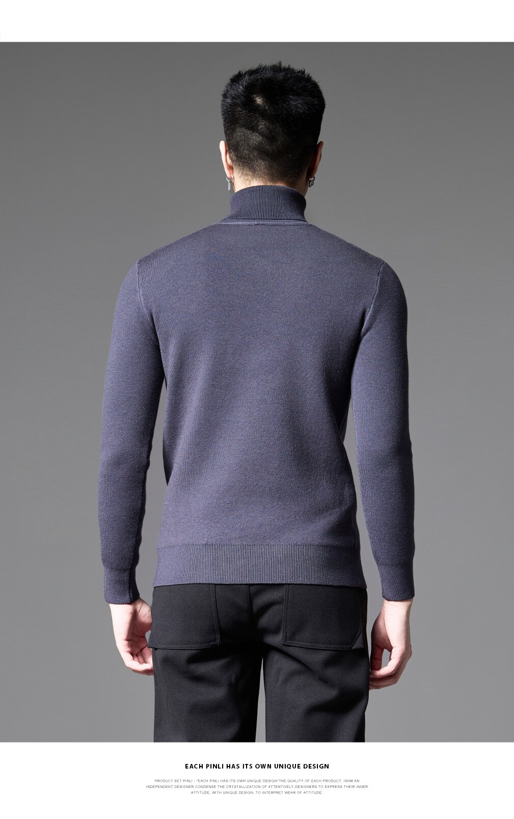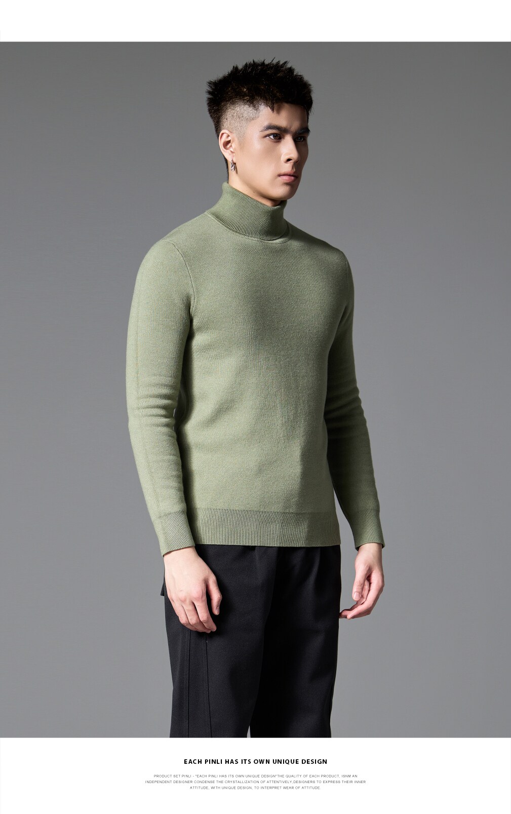 PINLI品立2024冬季新款高领修身加绒针织衫男士加厚百搭打底毛衣GD243410467