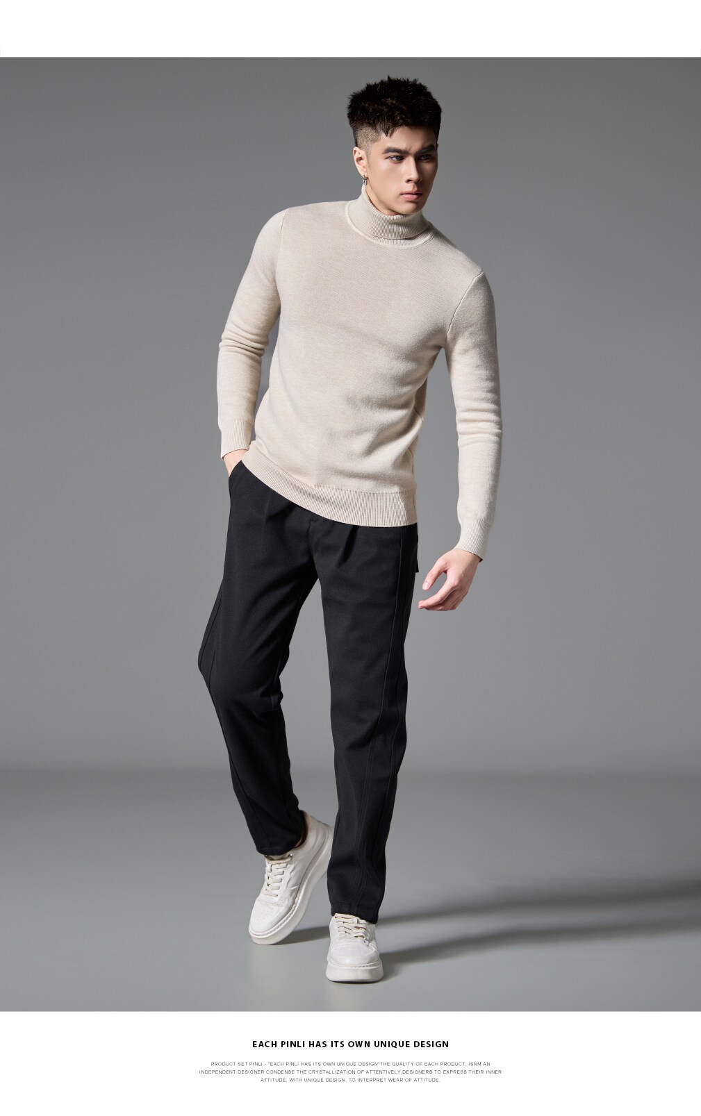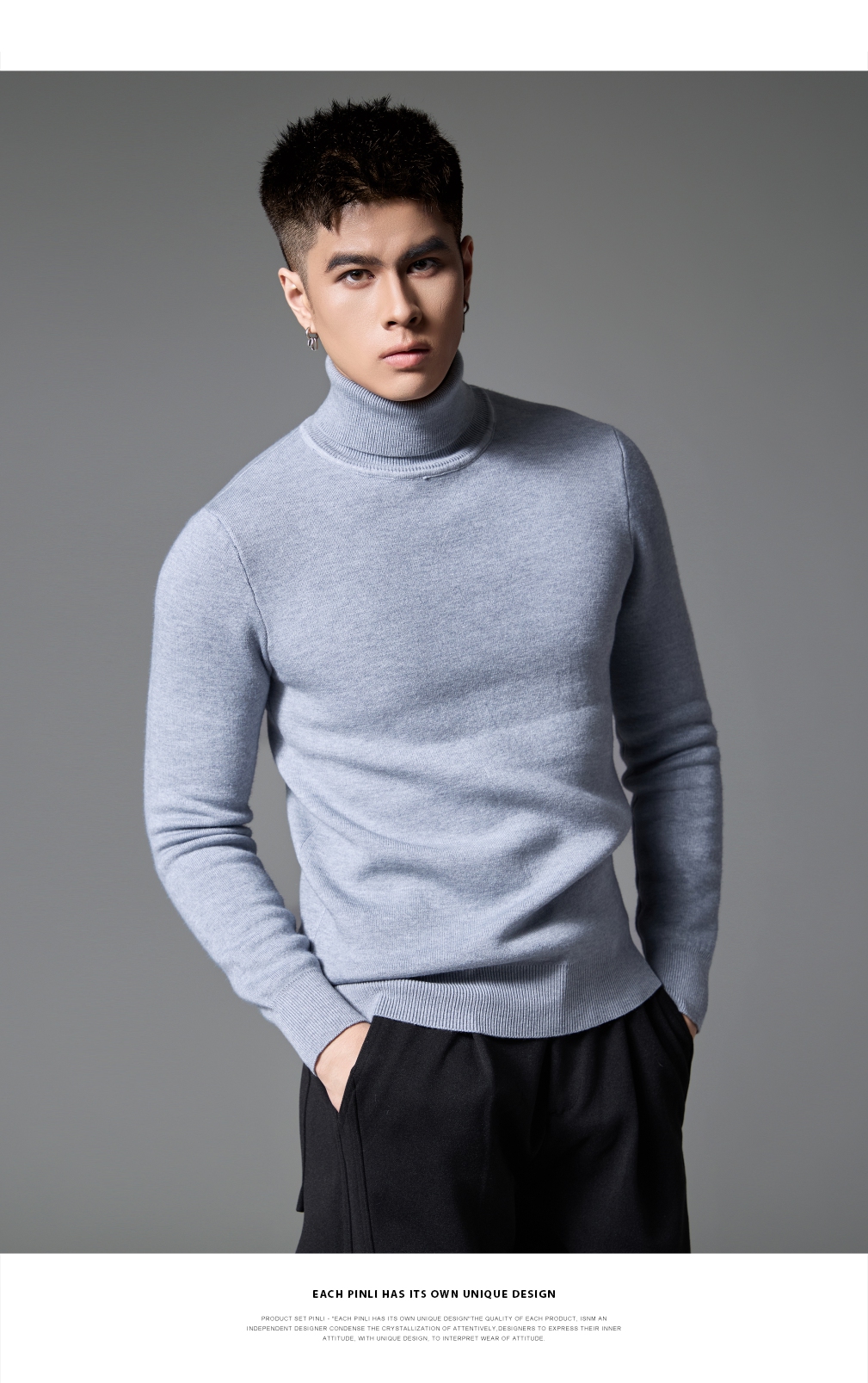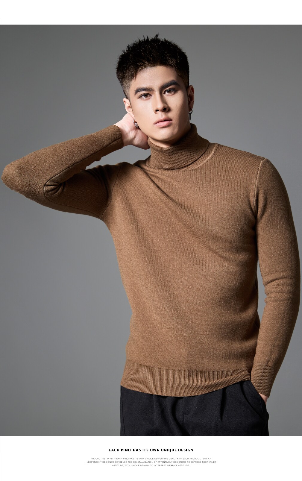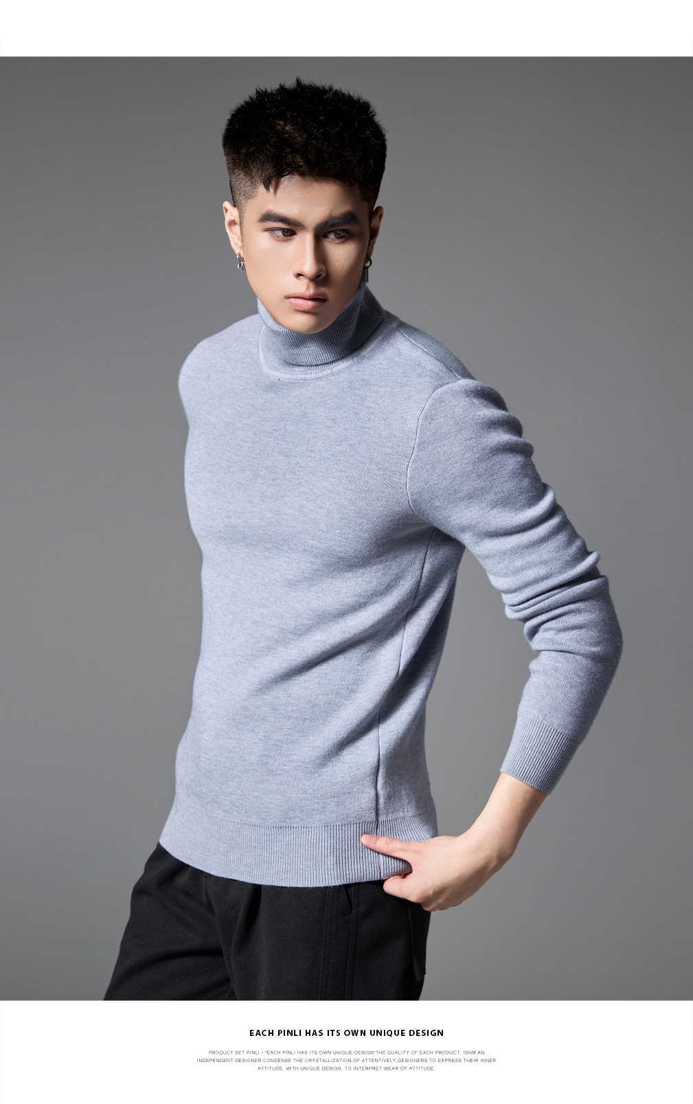 PINLI品立2024冬季新款高领修身加绒针织衫男士加厚百搭打底毛衣GD243410467