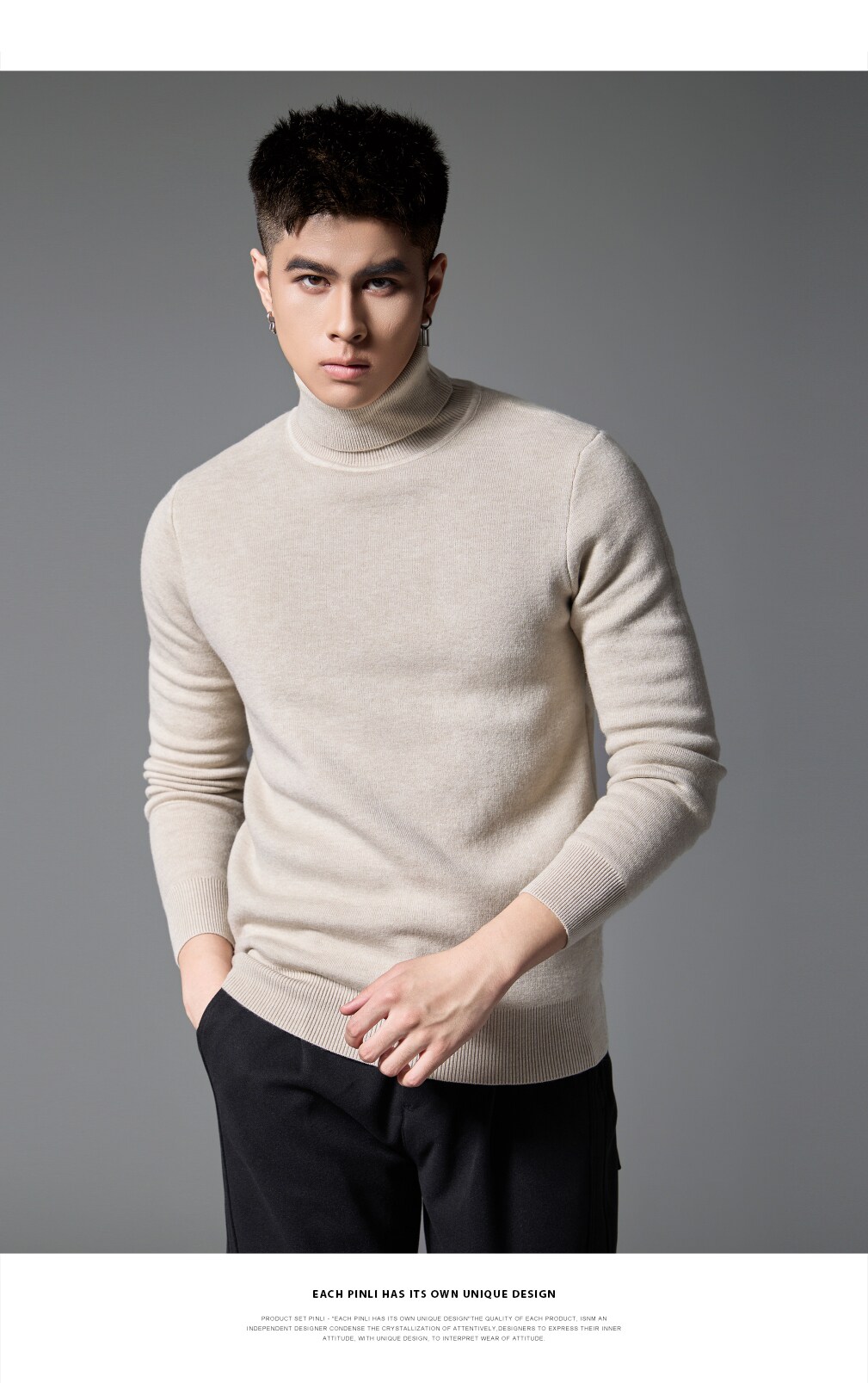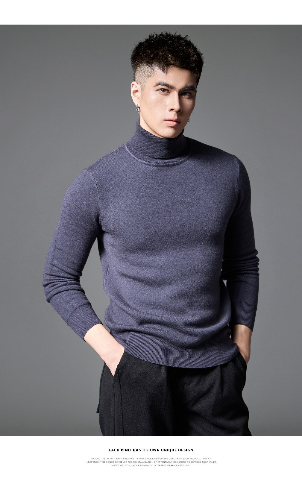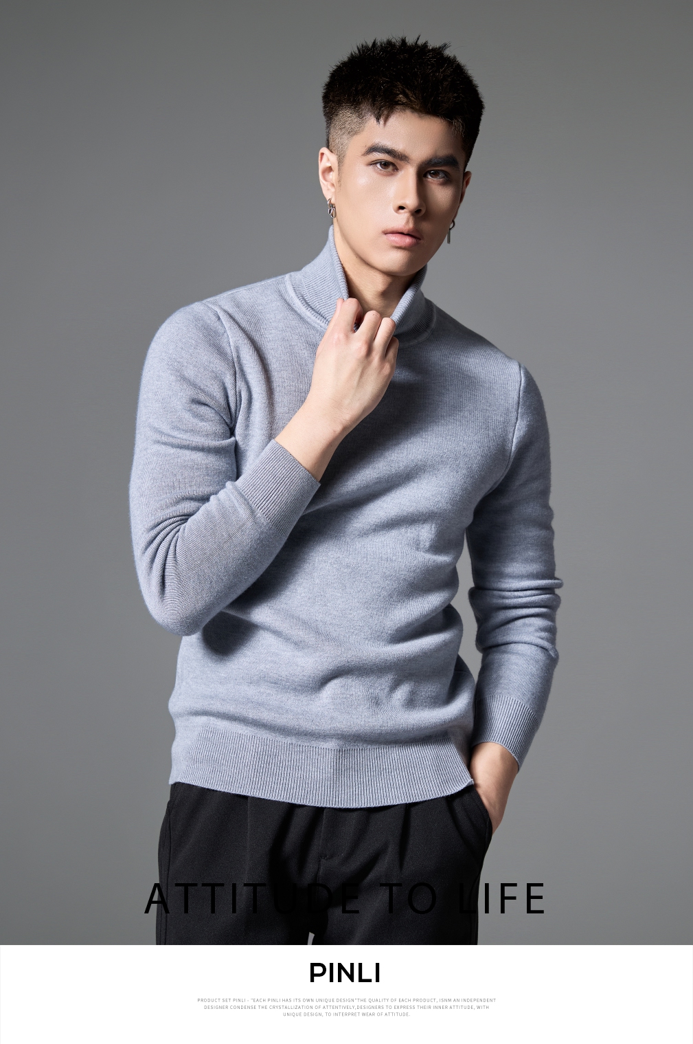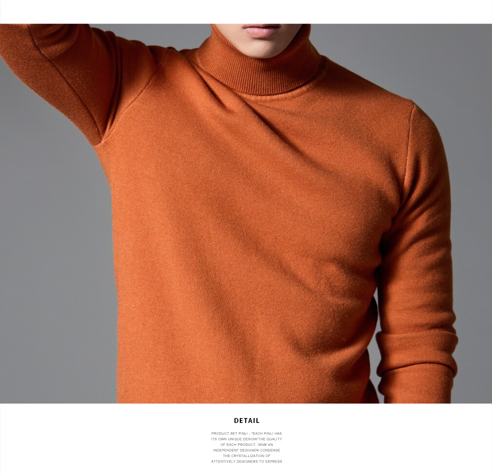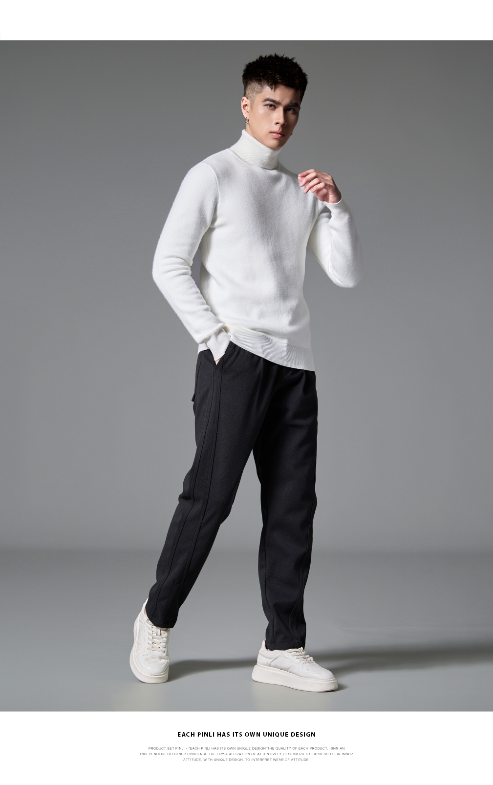 PINLI品立2024冬季新款高领修身加绒针织衫男士加厚百搭打底毛衣GD243410467