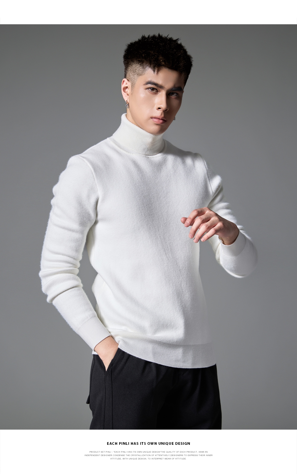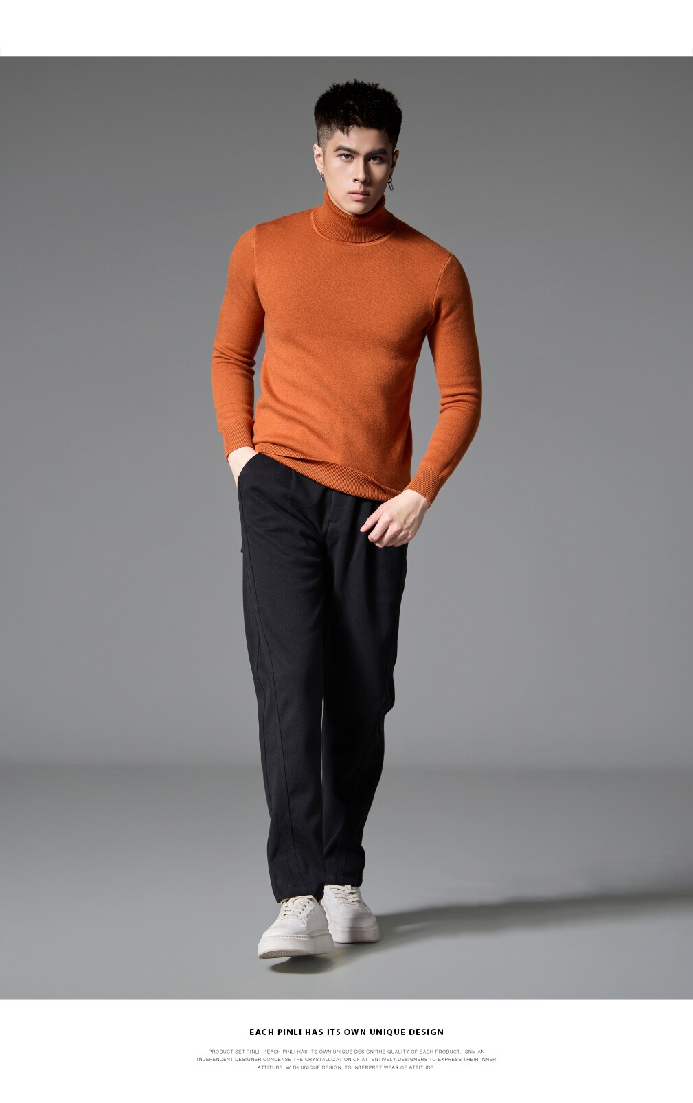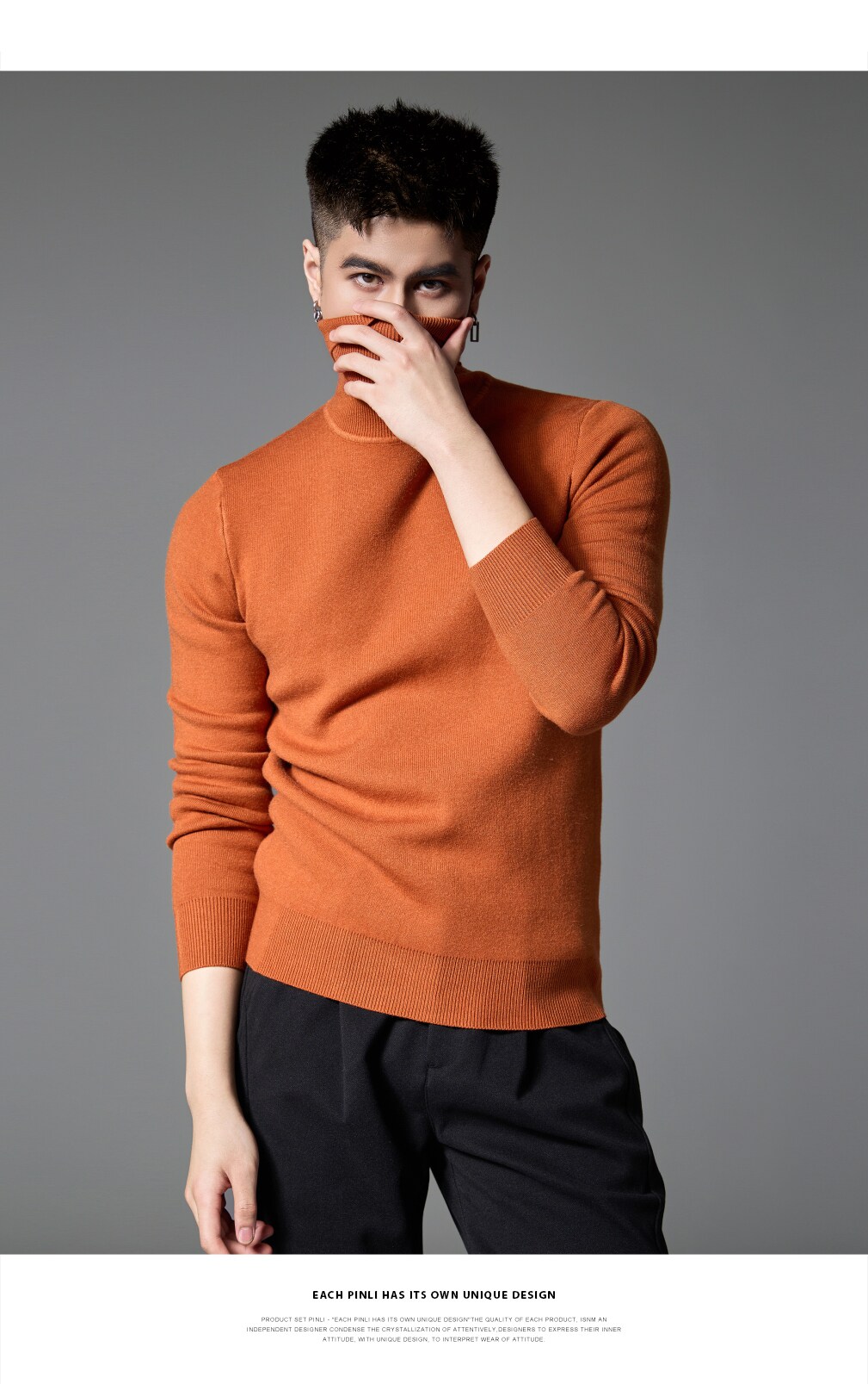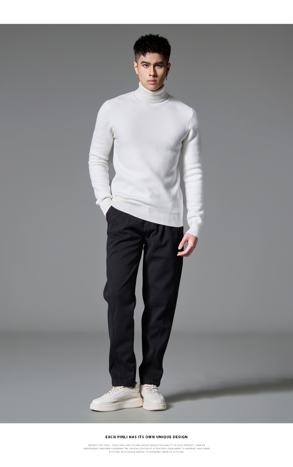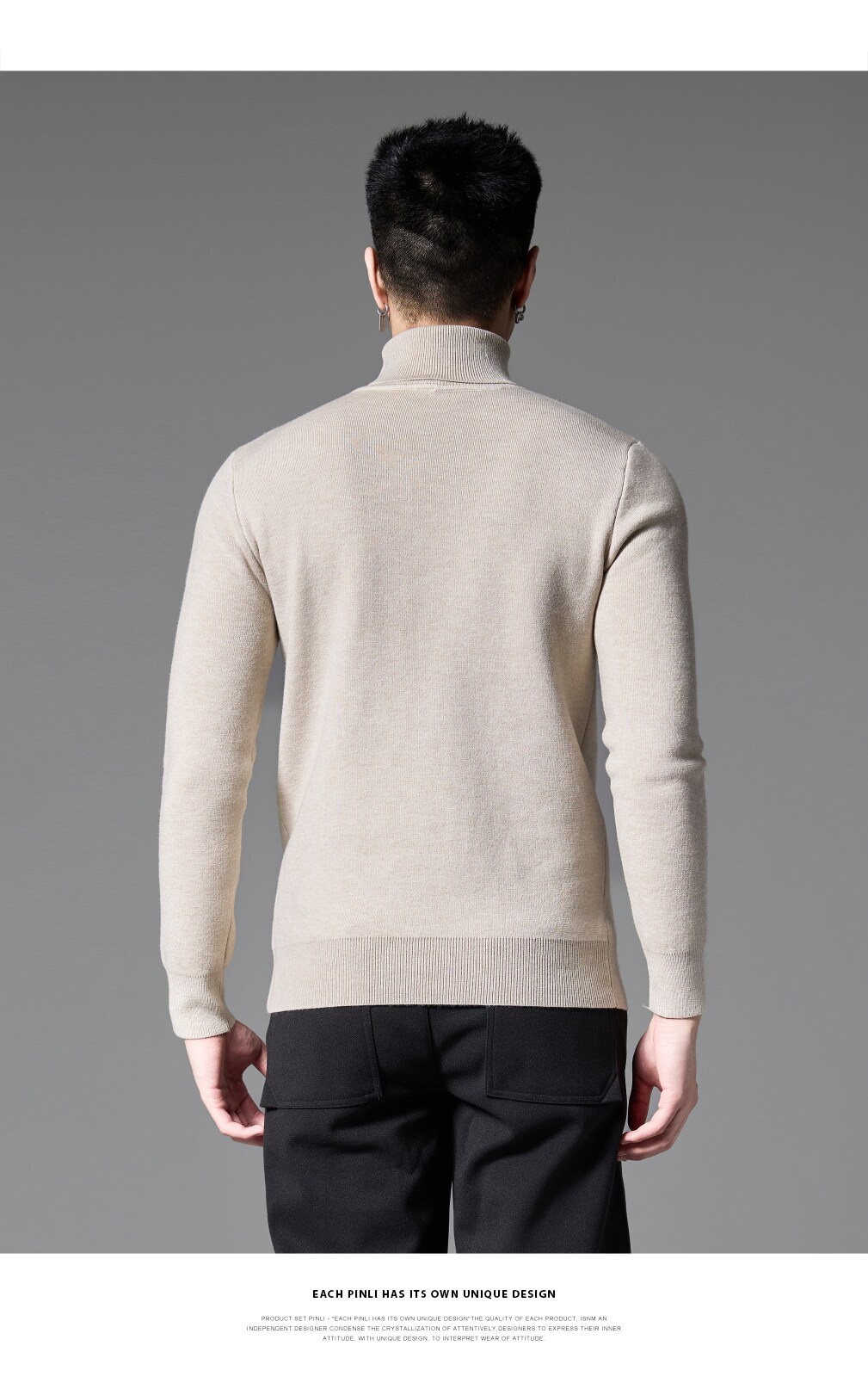 PINLI品立2024冬季新款高领修身加绒针织衫男士加厚百搭打底毛衣GD243410467