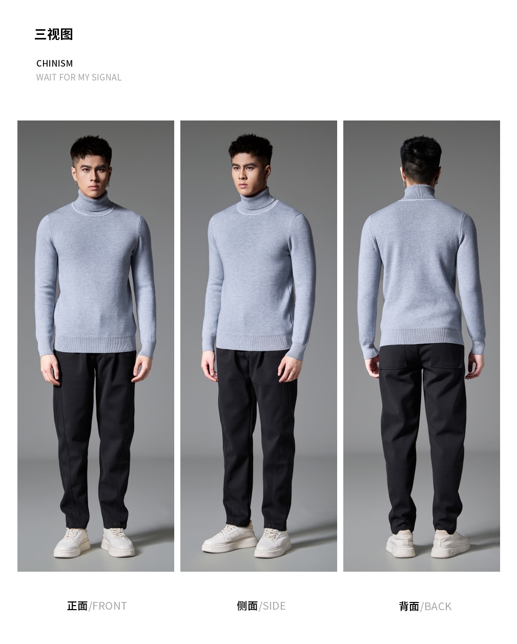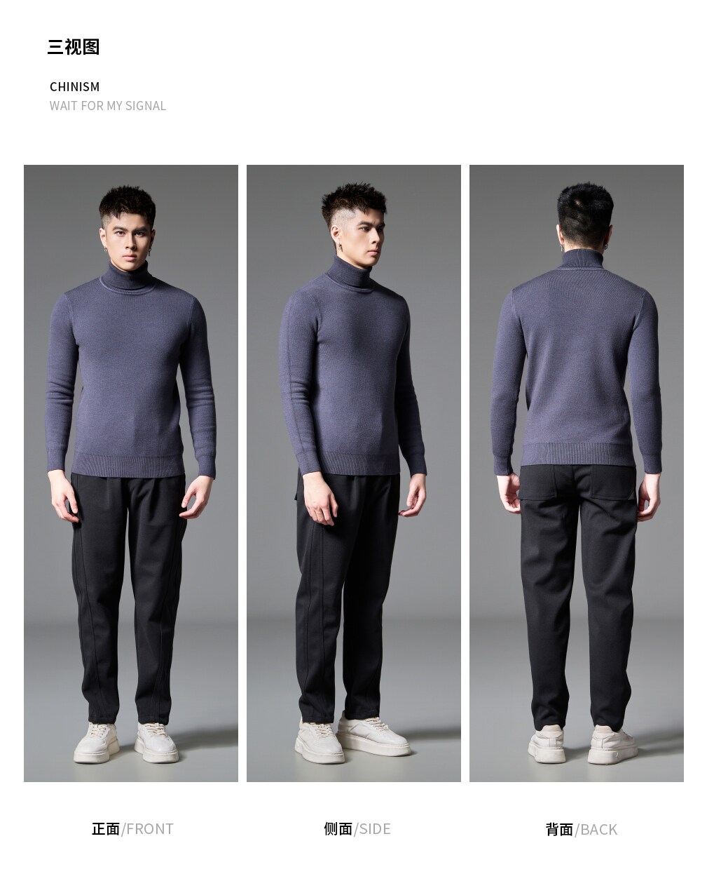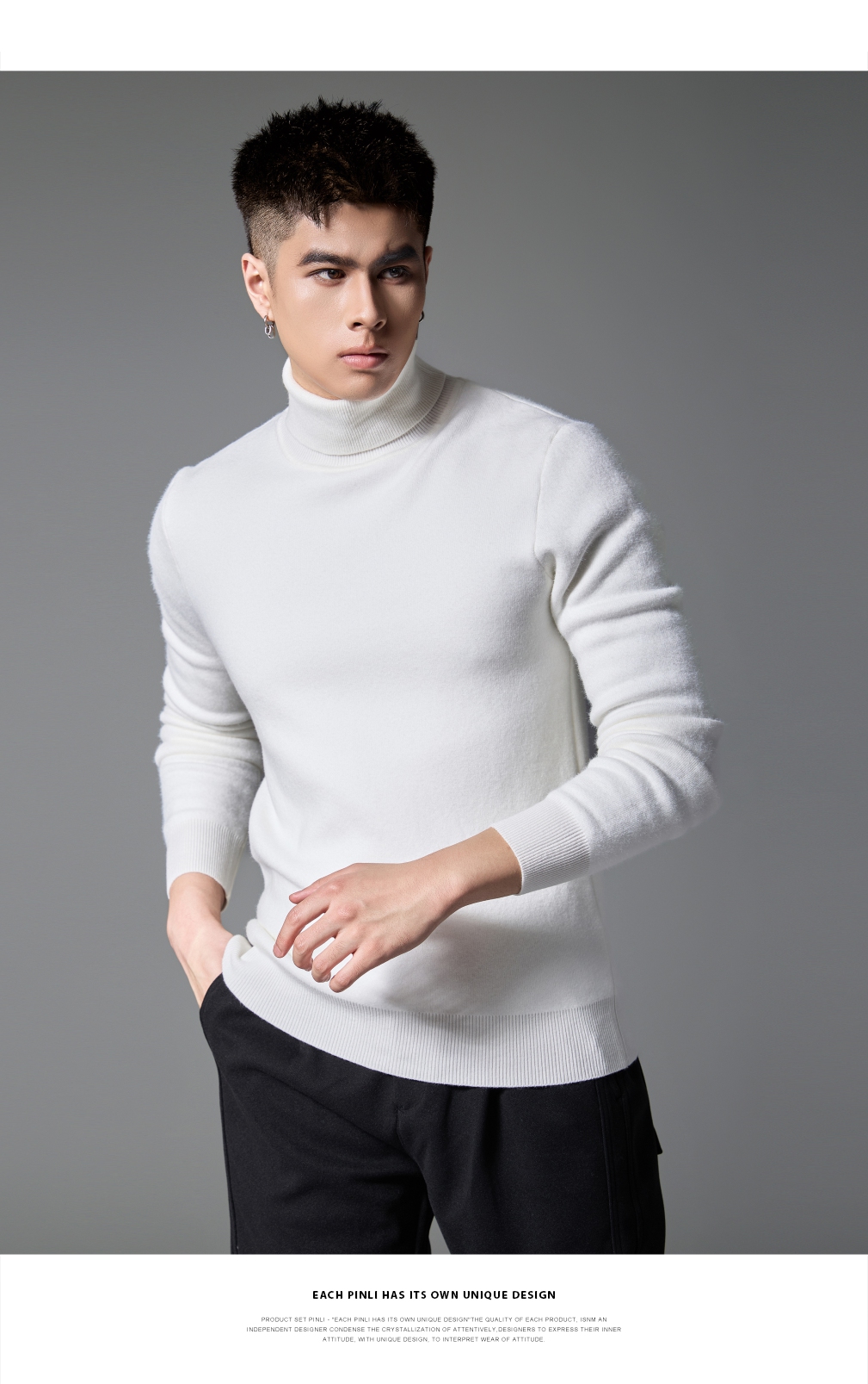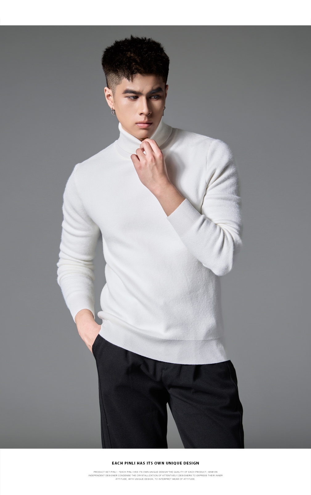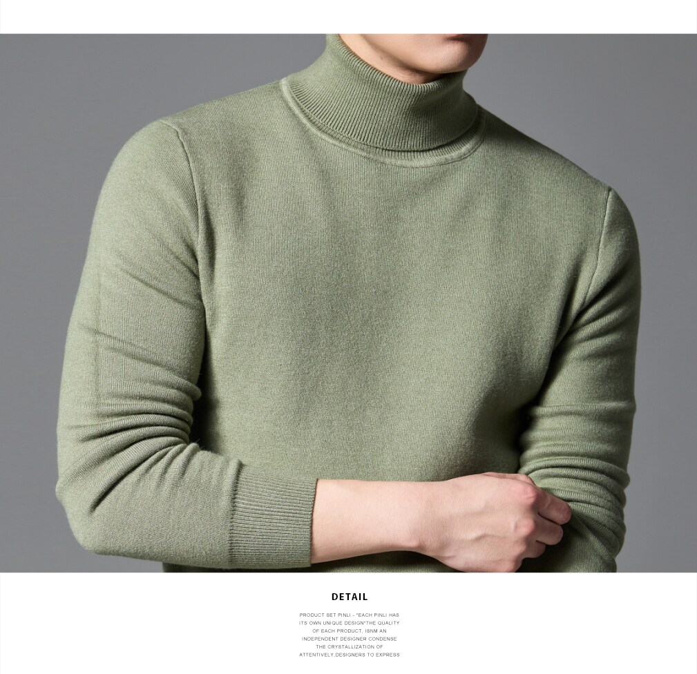 PINLI品立2024冬季新款高领修身加绒针织衫男士加厚百搭打底毛衣GD243410467
