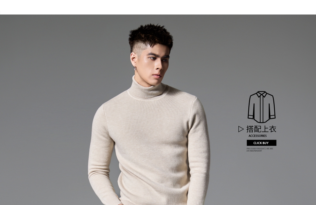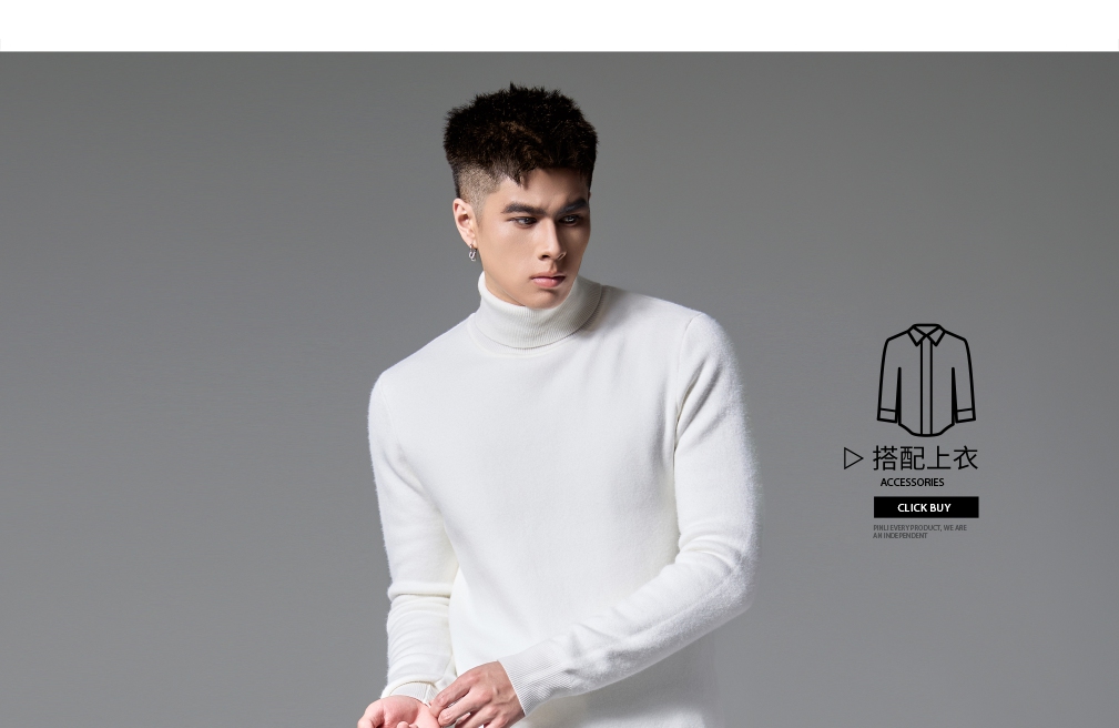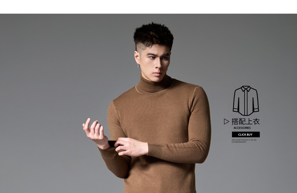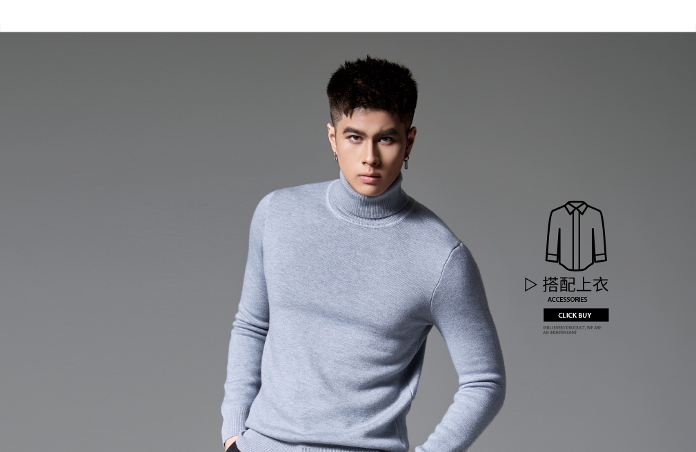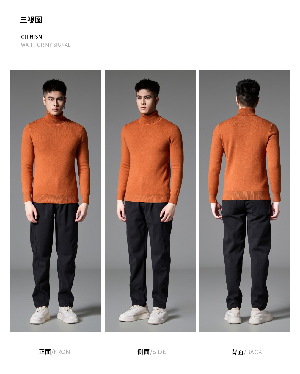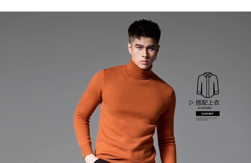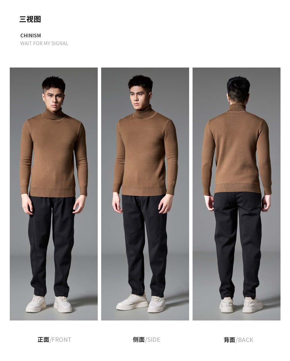 PINLI品立2024冬季新款高领修身加绒针织衫男士加厚百搭打底毛衣GD243410467