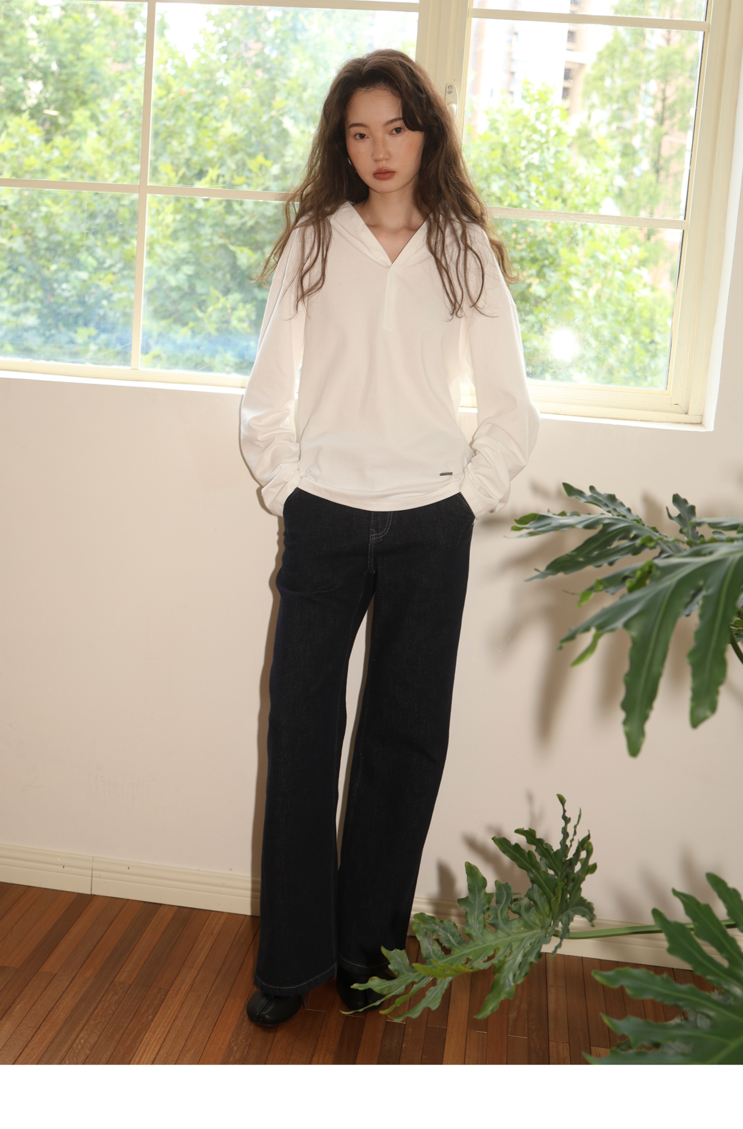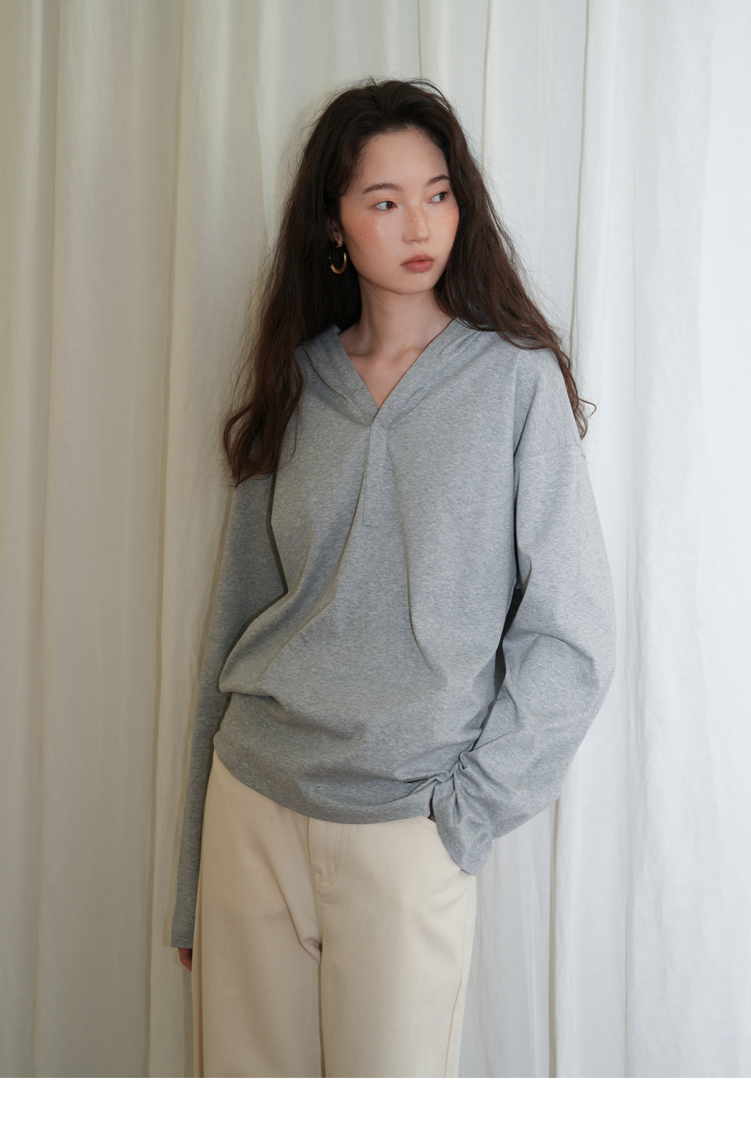 【8/25新品】素舶 优质长绒棉奶油棉柔软亲肤透气细腻纹理v领连帽套头上衣