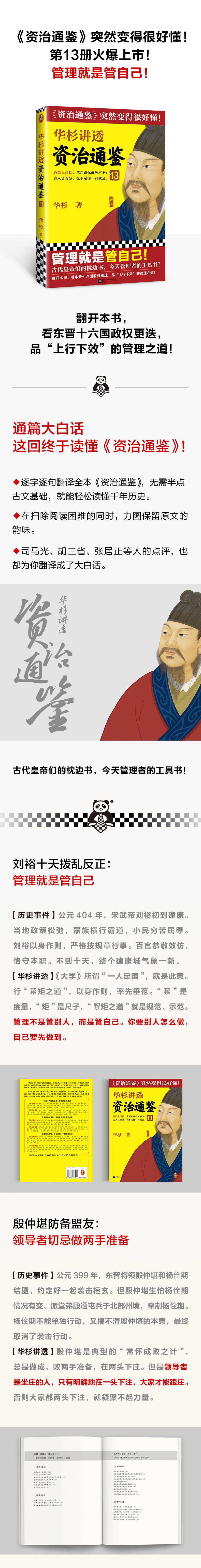 《资治通鉴》从战国写到五代十国,生动展现了16个朝代1362年历史中一个个活生生的人和故事,可以说是中国政治和文化遗产的;大数据和;超级案例集。我们今天遇到的问题和困惑,历史先辈们都遇到过、处理过,有经验教训。