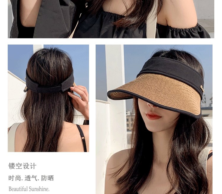 【时尚百搭 防晒靠它】沙滩草帽子女夏天空顶防晒帽男遮阳帽韩版百搭鸭舌帽透气太阳 帽子
