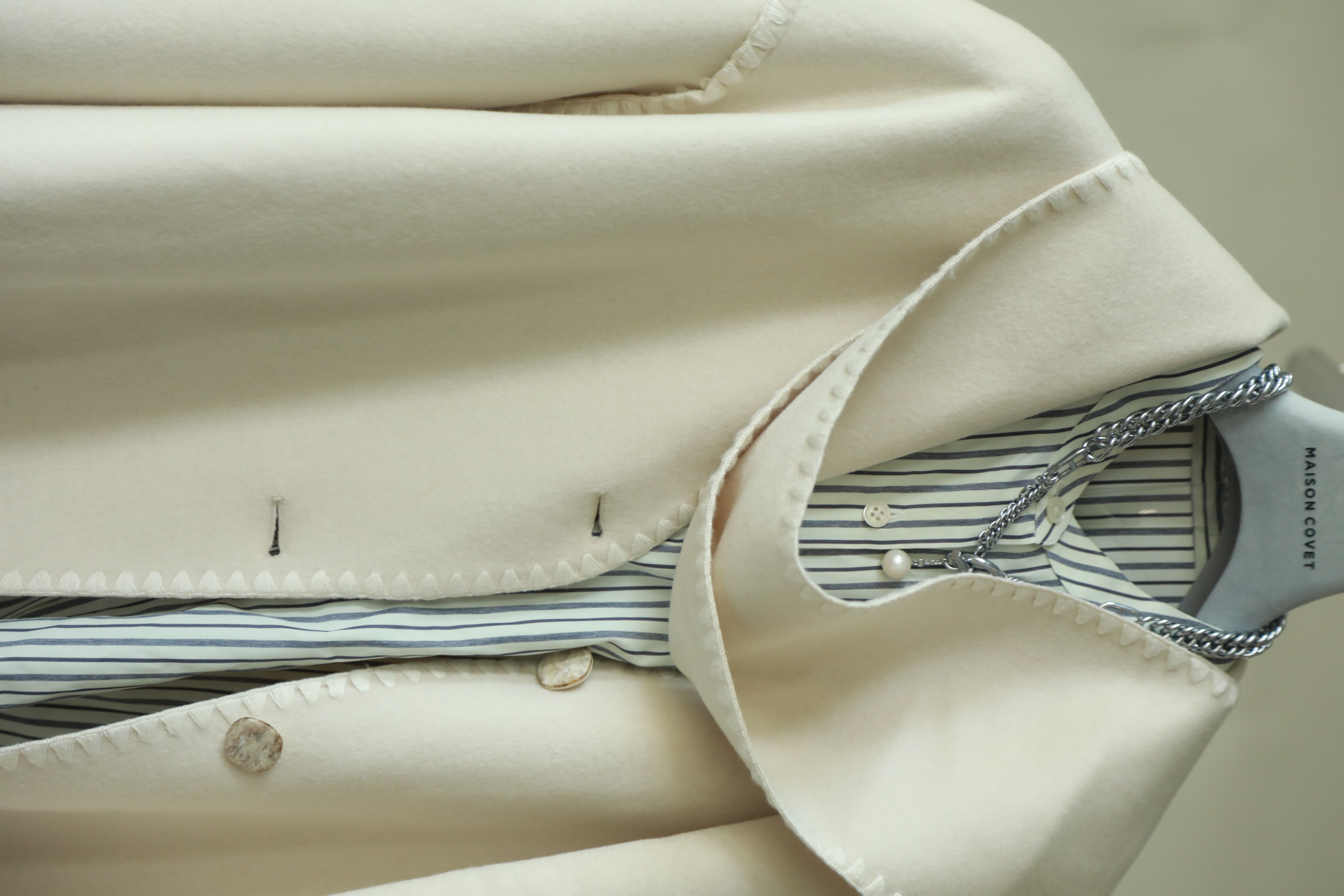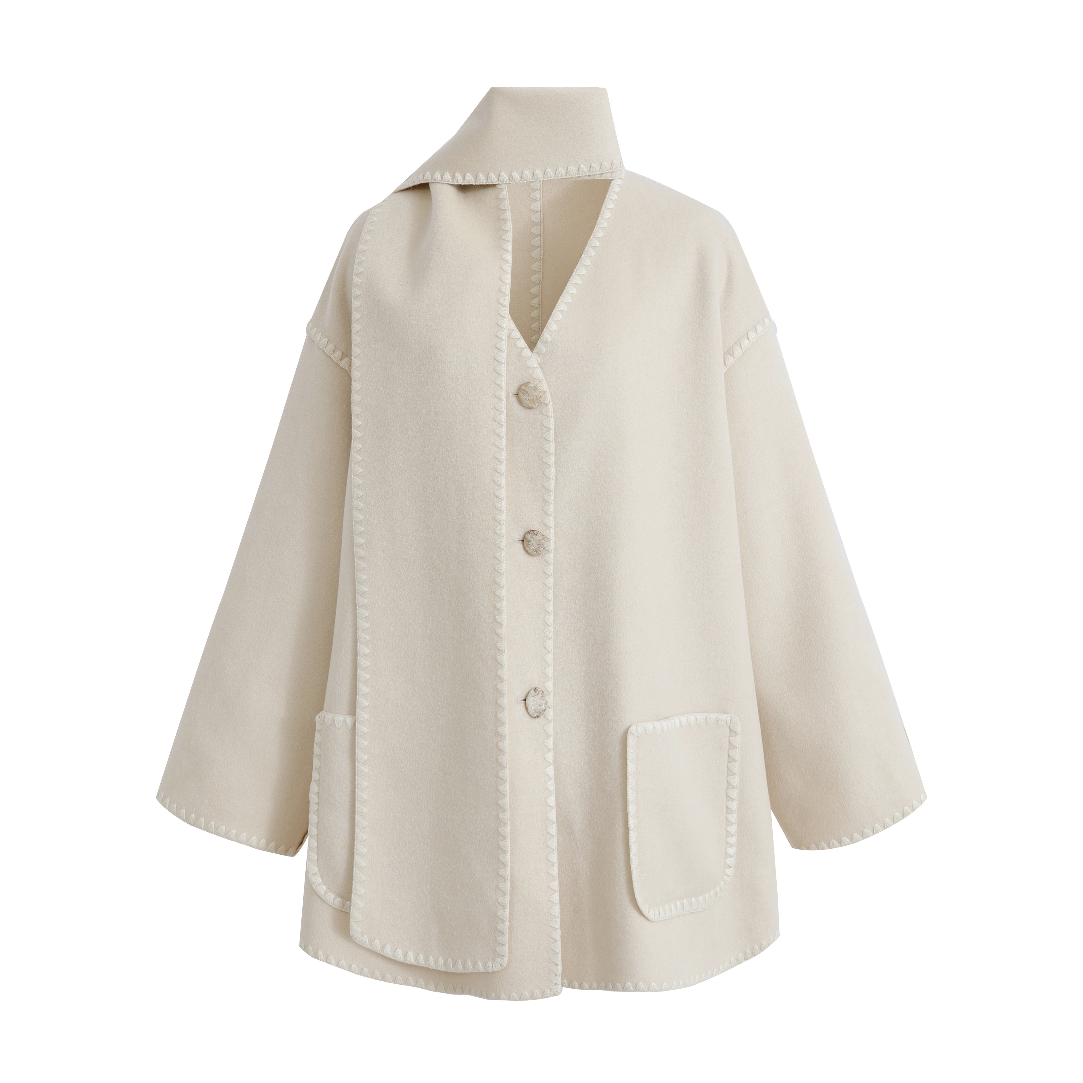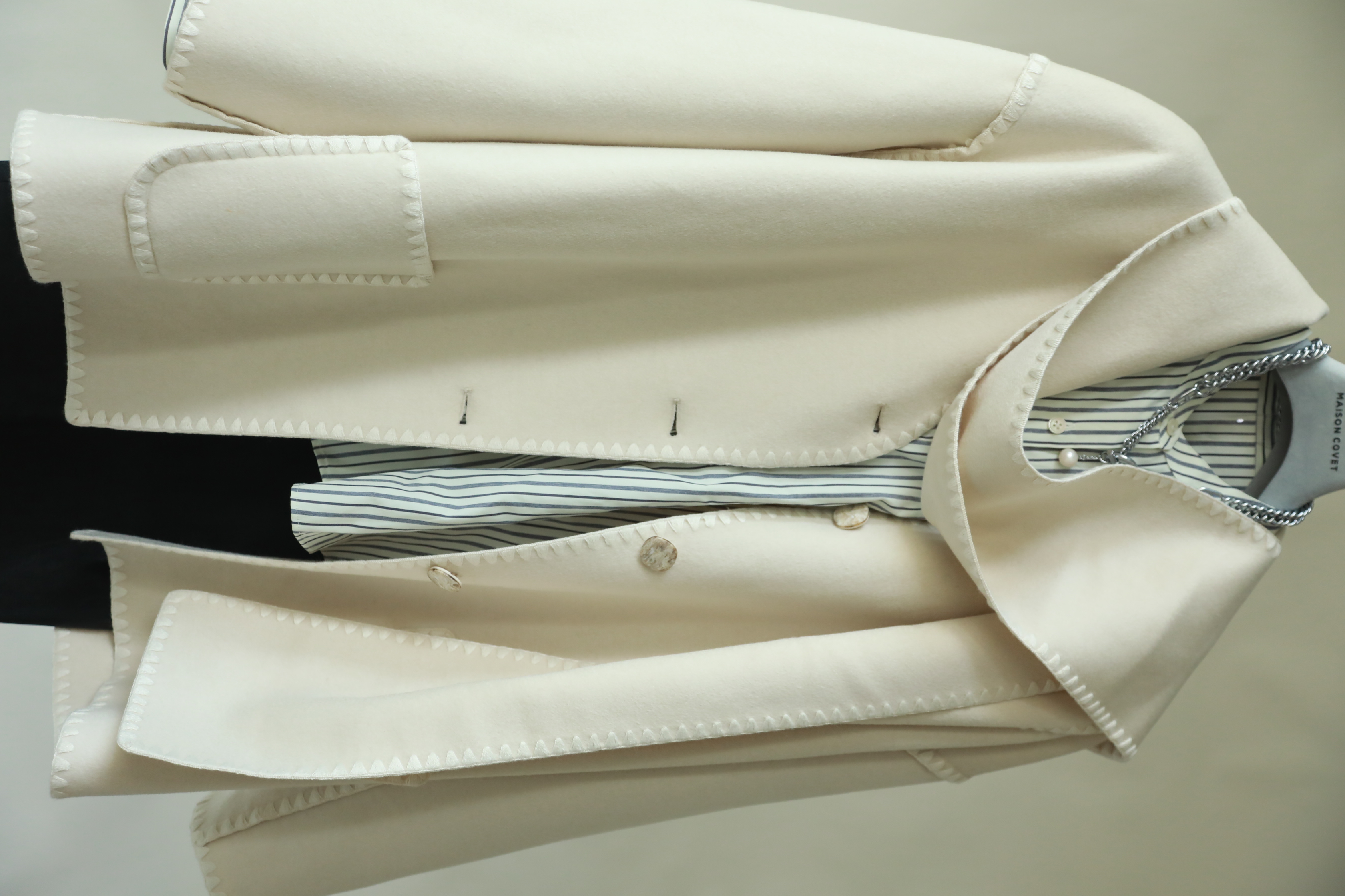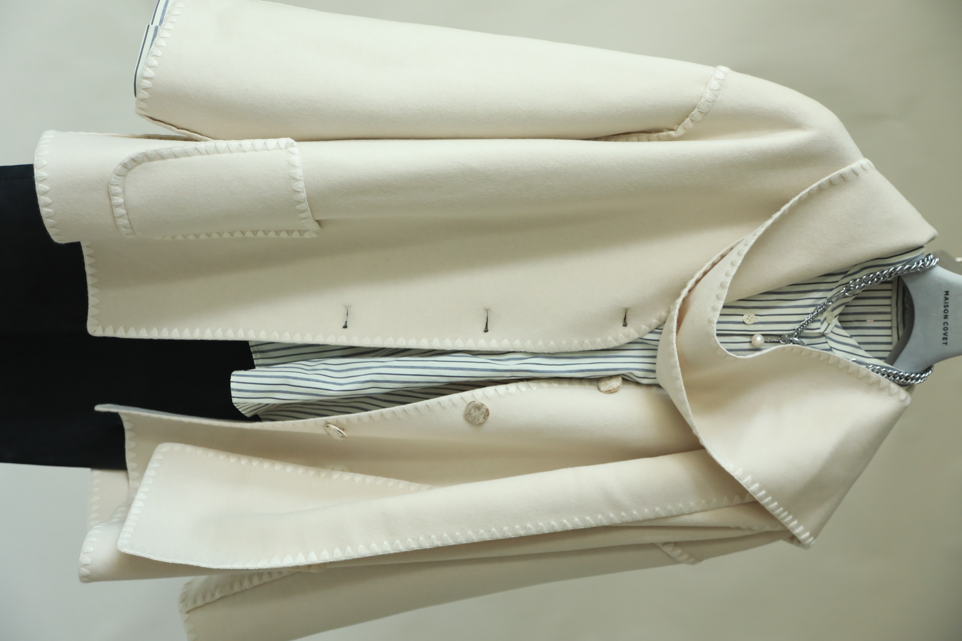MAISON COVET 纯山羊绒中长款带围巾外套大衣