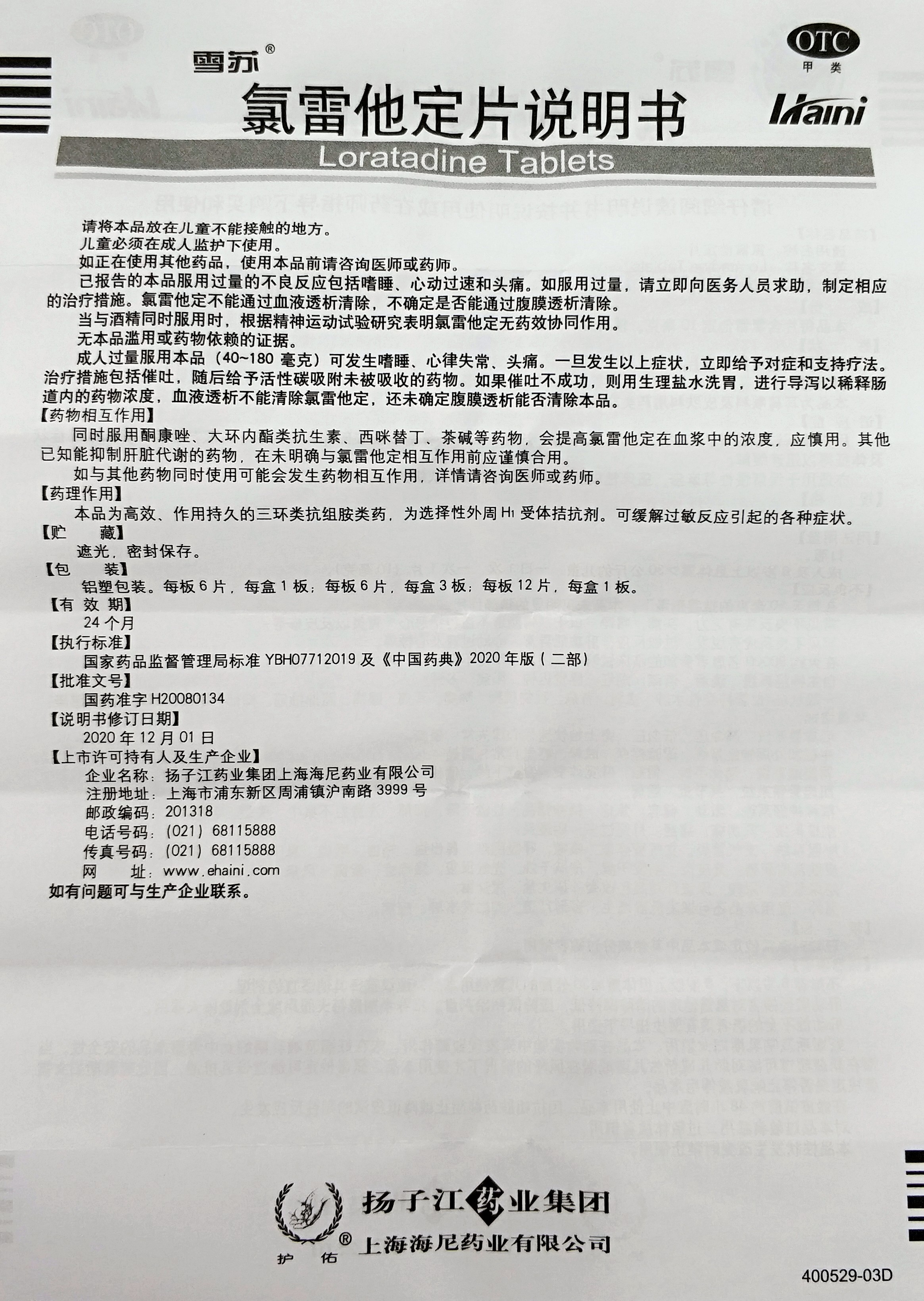 商品名称:氯雷他定片
