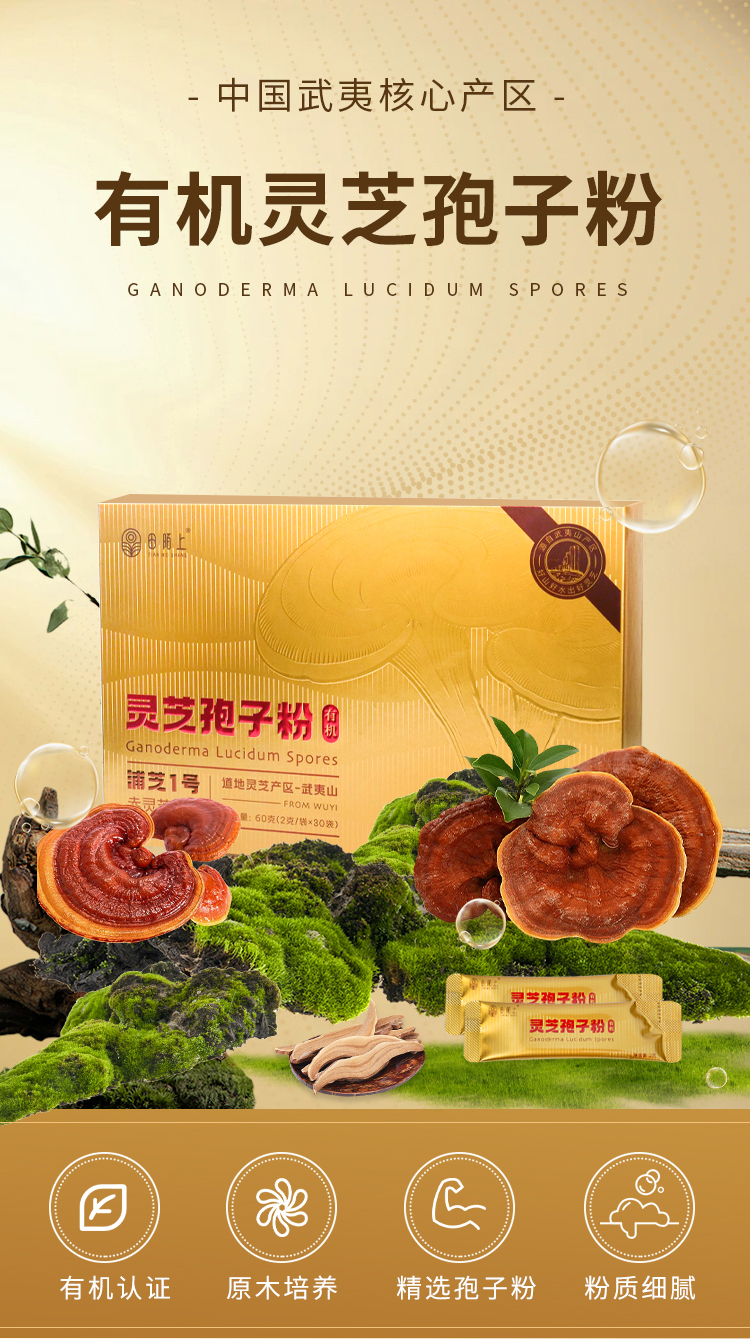 有机灵芝孢子粉 60g/盒 粉质细腻 有机认证