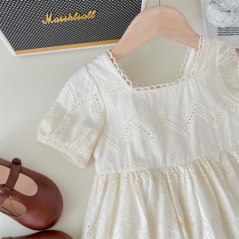 【韩版ins可爱❗️洋气女童镂空泡泡袖连衣裙】清新甜美舒适柔软,时尚洋气,释放孩子们的童真,乖巧可爱萌趣,轻薄透气不闷热,凉爽一夏,夏装新款花边短袖儿童夏季裙子