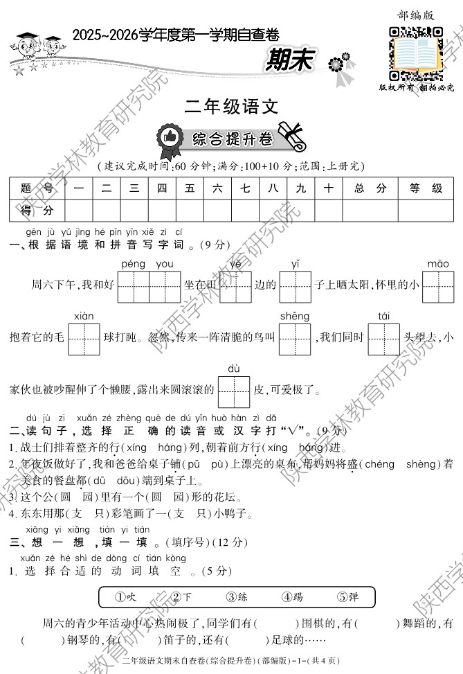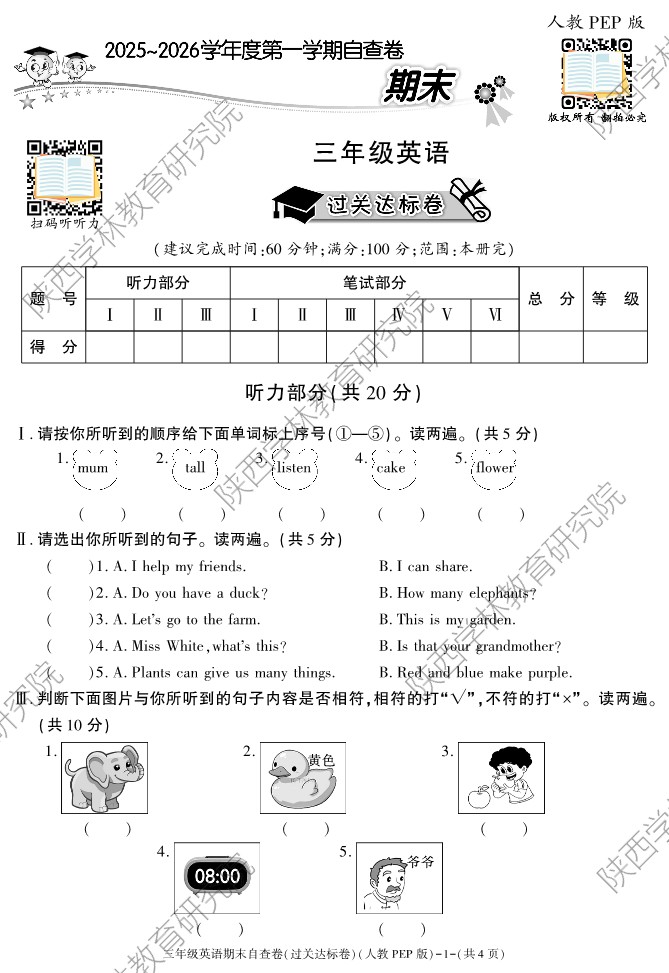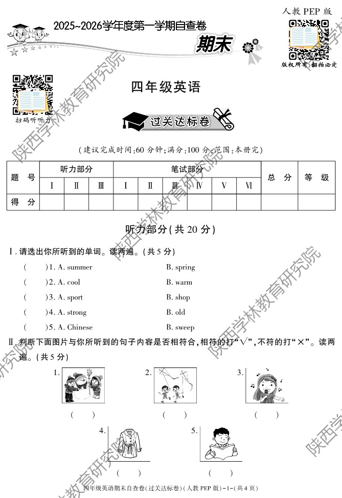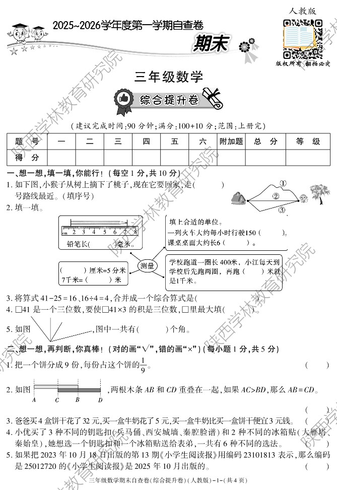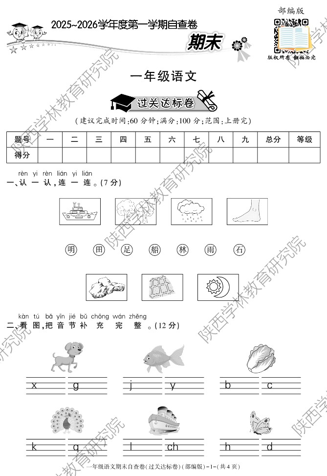 2025年秋小学【期末】自查卷(上册)语数英(版本可选)