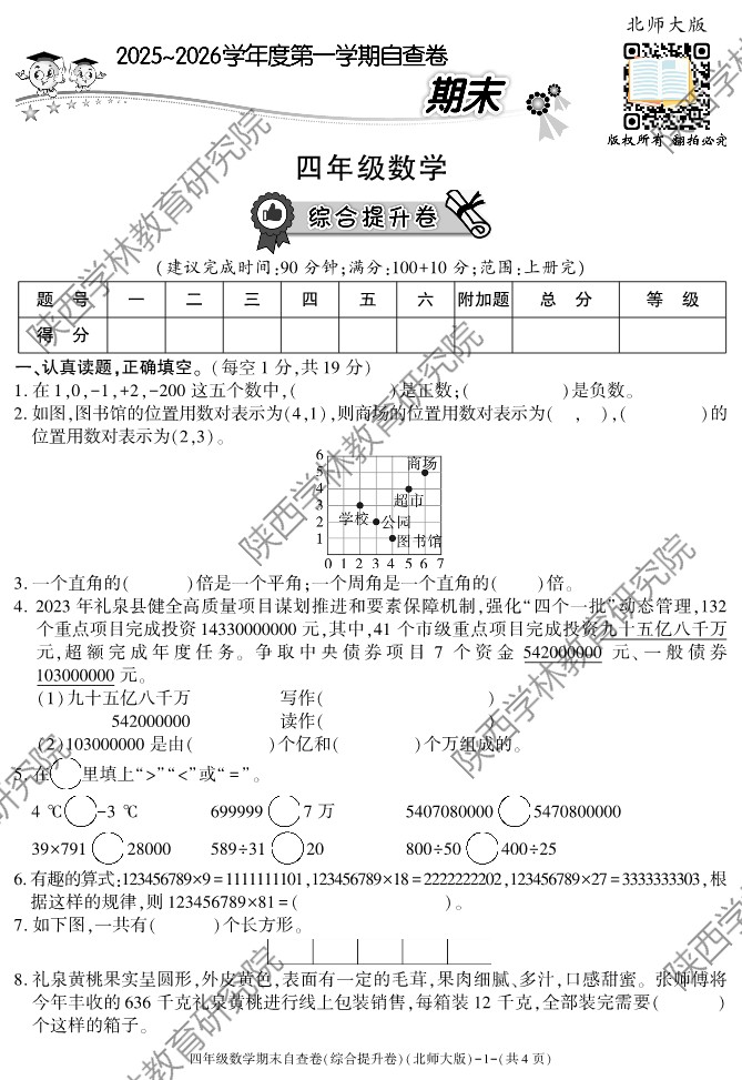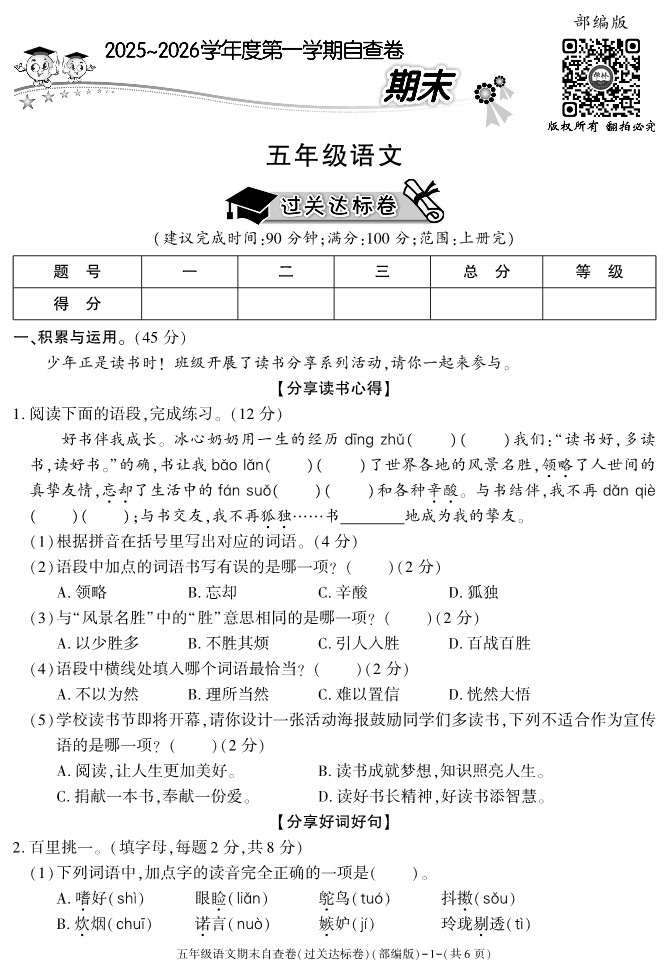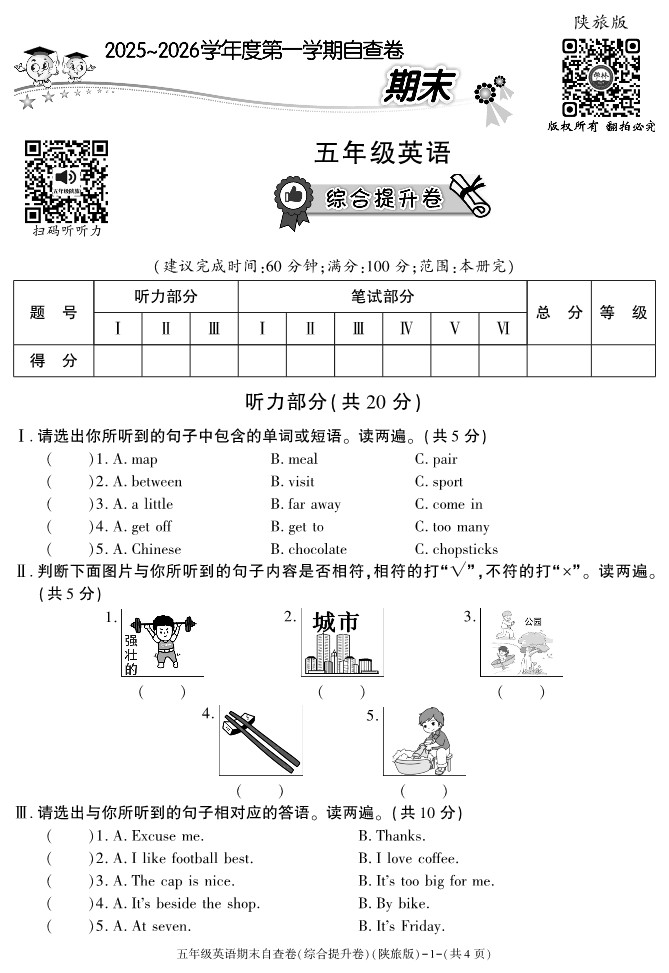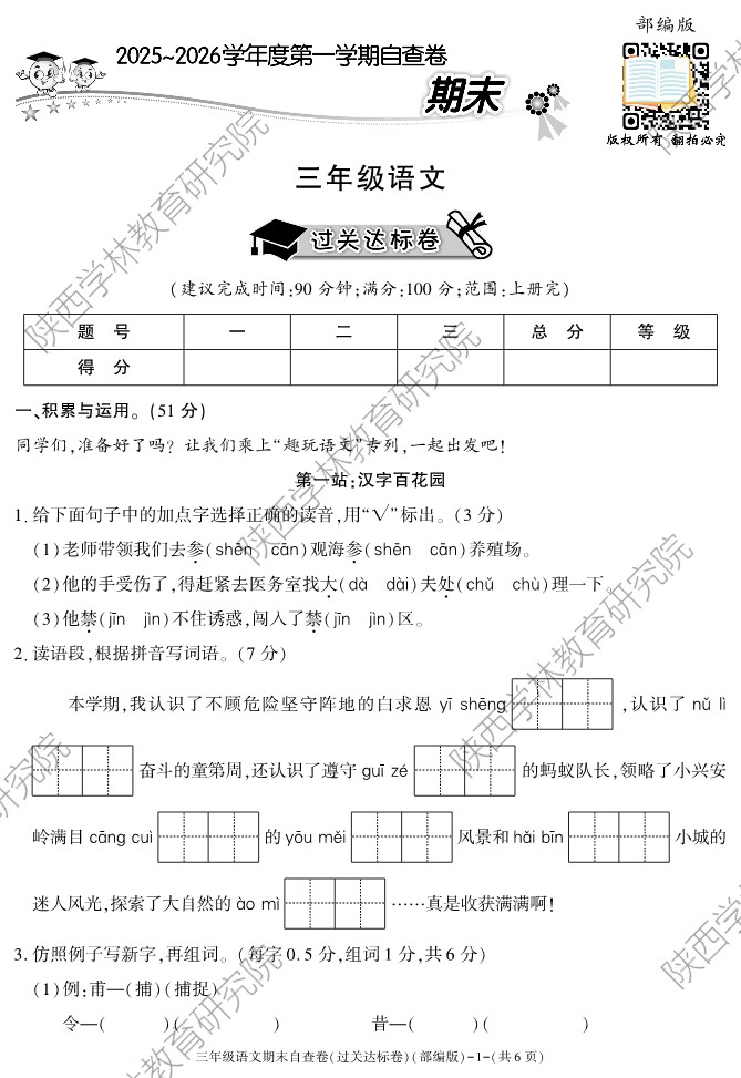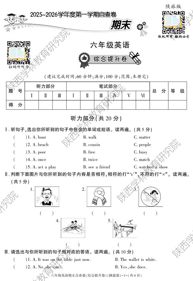 2025年秋小学【期末】自查卷(上册)语数英(版本可选)