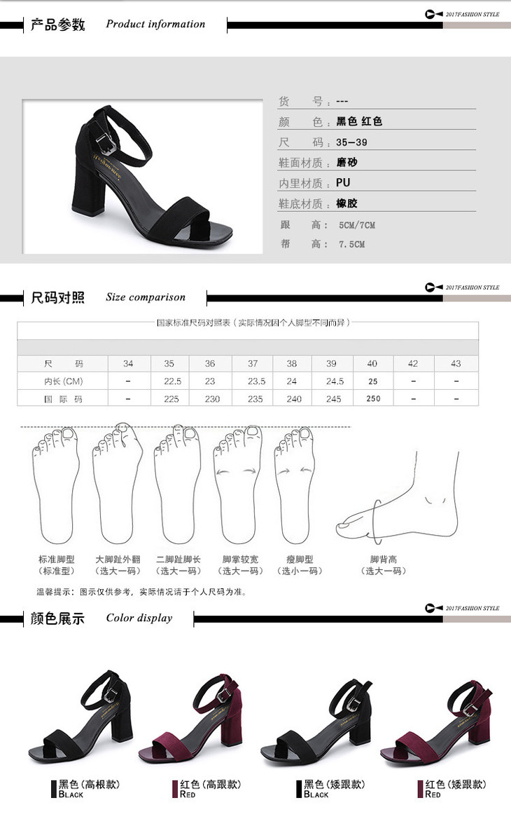 【服饰鞋包】粗跟黑色学生百搭露趾一字扣带罗马高跟鞋女