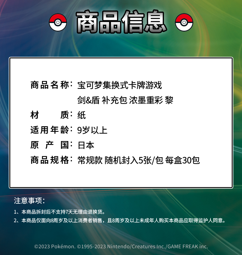 【黎】宝可梦 PTCG 集换式卡牌 剑&盾 浓墨重彩 黎 CS2.0 常规款补充包 瘦包 30包/盒