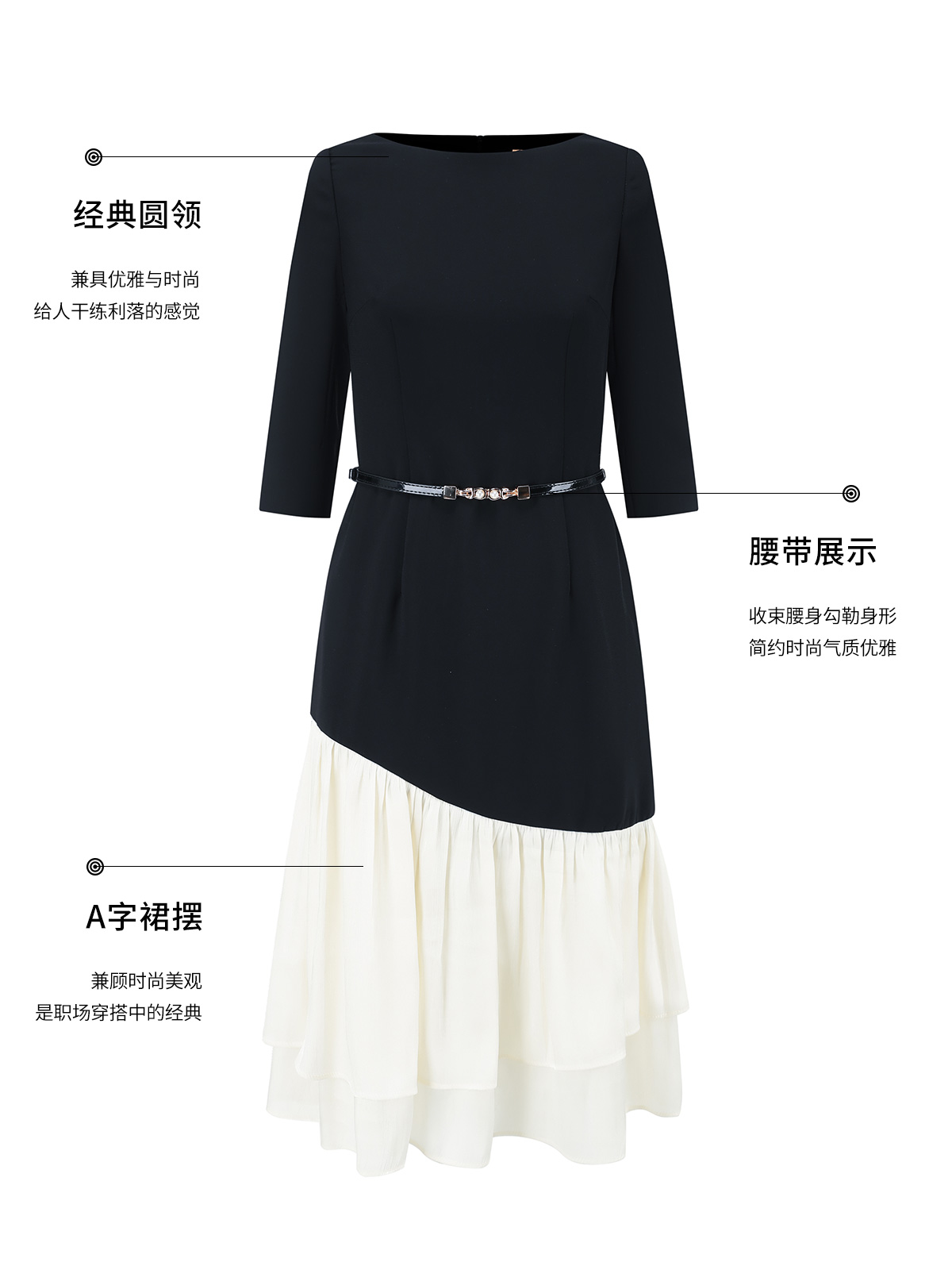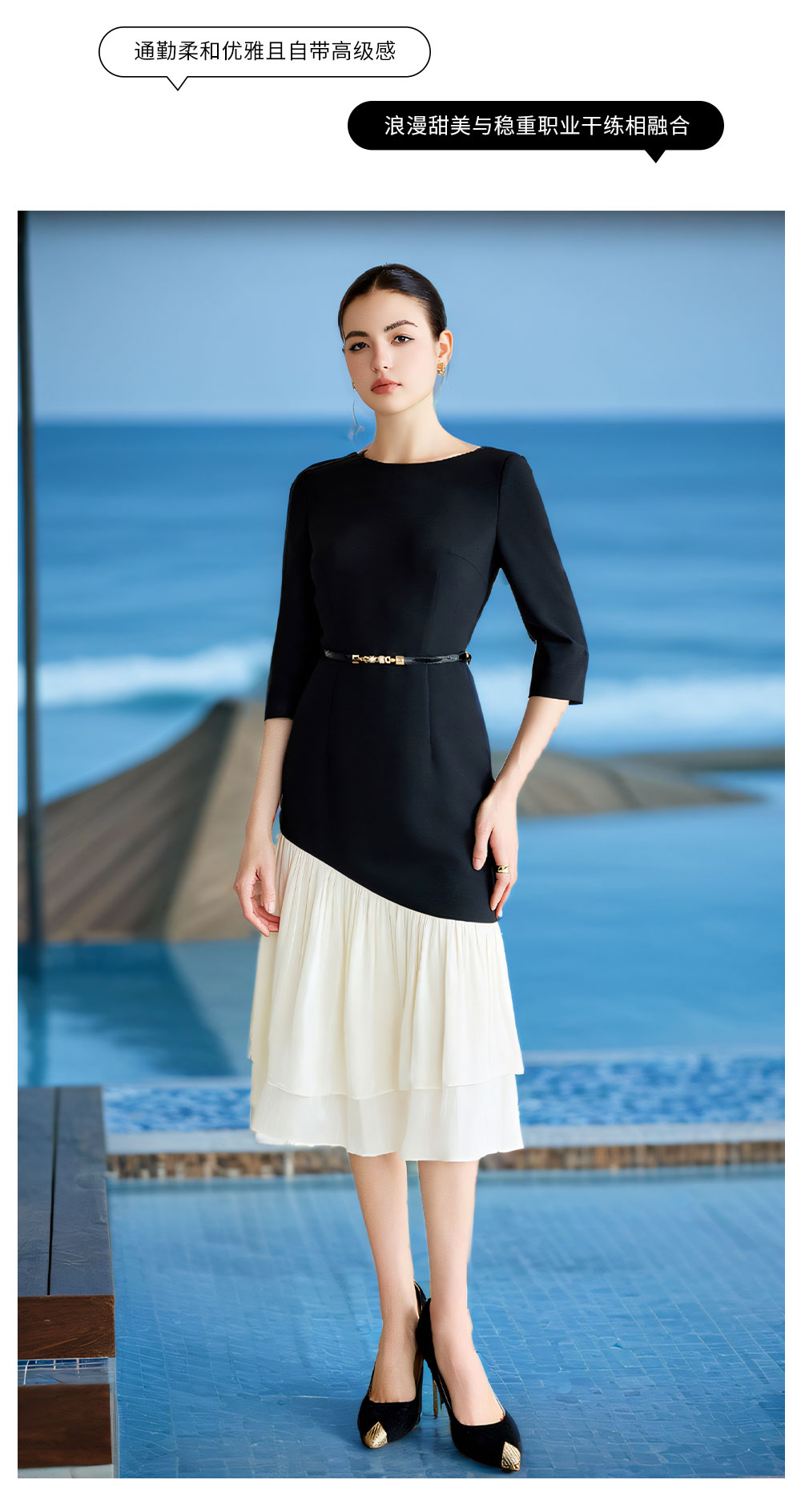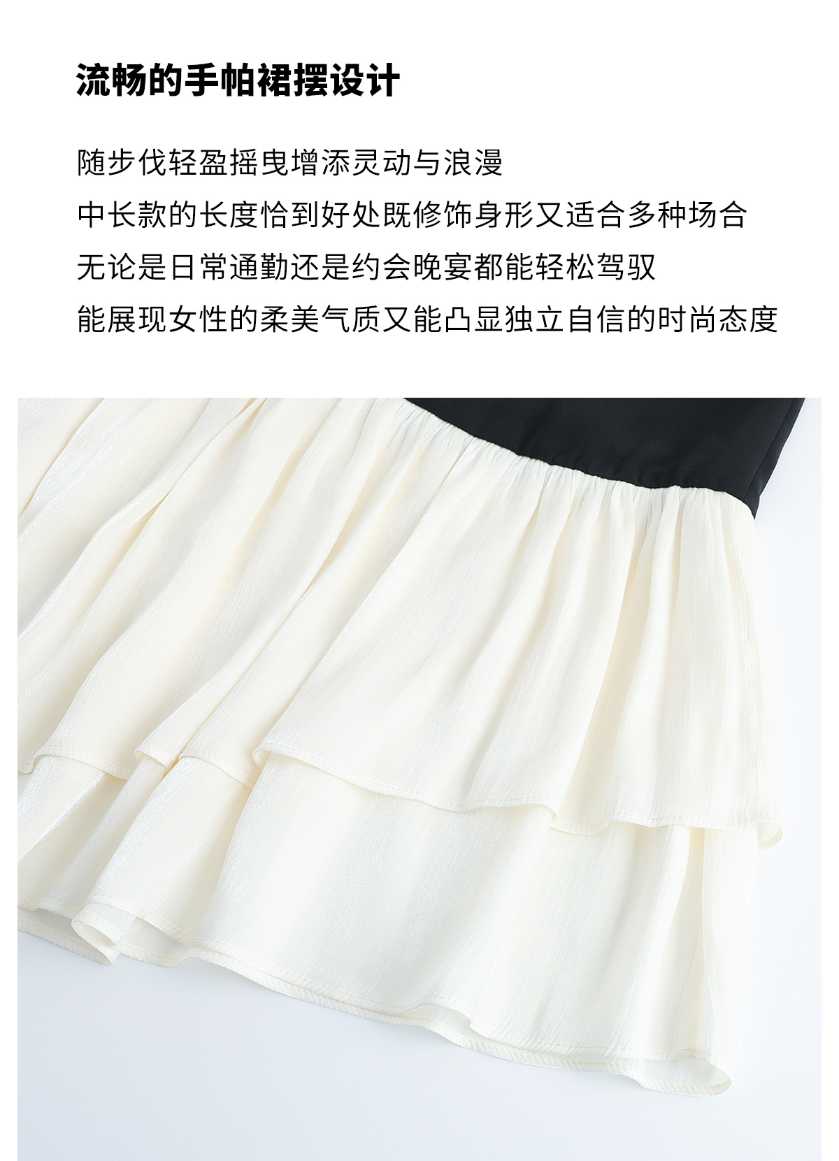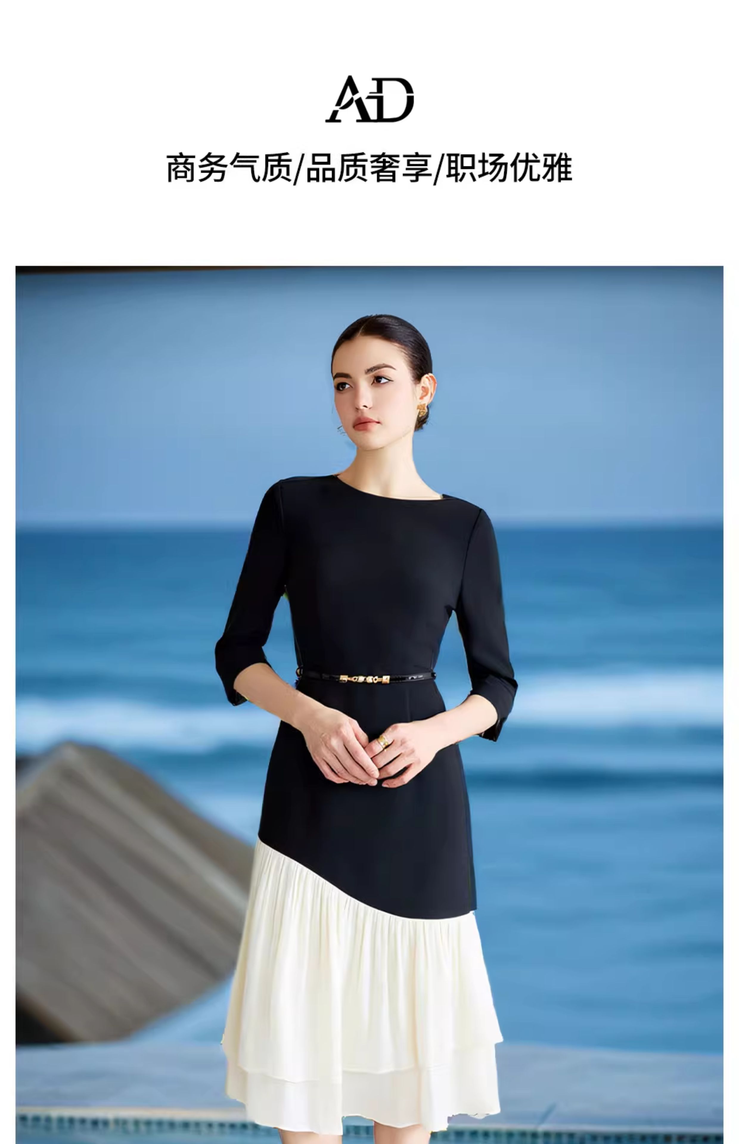 AD重要场合连衣裙秋季气质女神范职业西装裙接拼米白色荷叶边包裙