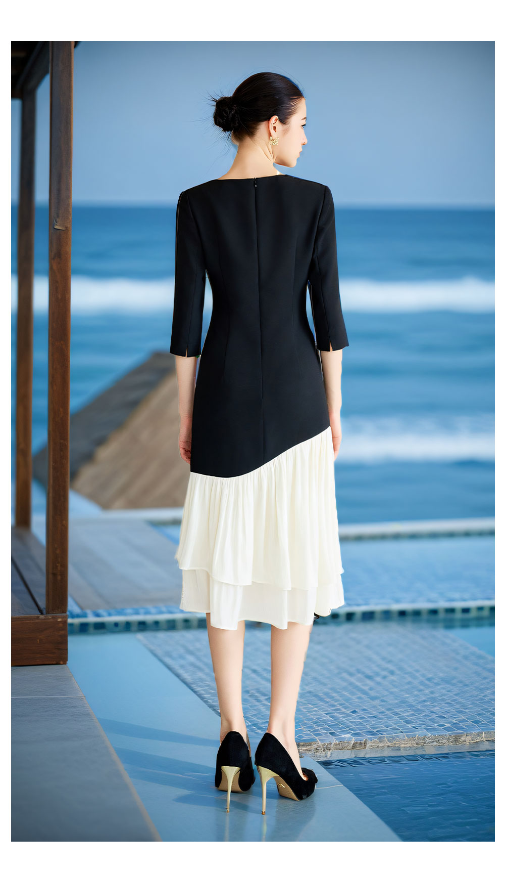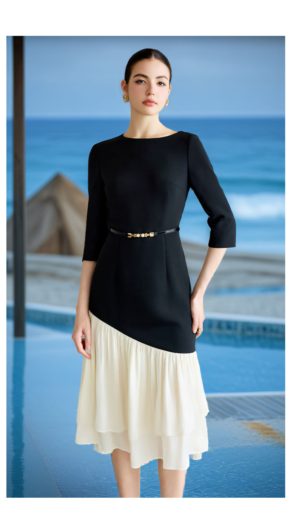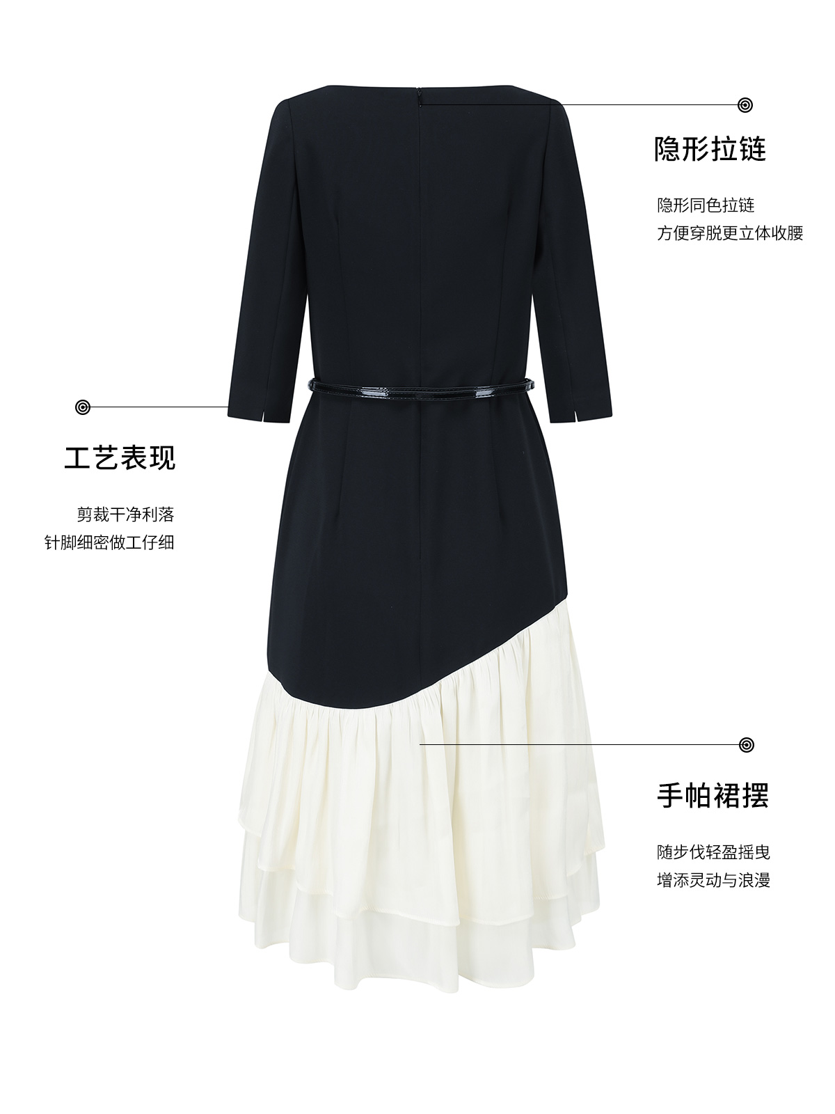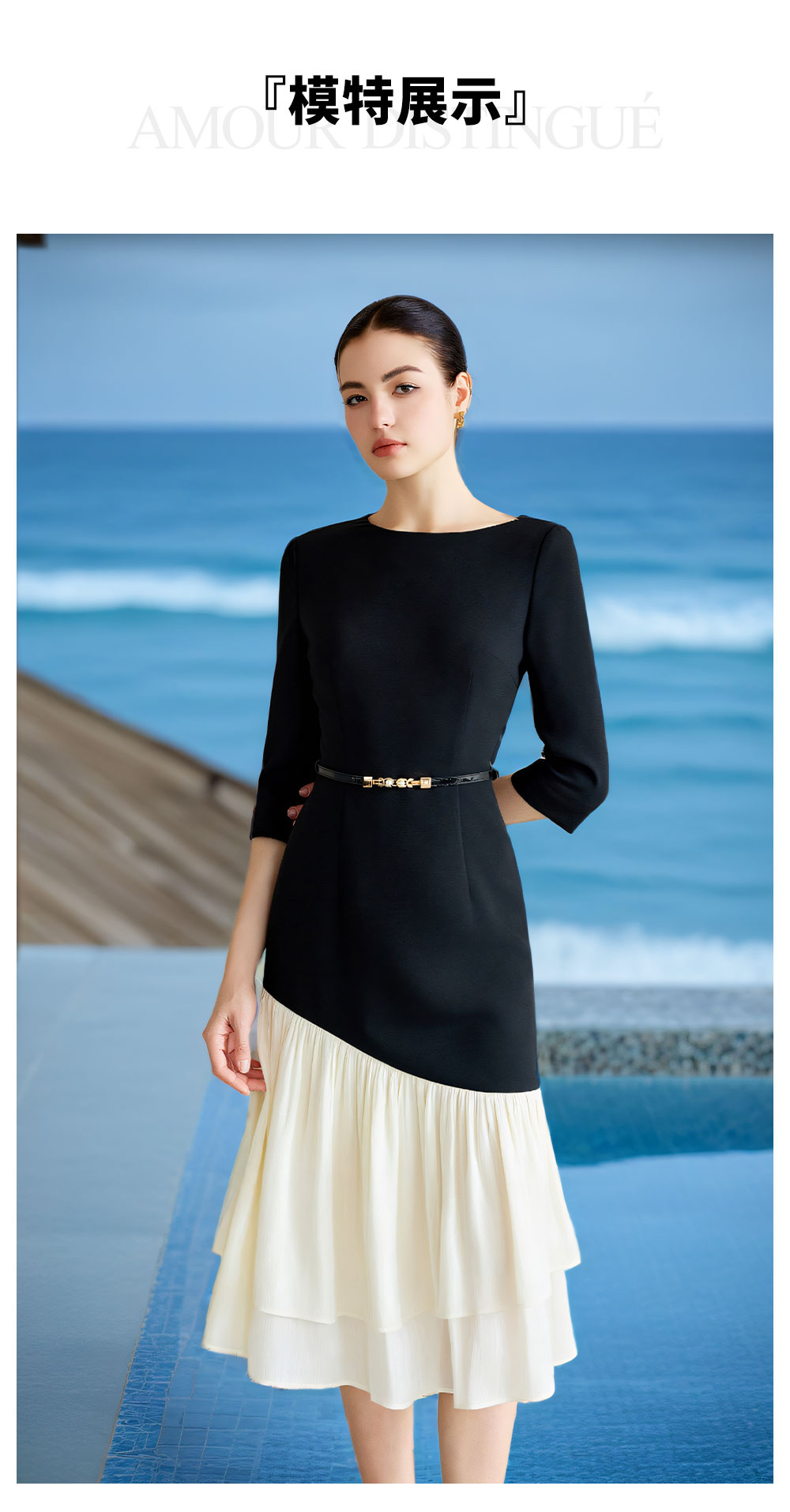 AD重要场合连衣裙秋季气质女神范职业西装裙接拼米白色荷叶边包裙