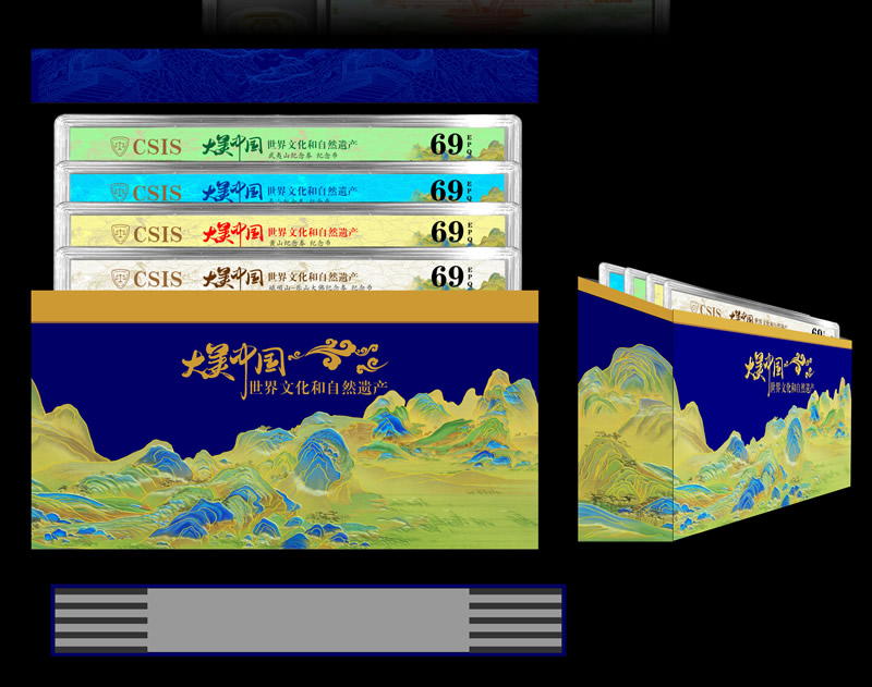 【预定】世界遗产系列四币四券大全套!泰山、武夷山、黄山、峨眉山纪念币+纪念券 评级封装版