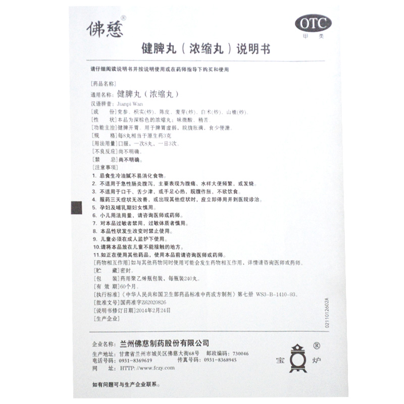 佛慈 健脾丸240丸/瓶脾虚脾胃虚寒消化不良口臭健脾开胃胃胀