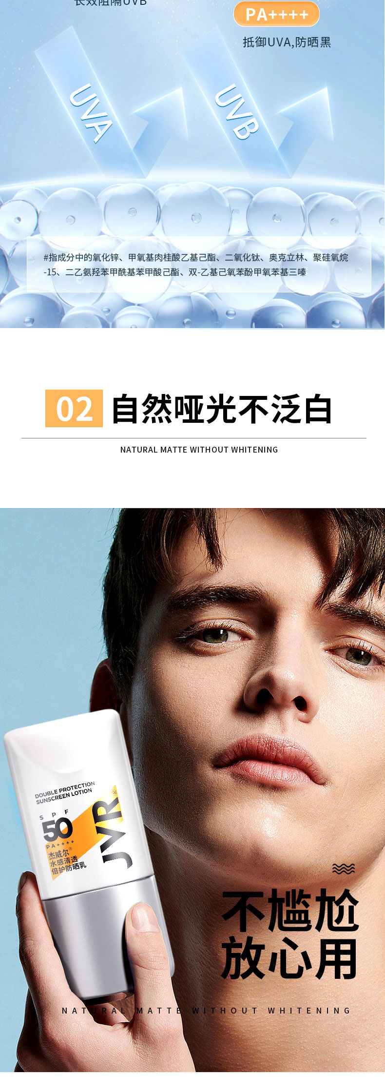 【全网低价秒杀】杰威尔夏季男士防晒乳霜面部隔离素颜霜户外钓鱼军训专用水感清透全身SPF50+