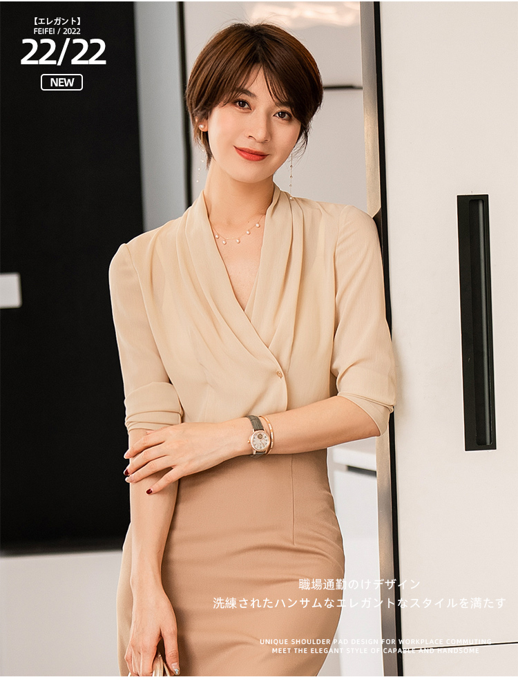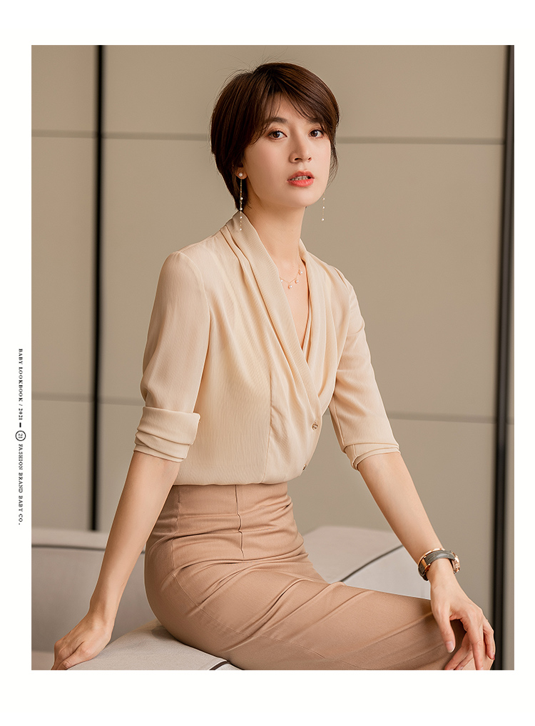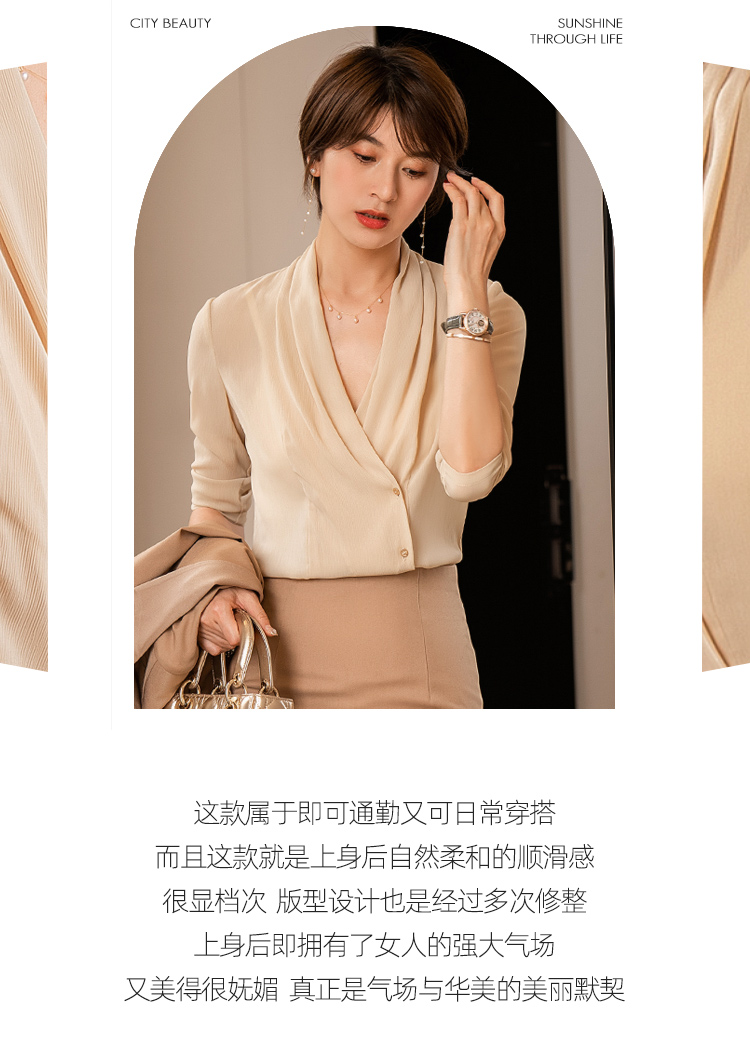 高级感别致衬衫V领设计感小众衬衣通勤职业上衣