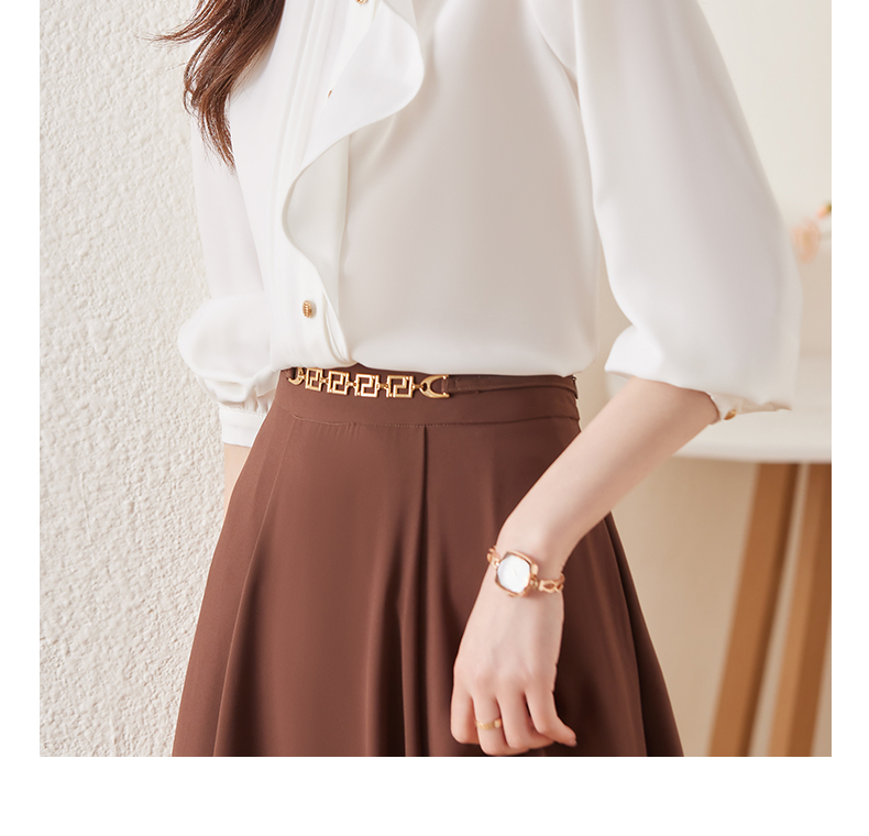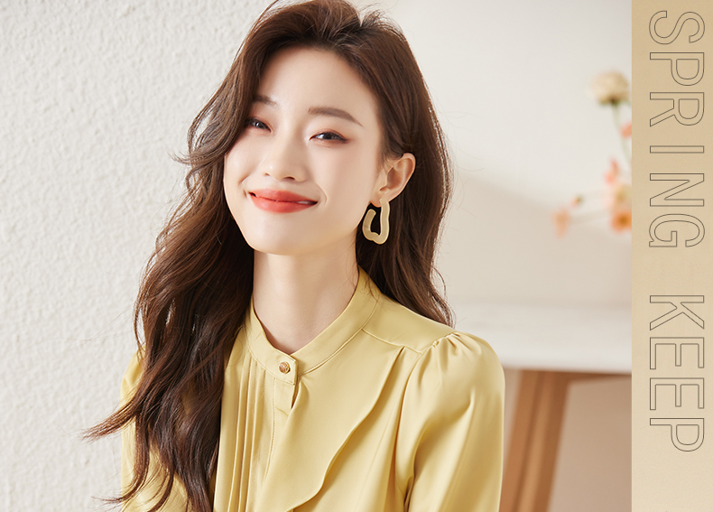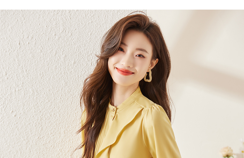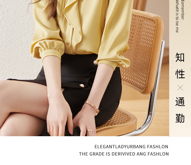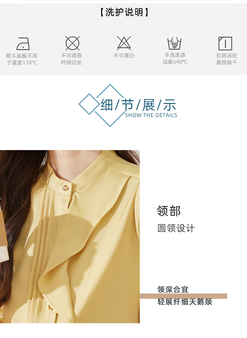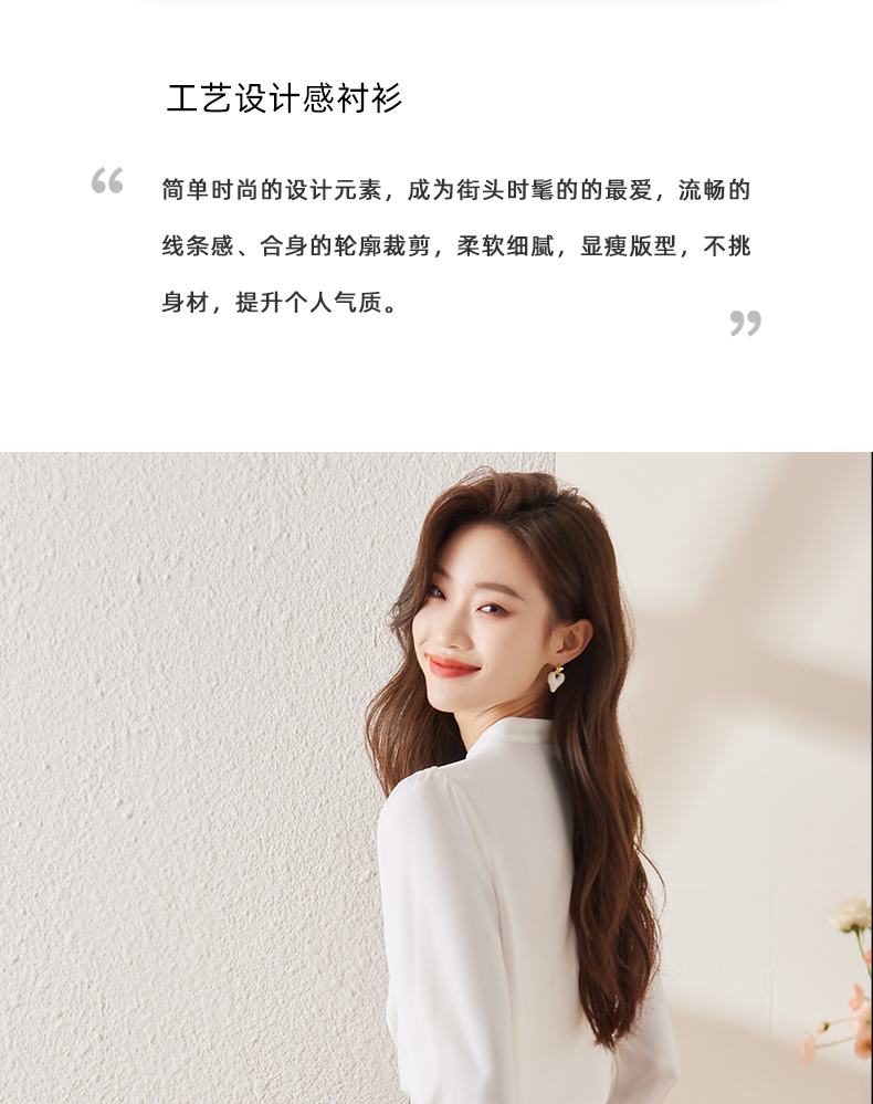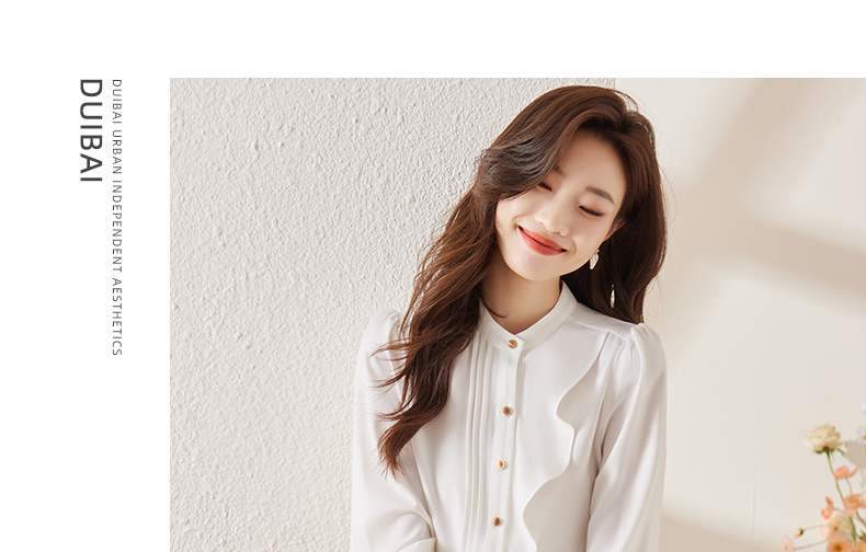 春款设计感荷叶边圆领上衣时尚洋气职业衬衫女