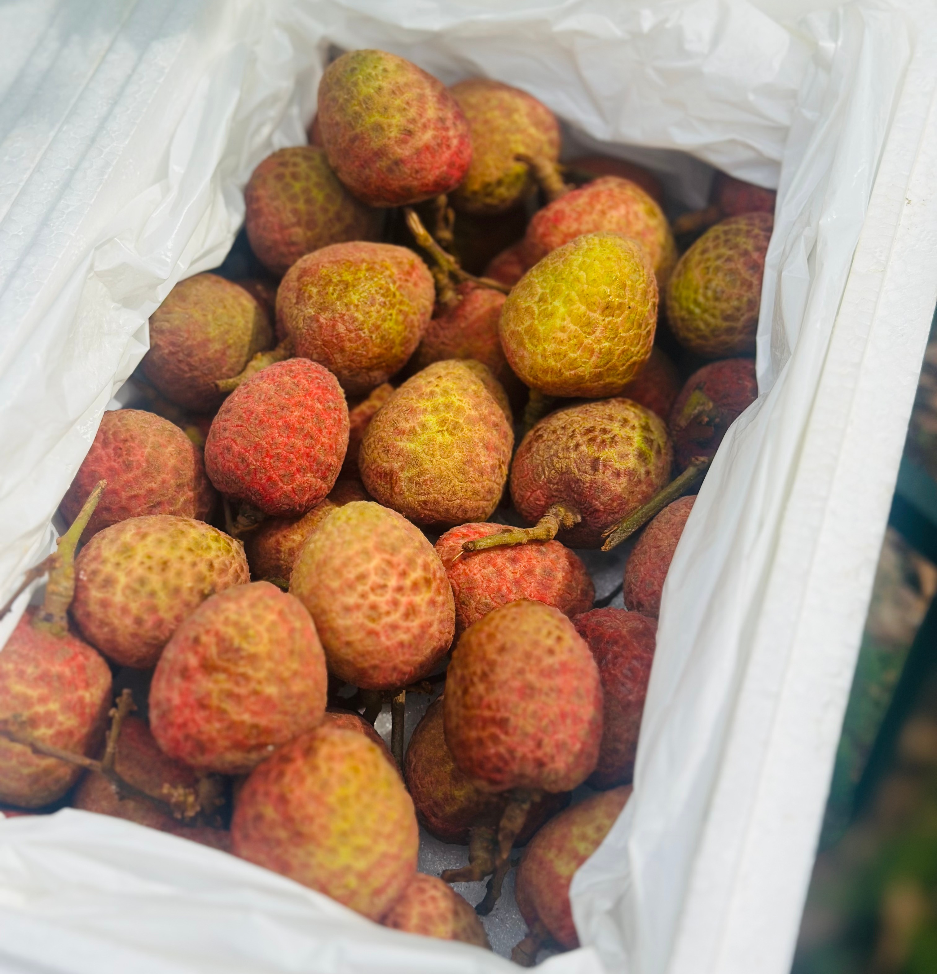 桂花香荔枝|今年的第一口桂花香荔枝来啦~新鲜荔枝刚下飞机,桂花香荔枝空运果子,头波儿果子主要新鲜,一颗颗干绷绷的,不泡水不带枝,清甜柔润,非常爆汁,水润润的吃得人舒心呐~