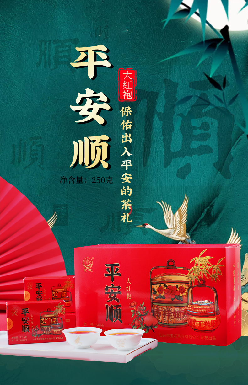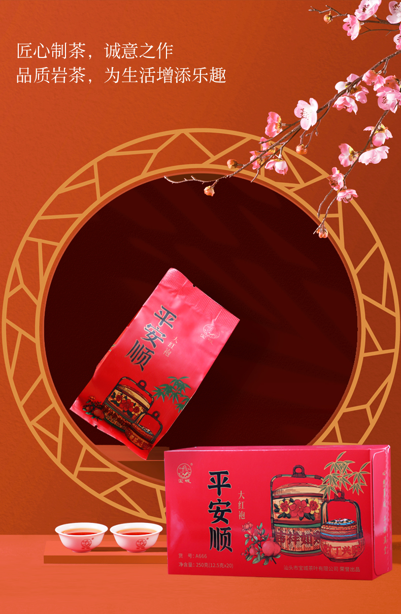 【新品上市,醇厚顺滑】宝城平安顺大红袍250克礼盒装A666