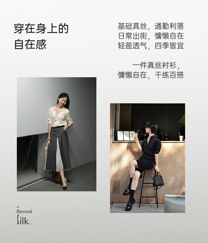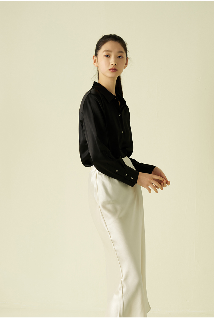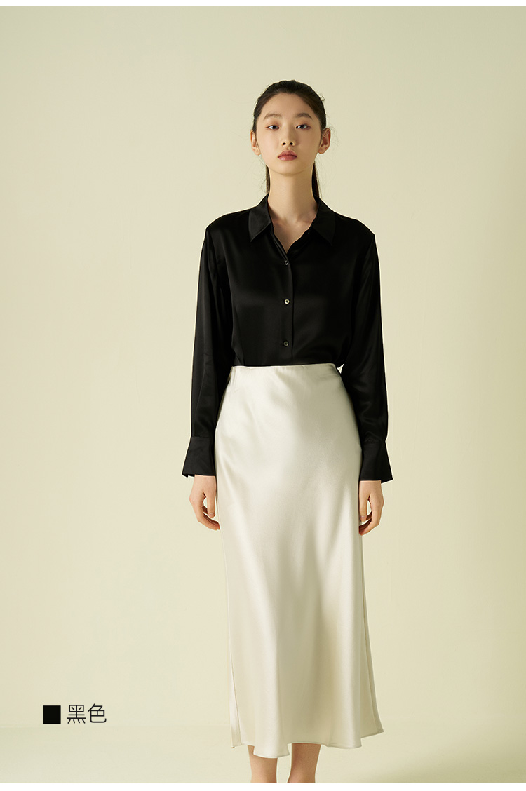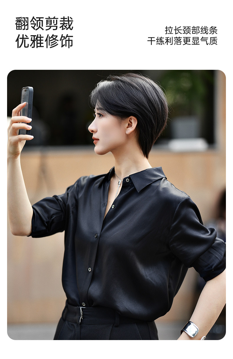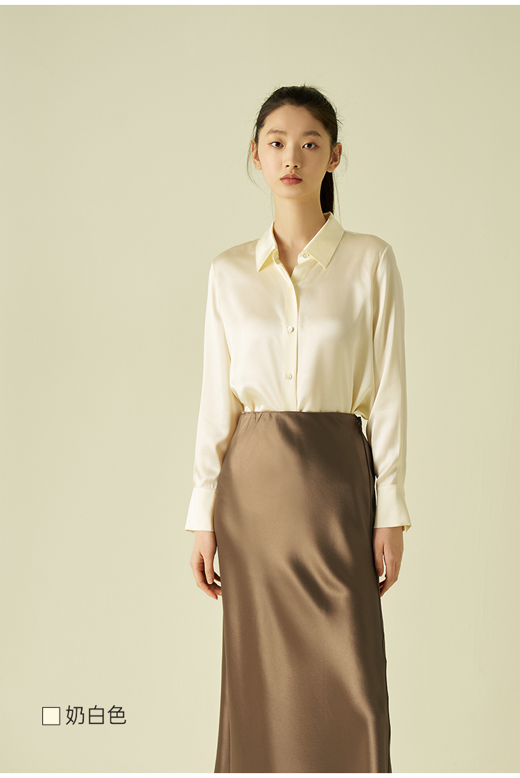 桑罗纯色衬衫女通勤职业简约百搭长袖上衣高级光泽感