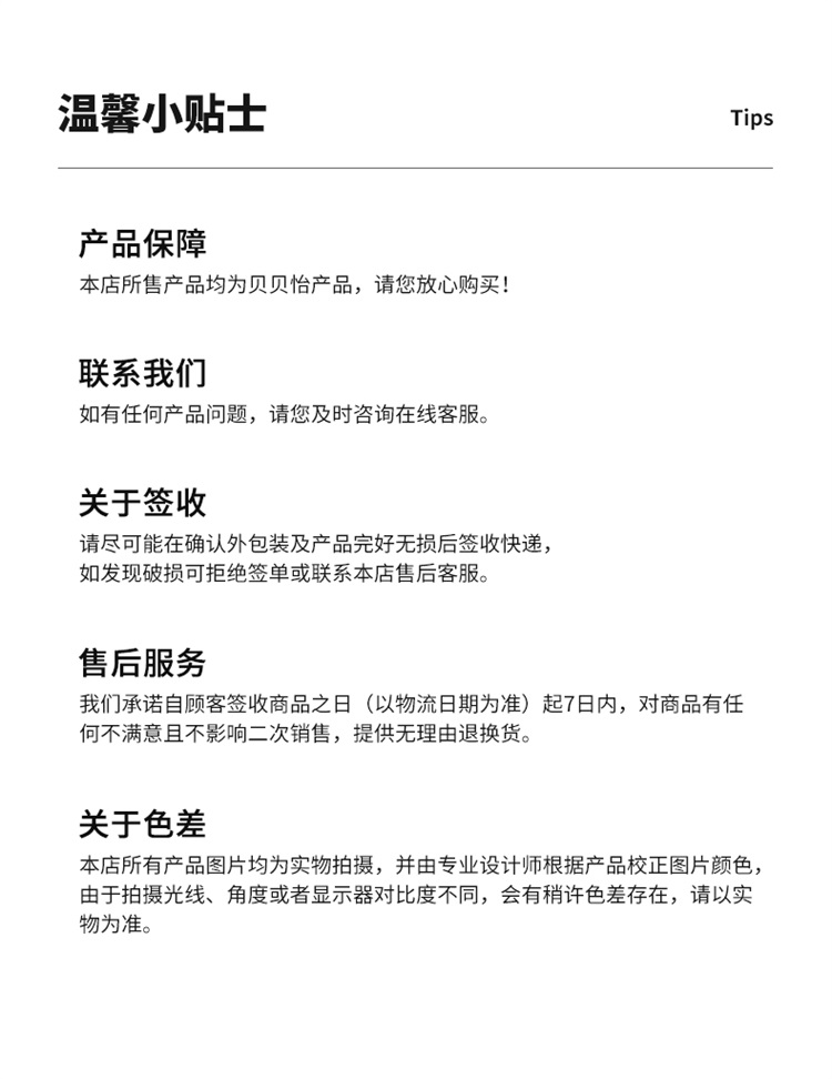 - 贝贝怡专注0-6岁婴幼儿服饰,坚持安全、柔软、舒适的产品理念,为千万中国家庭提供超高品质、安全可靠的婴幼儿服饰产品,妈妈放心,宝宝开心!
