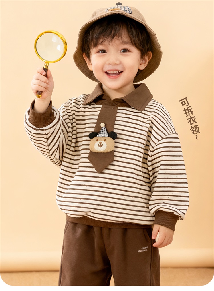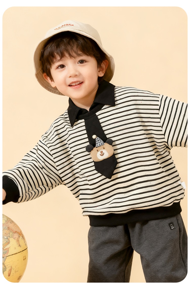 【小小绅士卫衣】秋冬新款加绒保暖套头卫衣男童运动休闲条纹上衣ZB3ES086