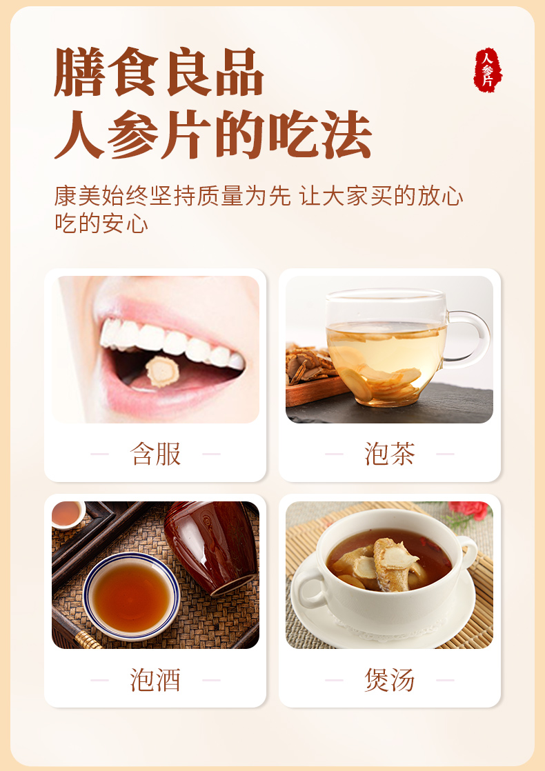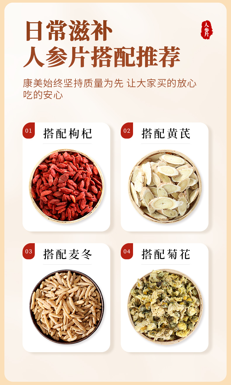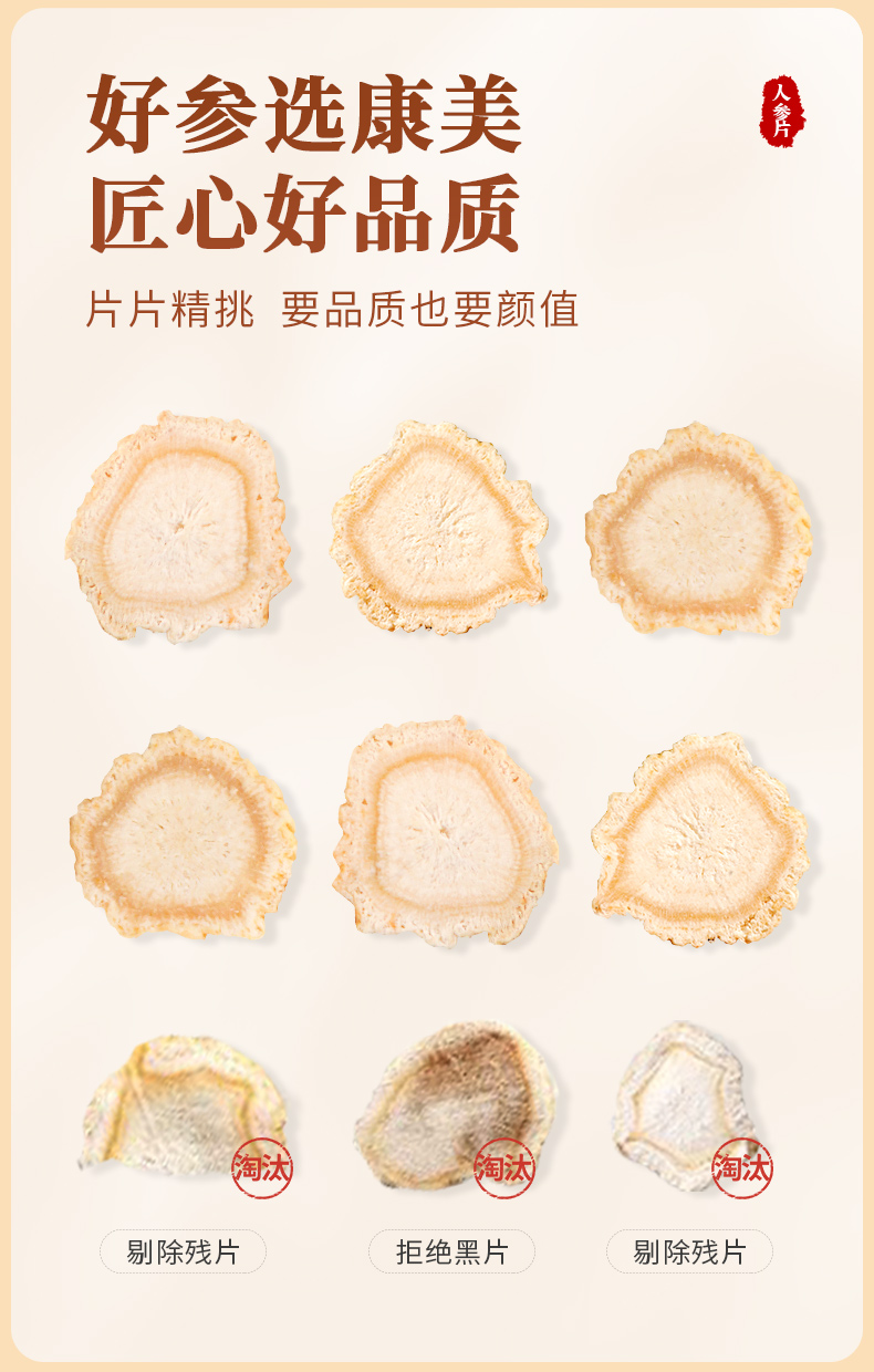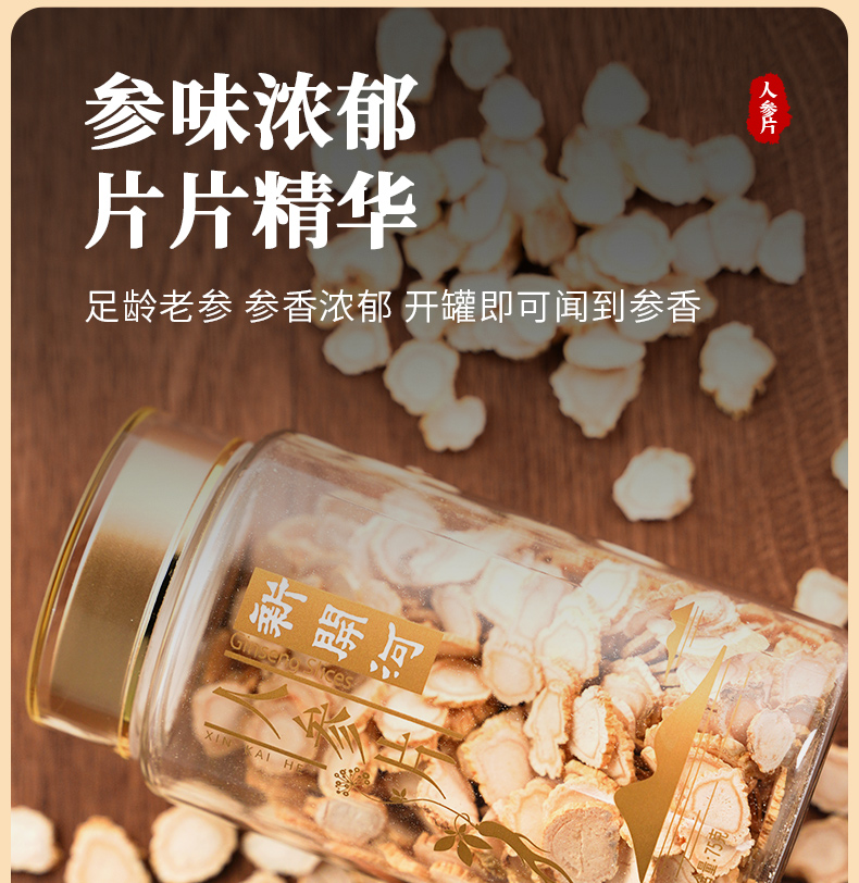 康美新开河人参片75g/瓶 吉林长白山人参片切片泡水泡茶煲汤养生礼