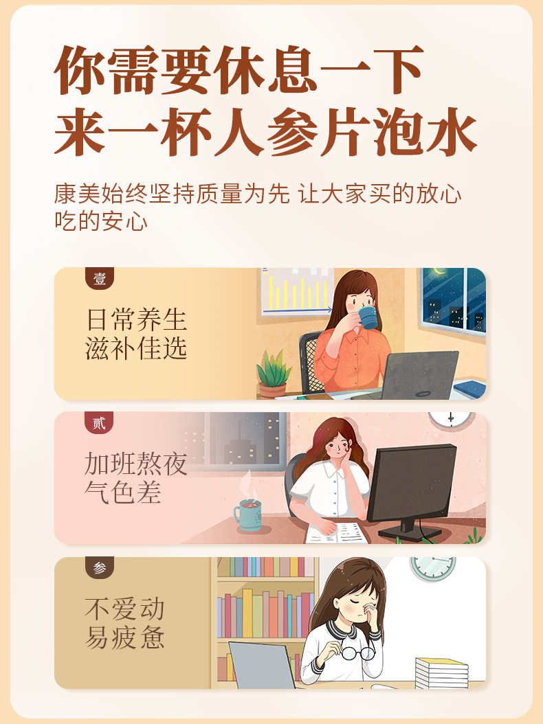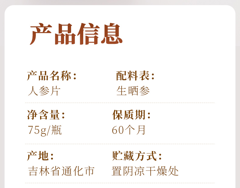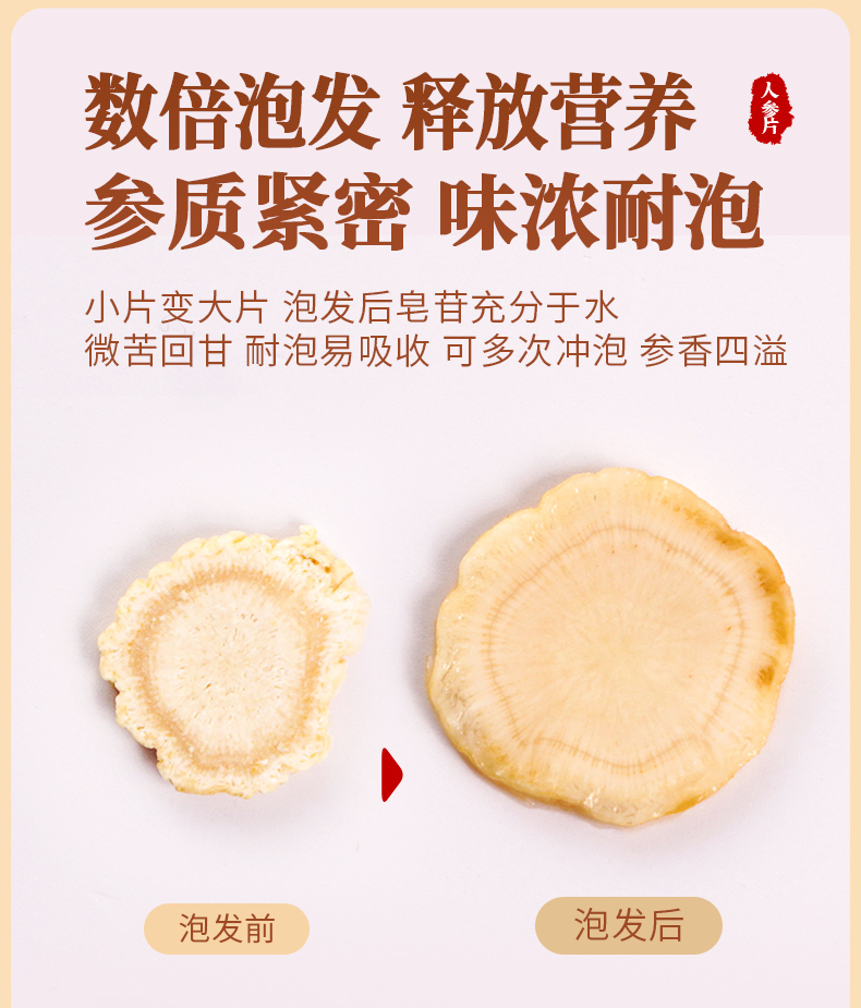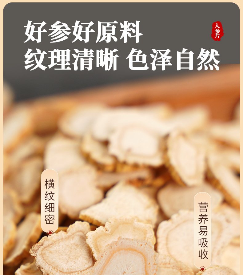 康美新开河人参片75g/瓶 吉林长白山人参片切片泡水泡茶煲汤养生礼