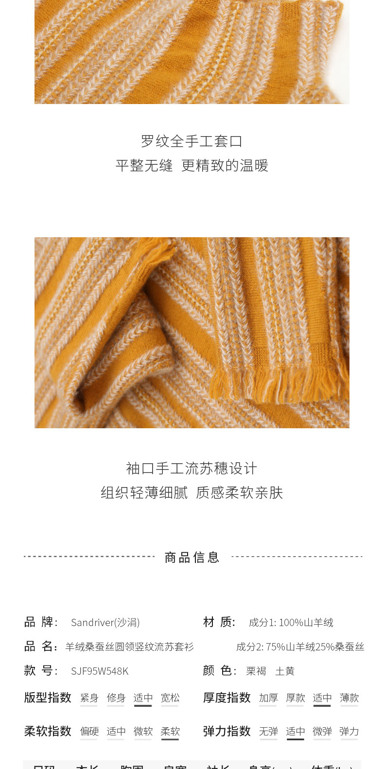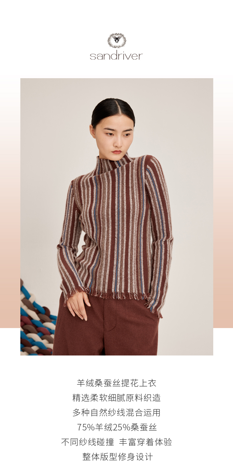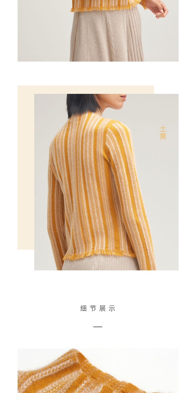 羊绒桑蚕丝圆领竖纹流苏套衫SJF95W548K