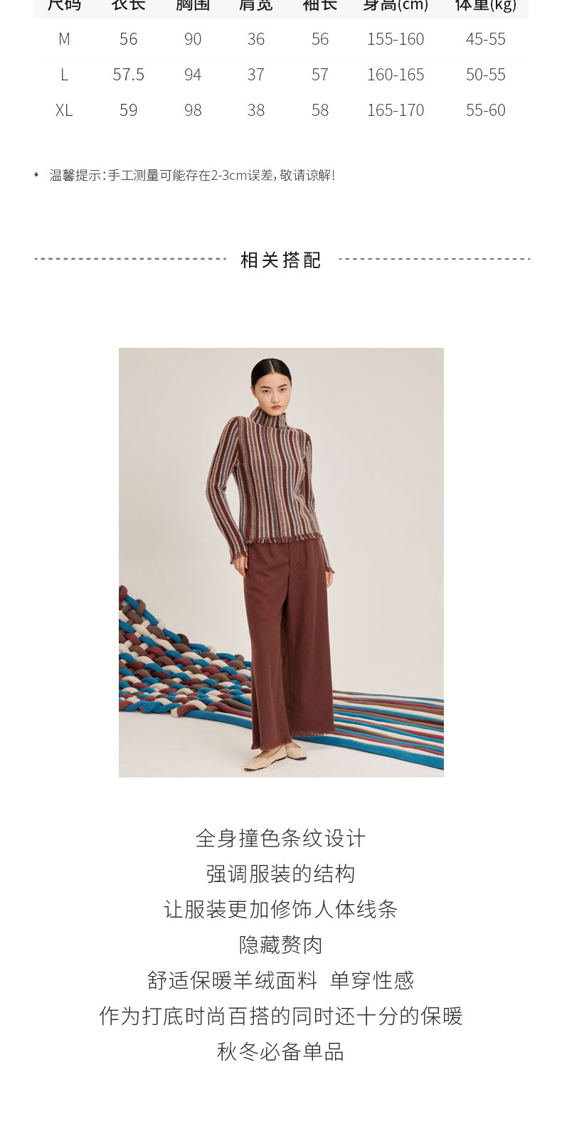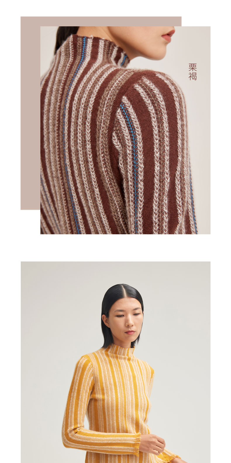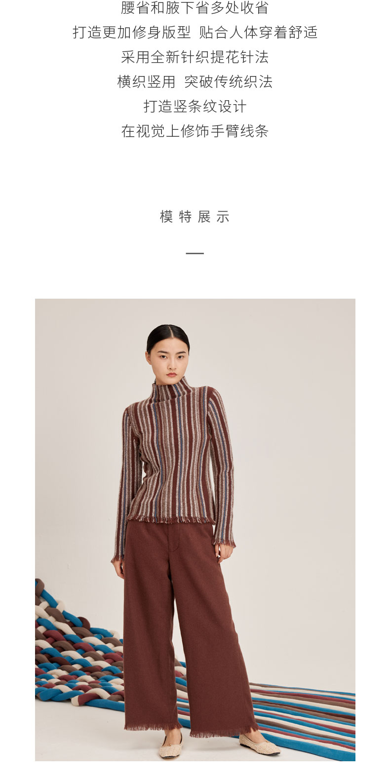 羊绒桑蚕丝圆领竖纹流苏套衫SJF95W548K