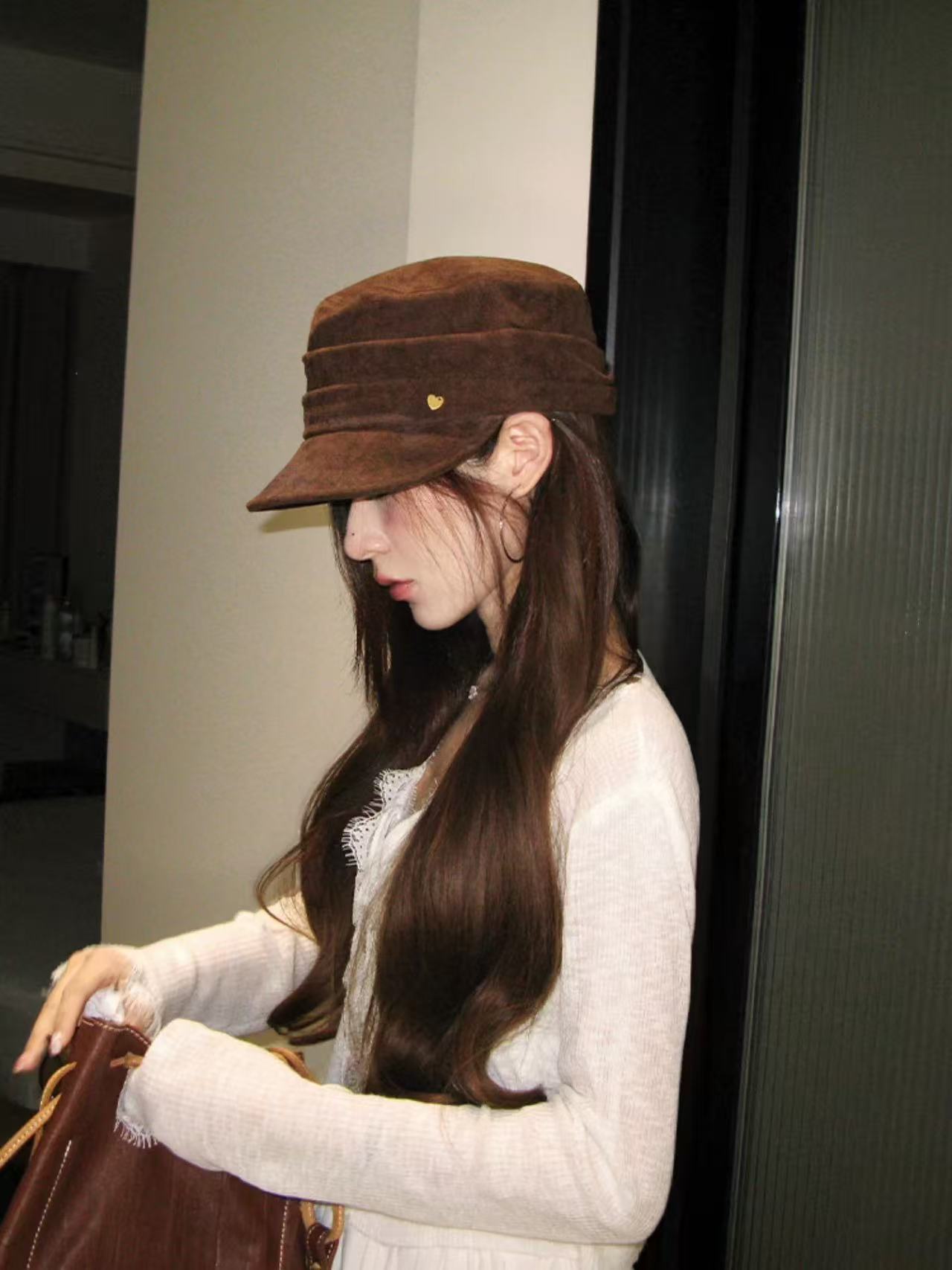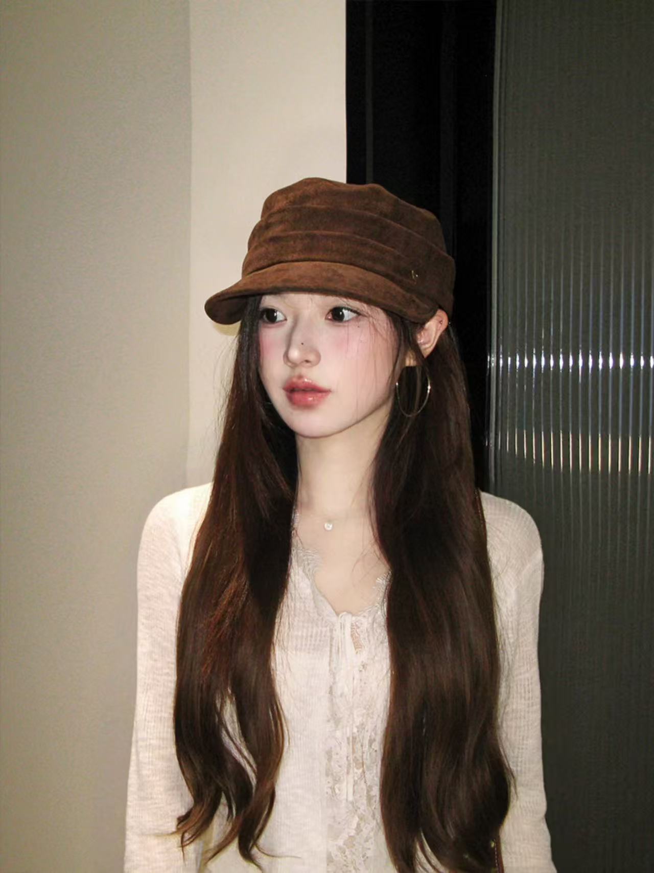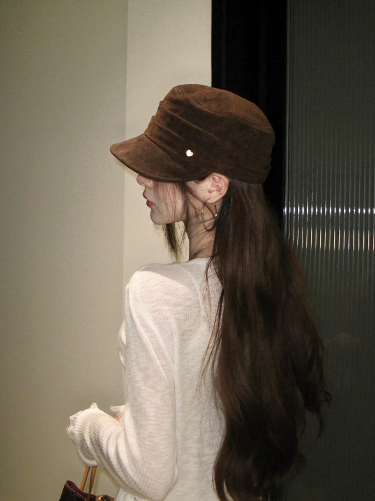【日系复古❗️麂皮绒平顶马术帽】氛围感拉满,追求设计与质感间的巧妙平衡,舒适自由调节,加宽柔软帽檐,方圆脸显脸小,2025秋冬新款个性女百搭显脸小画家帽报童帽QQ