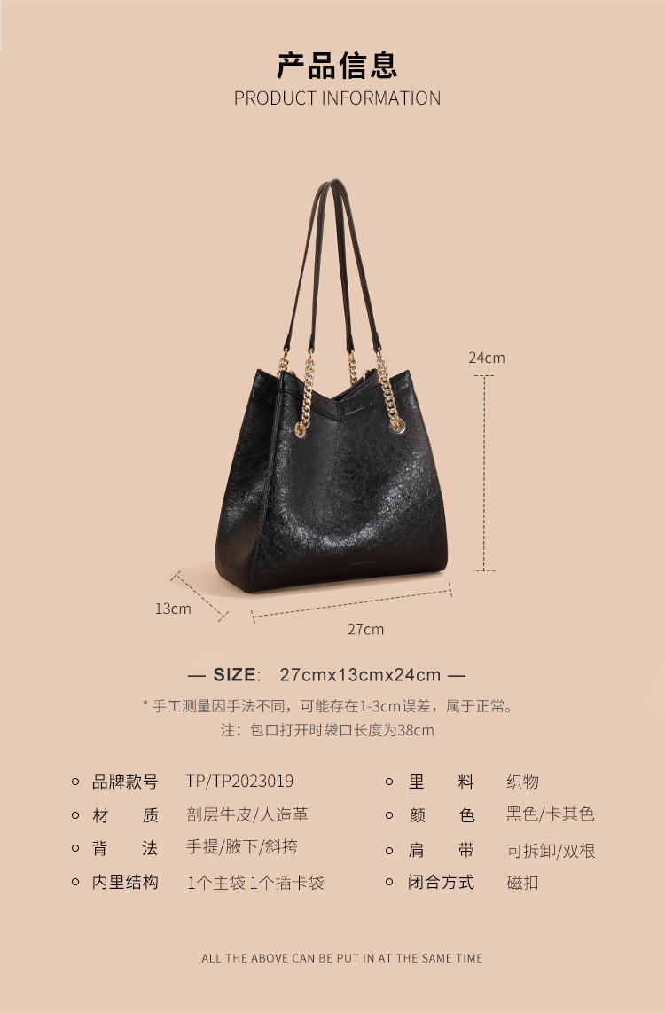 【预售3天】托特包通勤大容量水桶包高级感女士小众质感黑色包包单肩包腋下包TP2023019