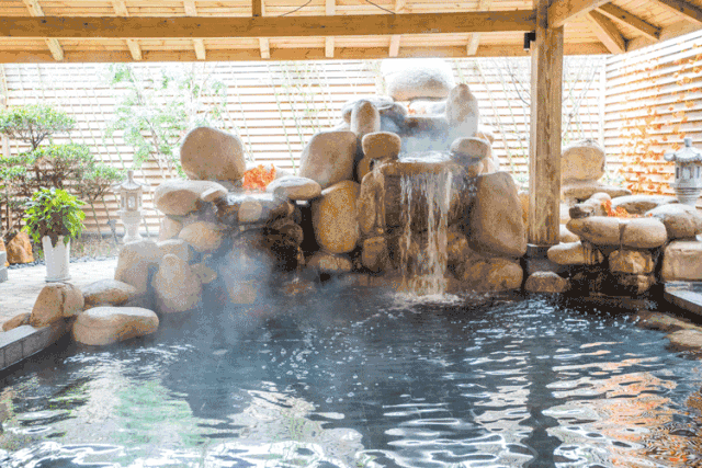 晚上体验舒适的温泉
