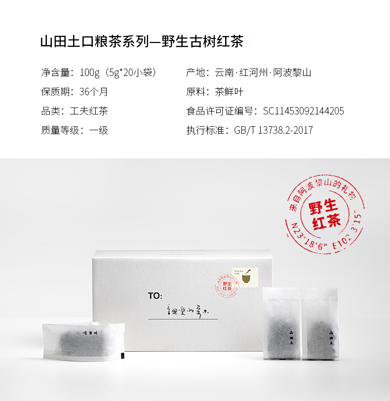 山田土 阿波黎山千年野生古树滇红 明前春茶云南红茶茶包口粮茶(未烘焙款)