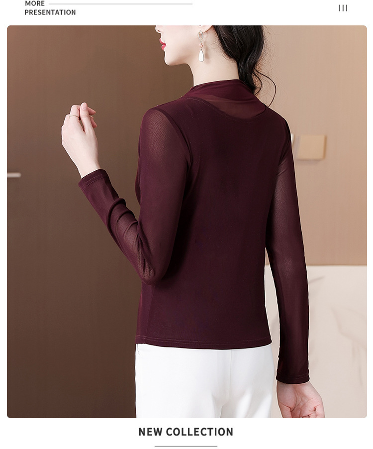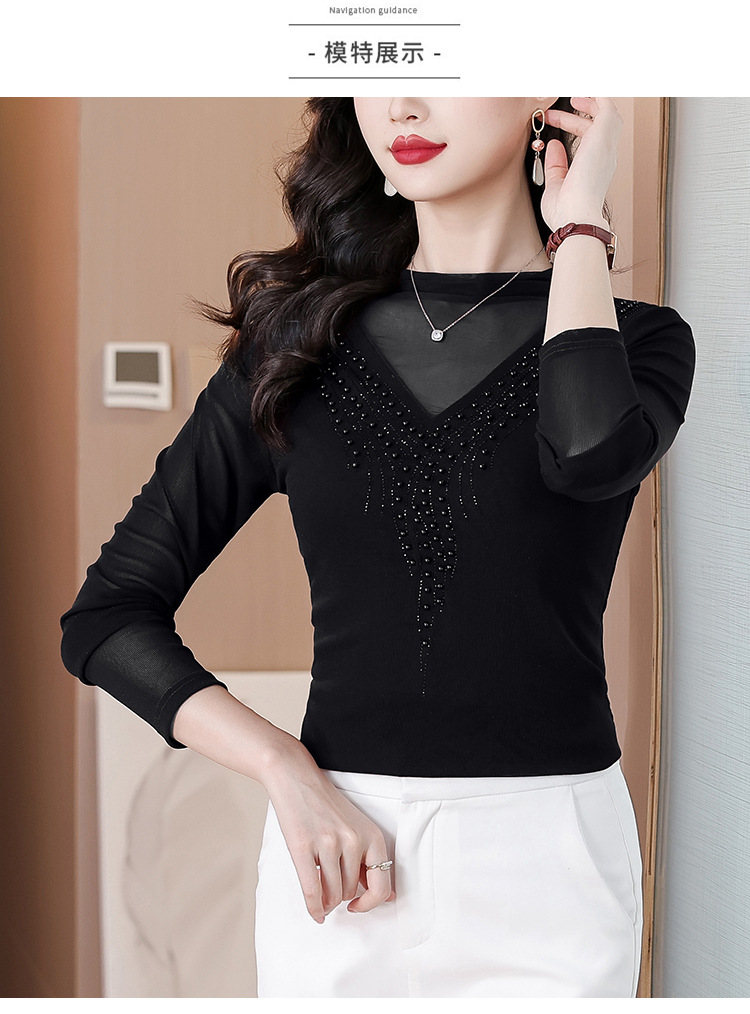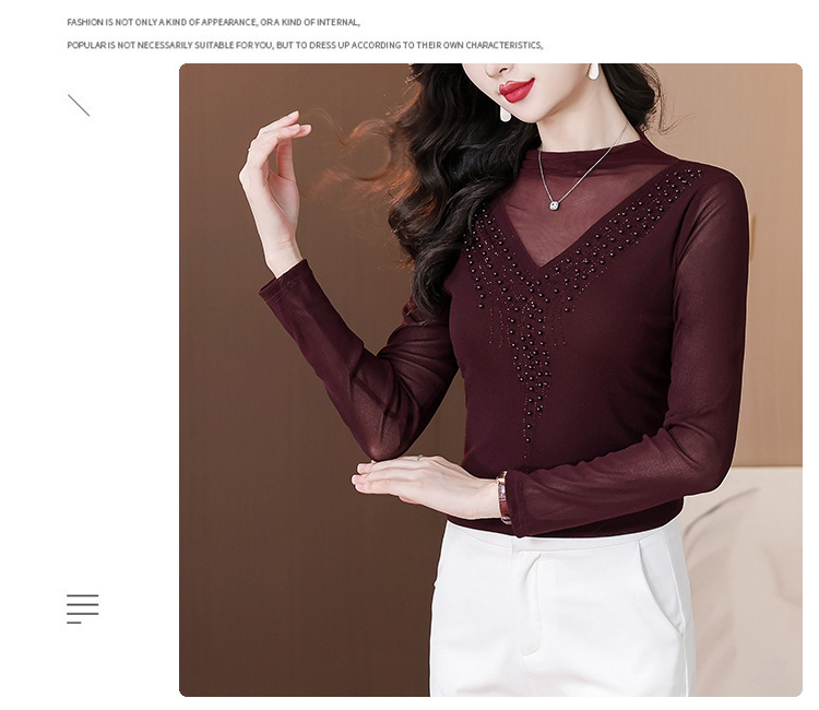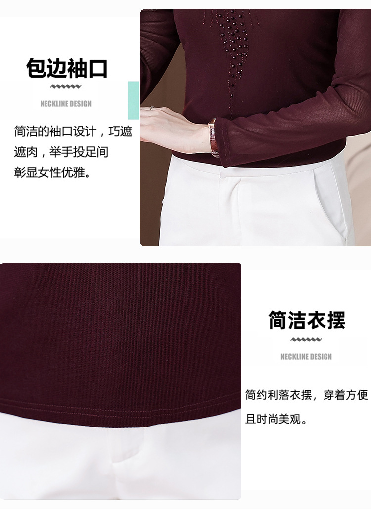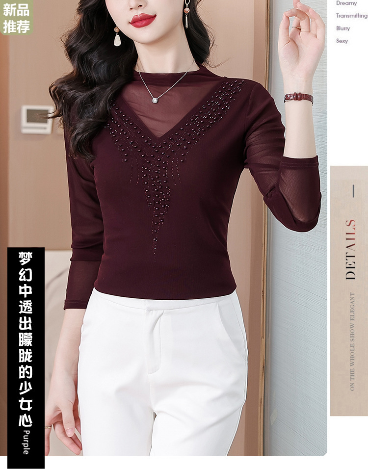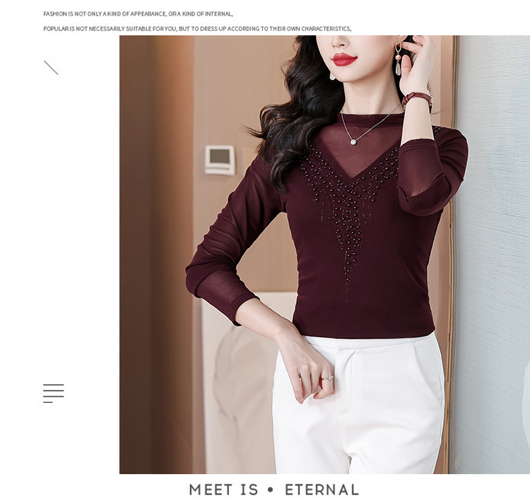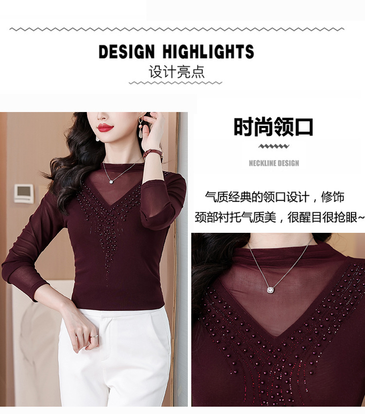 KQL D36M8318网纱烫钻气质洋气妈妈装显瘦长袖上衣