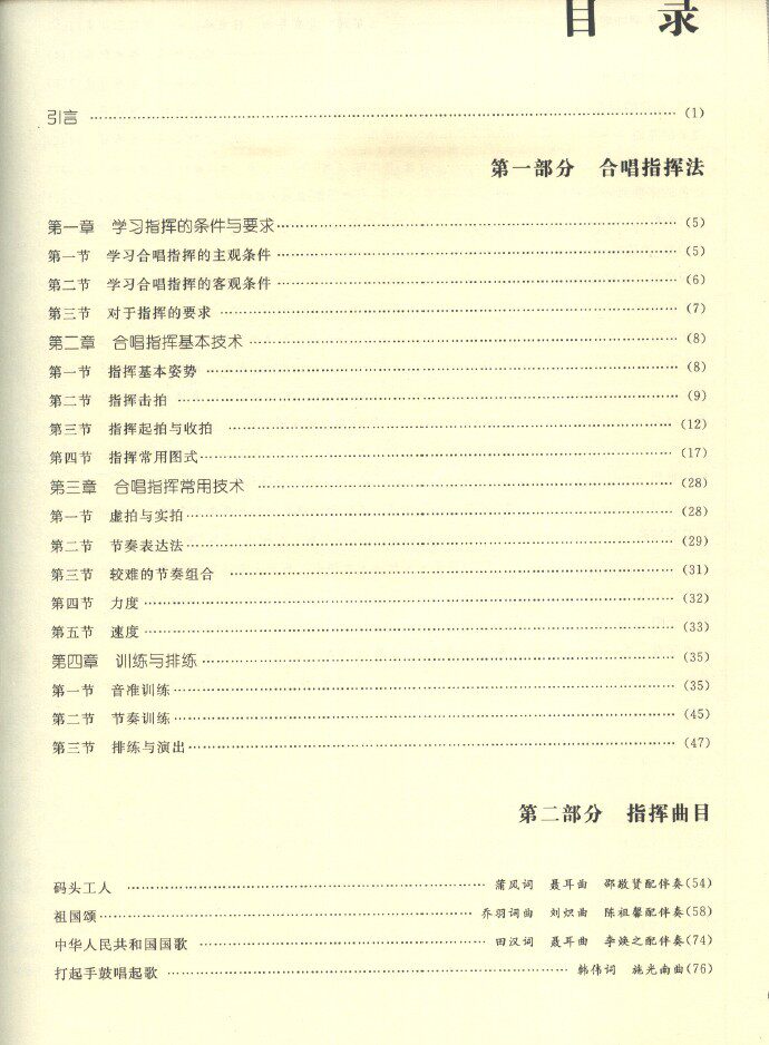 本书首先在引言中简要介绍了指挥的历史。然后进入第一部分合唱指挥法,以准确、简练的文字,条理清晰地介绍了合唱指挥者应具备的基本素质,基本知识及技术,以及怎样训练合唱及排练演出等知识。每章节后还附有思考题及练习题。第二部分即指挥曲目部分,精选了一批中外经典合唱曲目,如《码头工人》《海韵》《悄悄地,悄悄地》《金黄色的云朵过夜了》《回忆》等,以供练习。