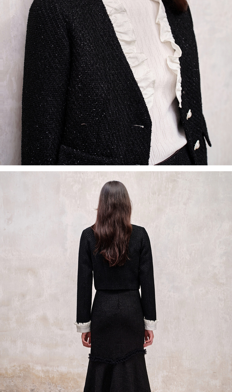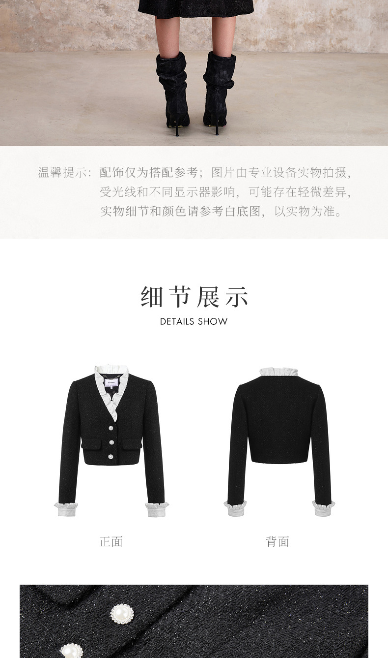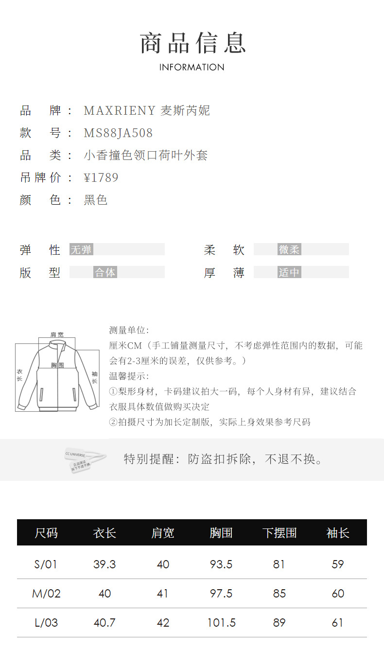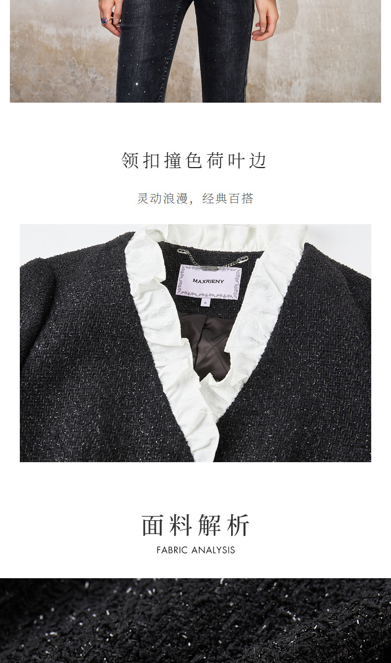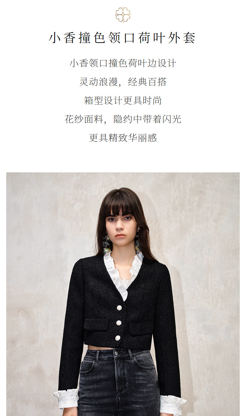 MAXRIENY*复古小香风撞色领口荷叶外套高级(货号:MS88JA508)