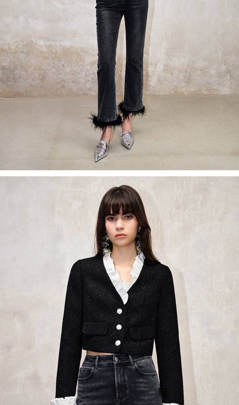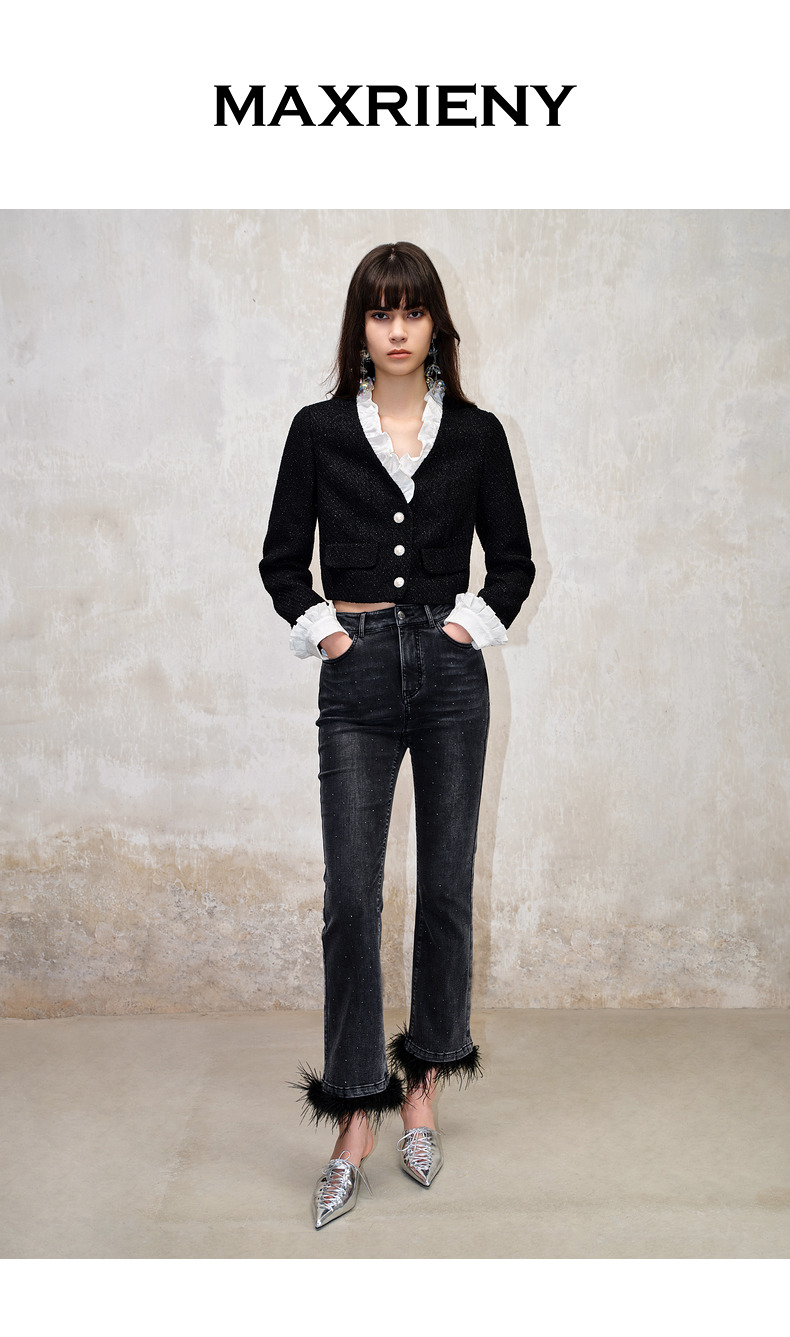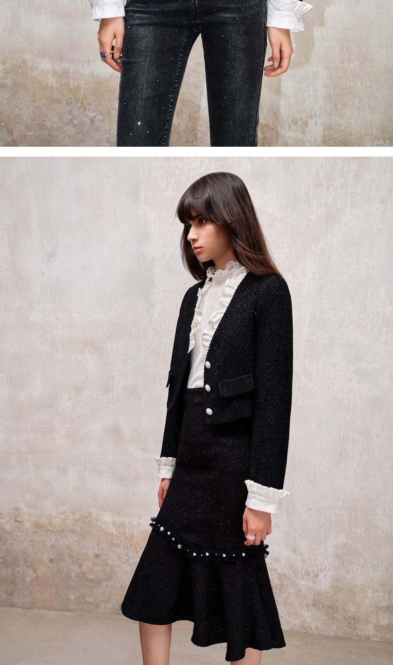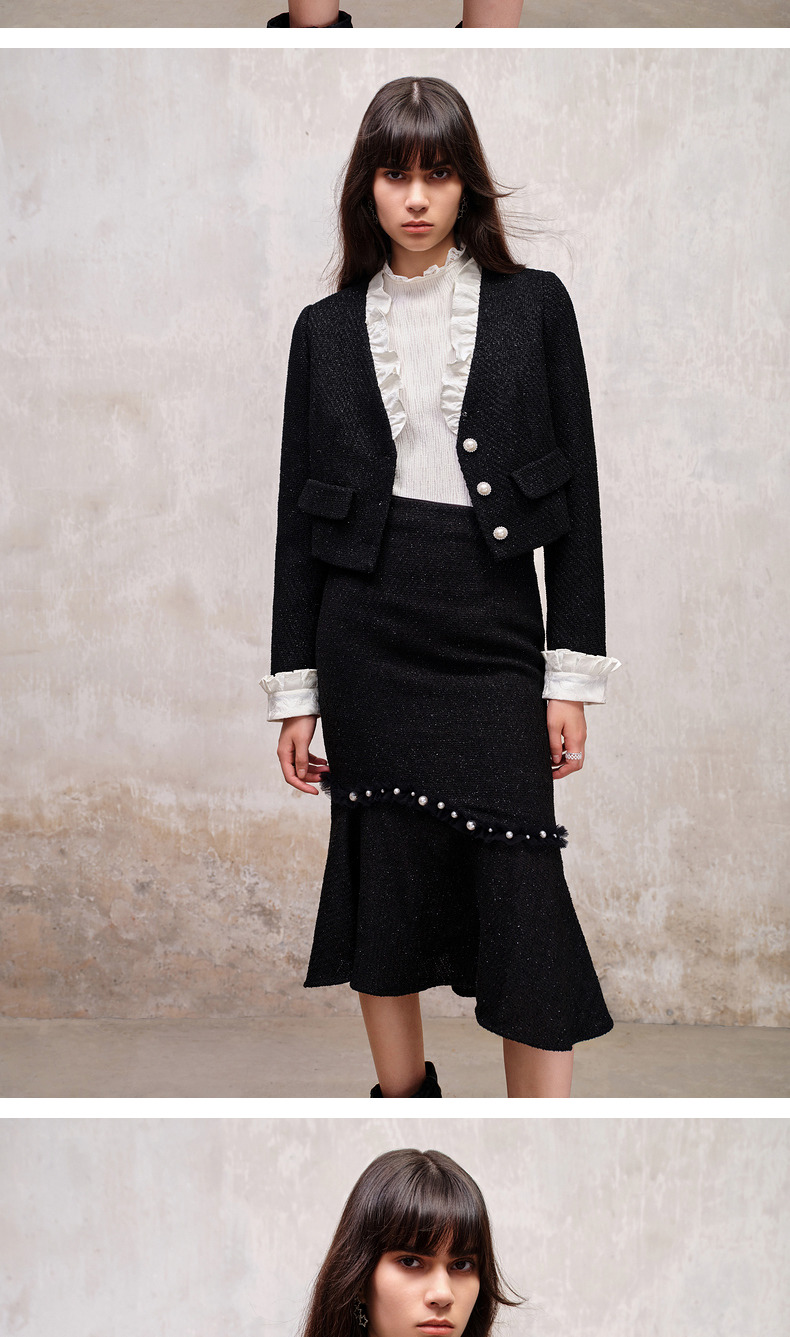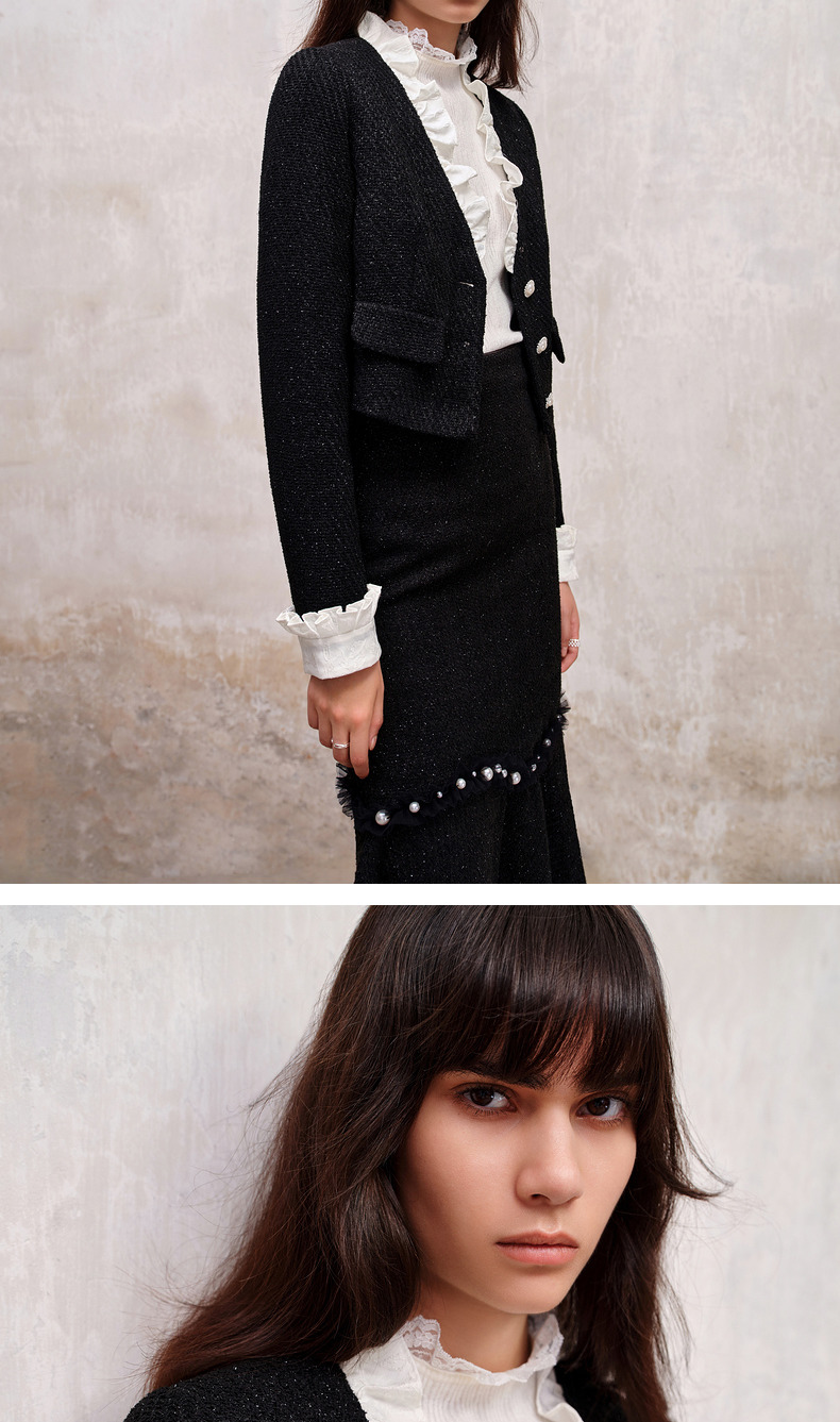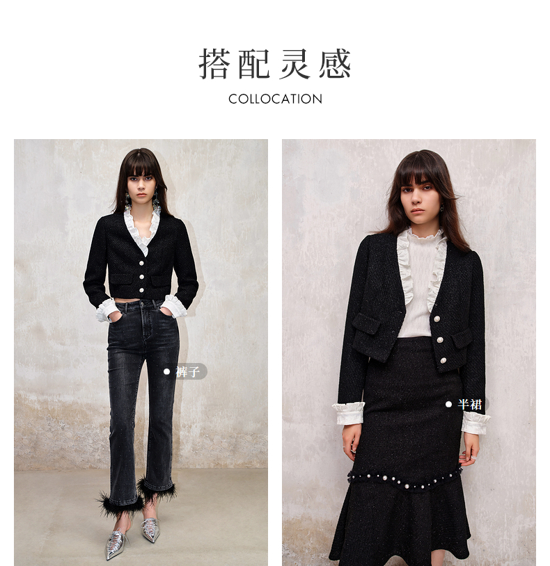 MAXRIENY*复古小香风撞色领口荷叶外套高级(货号:MS88JA508)