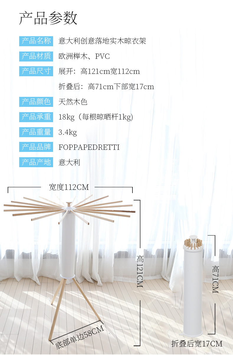 【利快】利快落地章鱼形晾衣架意大利进口FOPPA纵向可折叠木质伸缩晒衣架