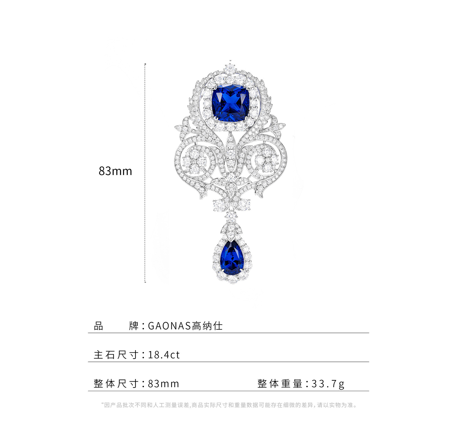 GAONAS 中古枭鹰 古典臻丽优雅蓝色胸针11074ZB