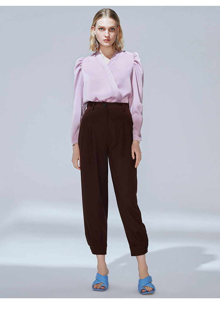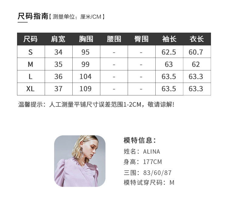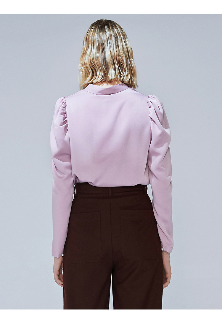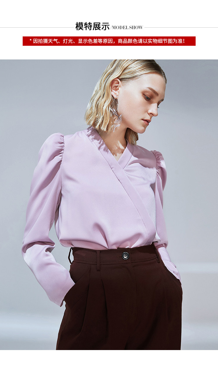 VIMAGE纬漫纪秋季新款时尚复古泡泡袖斜襟V领直筒显瘦上衣女V1413010
