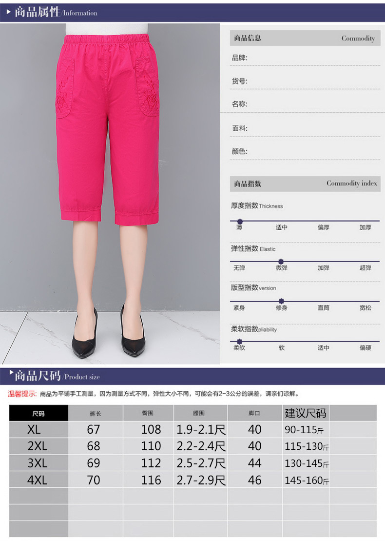 MQ-SF-K306夏季新款松紧高腰纯棉大码七分裤YY