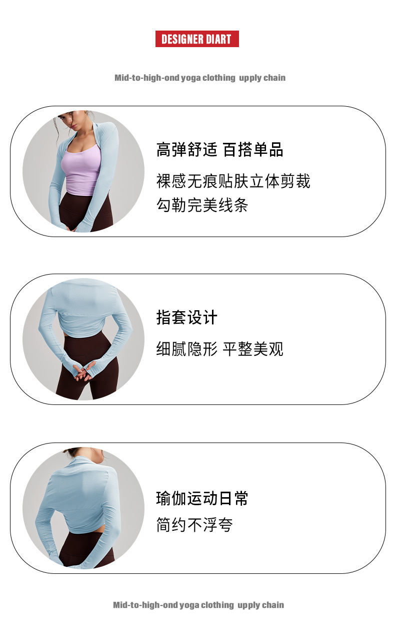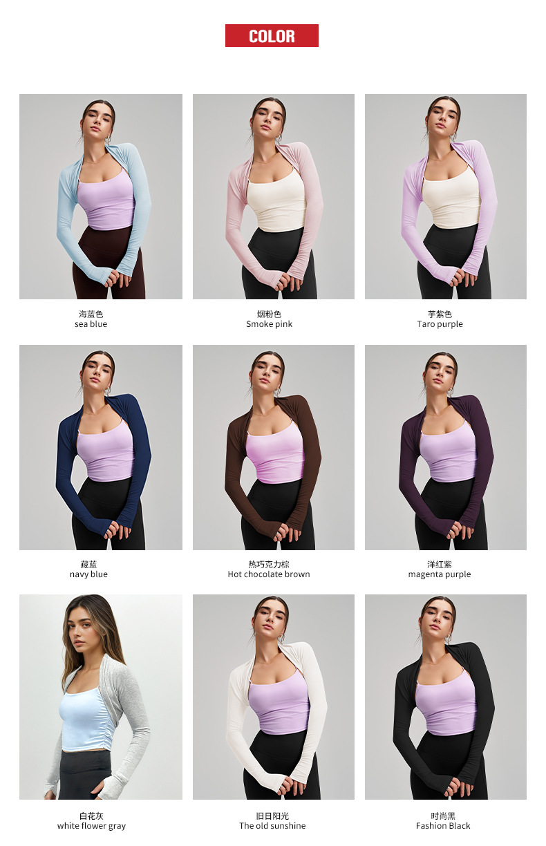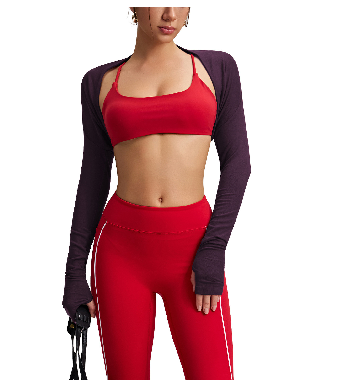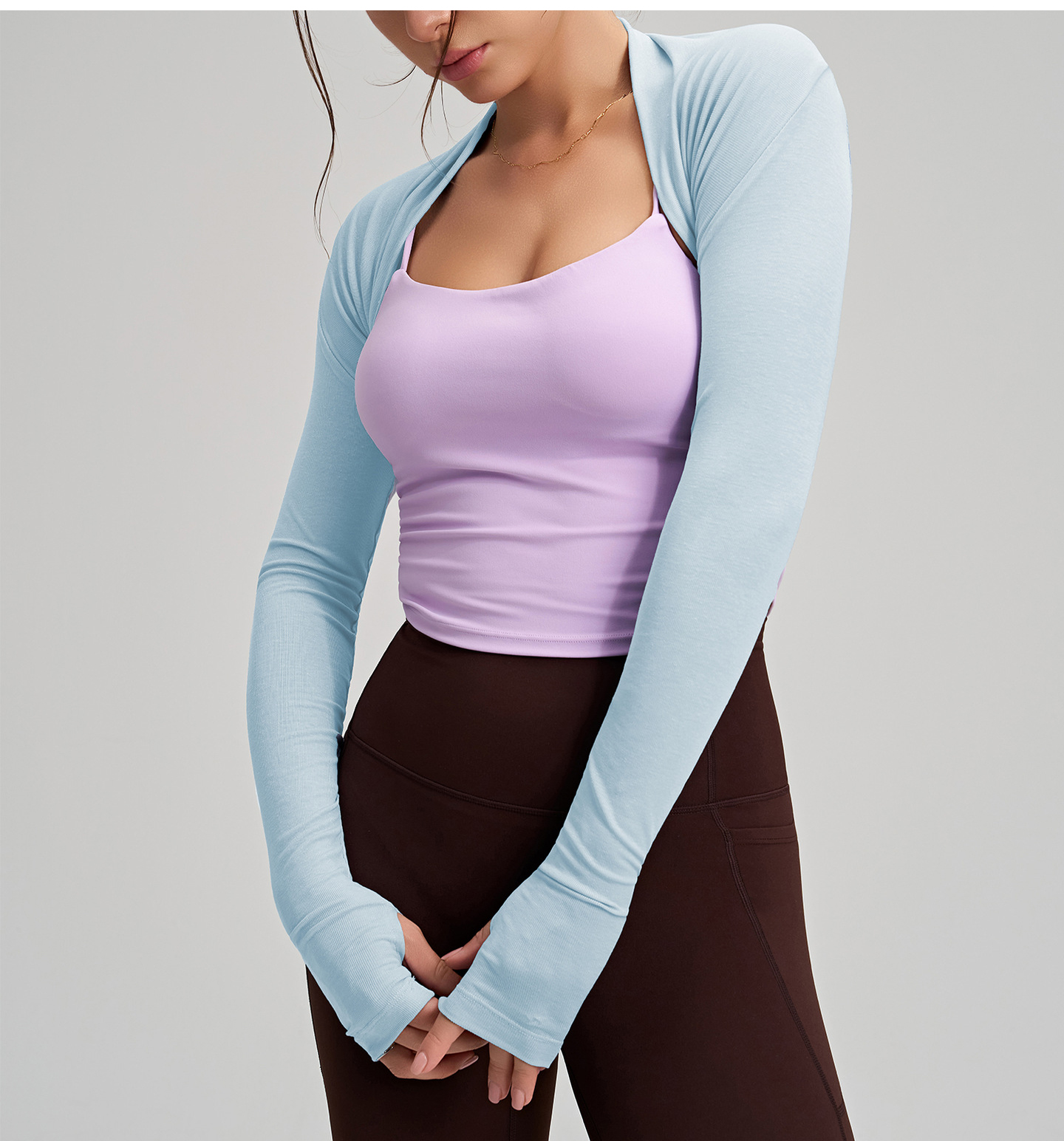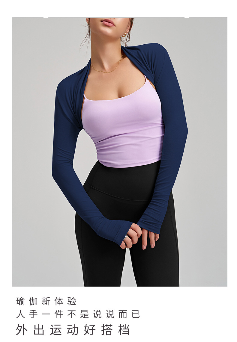 跃牌【安琪拉系列】 新款运动长袖瑜伽舞蹈披肩健身纯色开衫小坎肩遮副乳训练运动罩衫