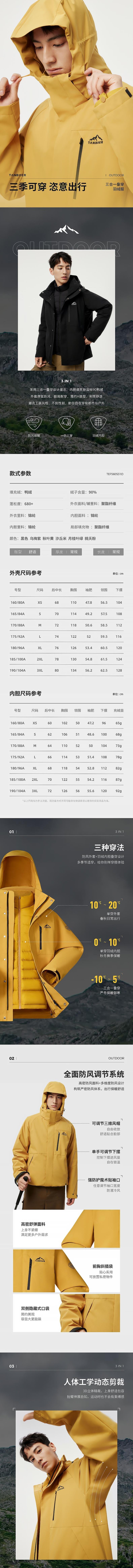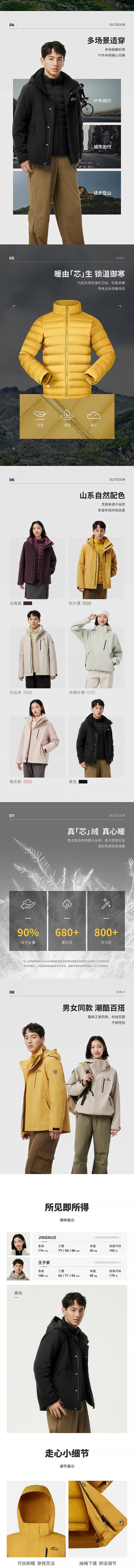 坦博尔 户外中性三合一羽绒夹克外套男女同款 TEF560531D