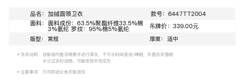 卡尔美方寸之间系列女士冬季新款加绒圆领卫衣